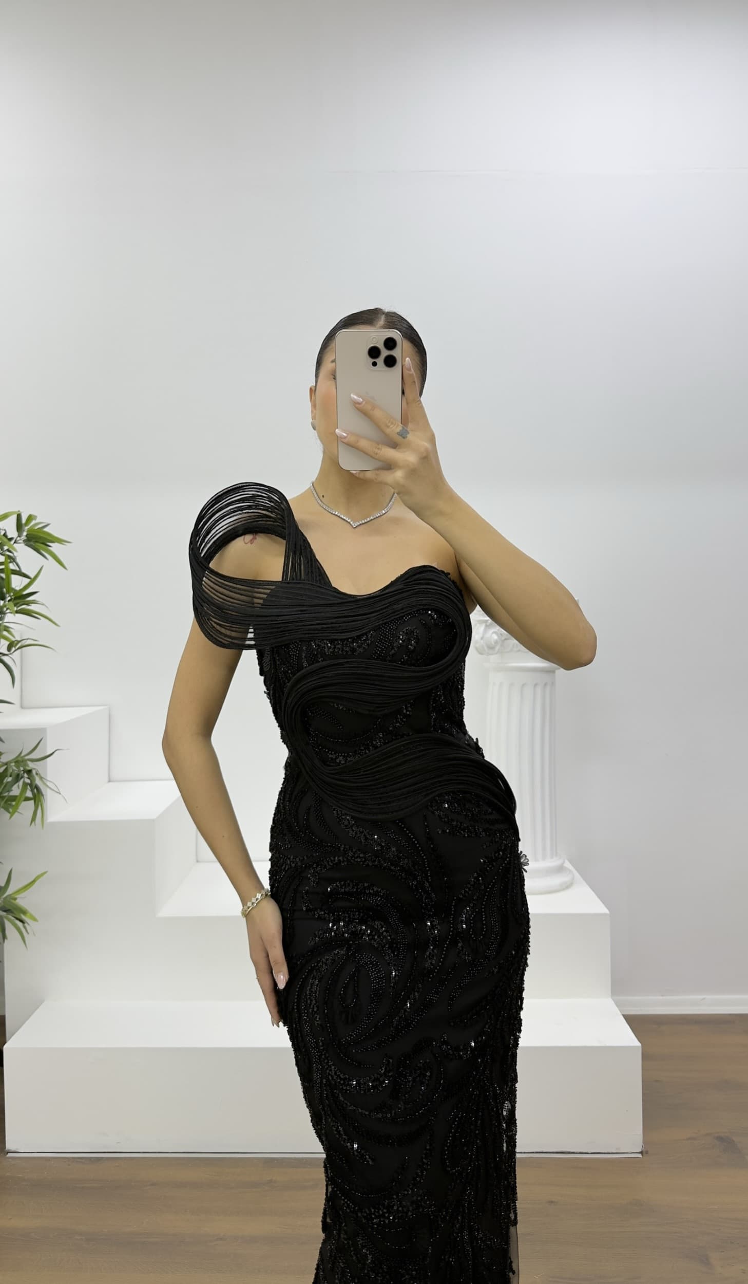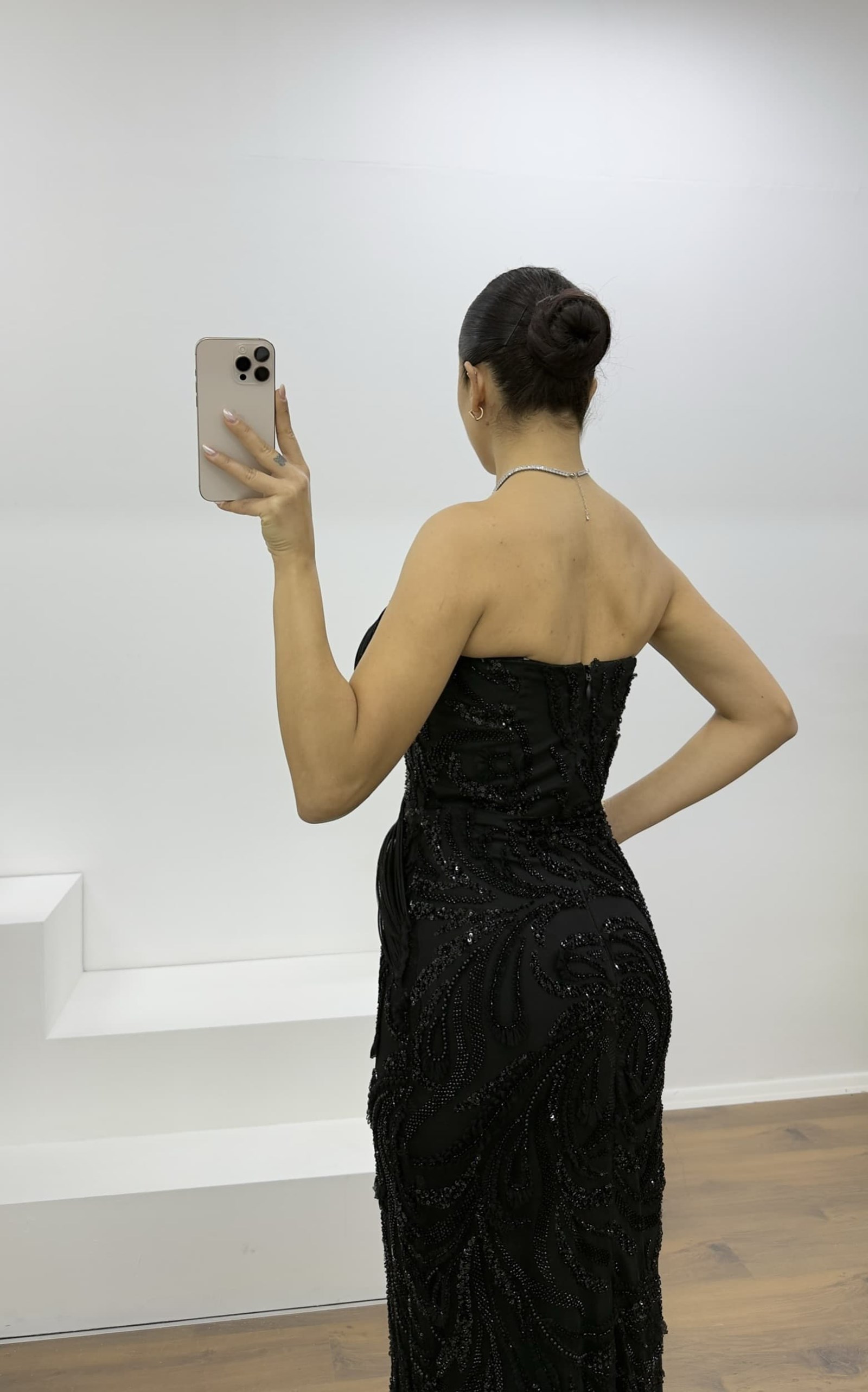 Abito da sera a tubino senza spalline con pietre Adatto alle taglie 36–42. Dotato di coppe imbottite, foderato, con chiusura a zip sul retro e spacco posteriore. Abito da sera impreziosito da dettagli sul busto e decorazioni in pietra. Lunghezza dell’abito: Può variare tra 170–175 cm. Tipo di tessuto: Tessuto con paillettes, 100% poliestere La scelta ideale per distinguersi con eleganza a matrimoni, fidanzamenti, lauree o eventi speciali.