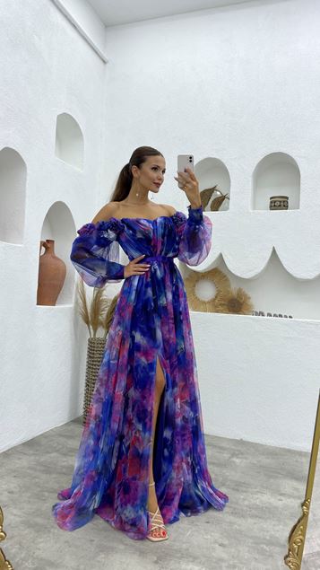 • kasim-firsati-it.png?1 Indaco senza spalline collo barca Cross dettaglio raso abito da sera