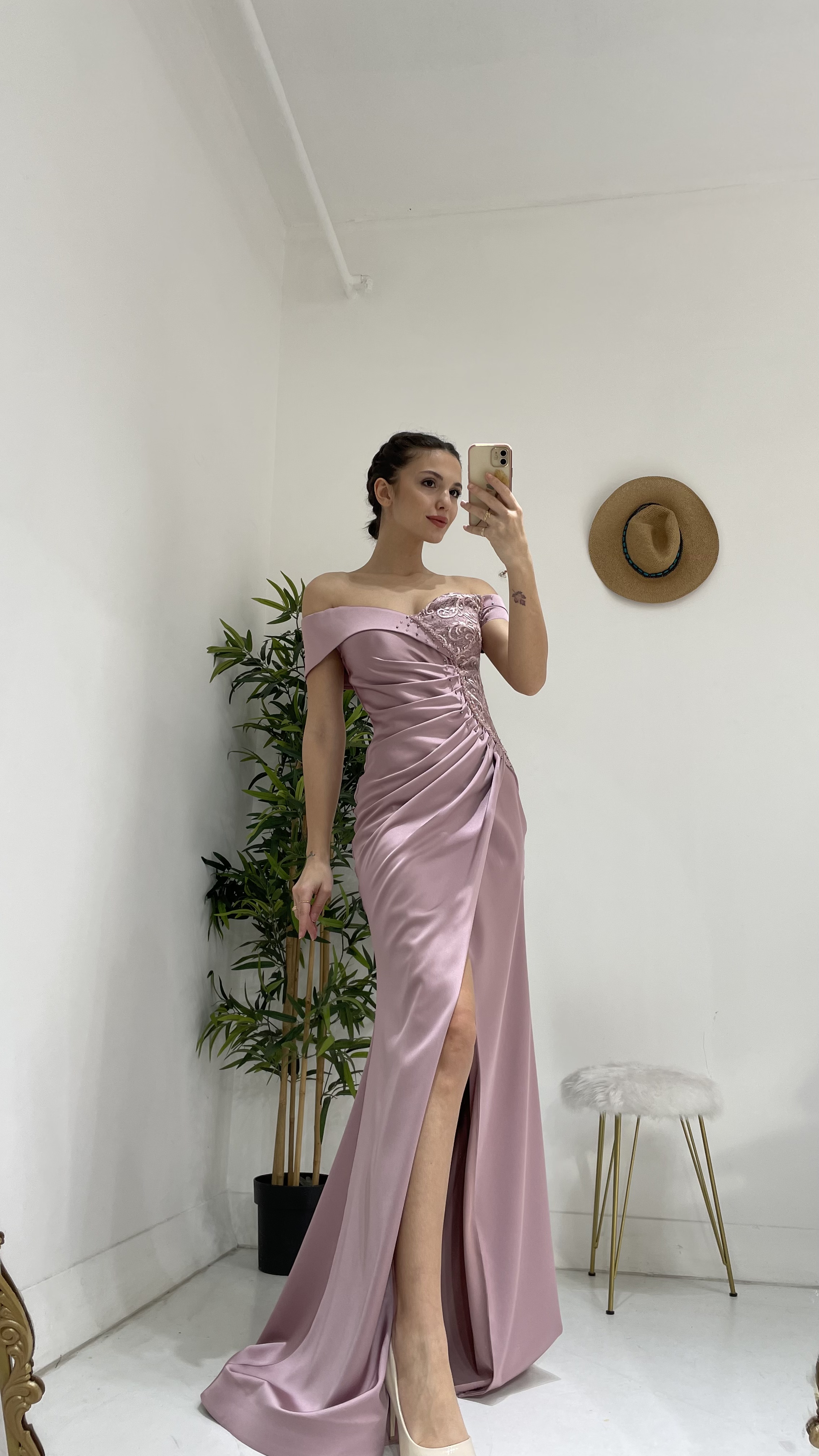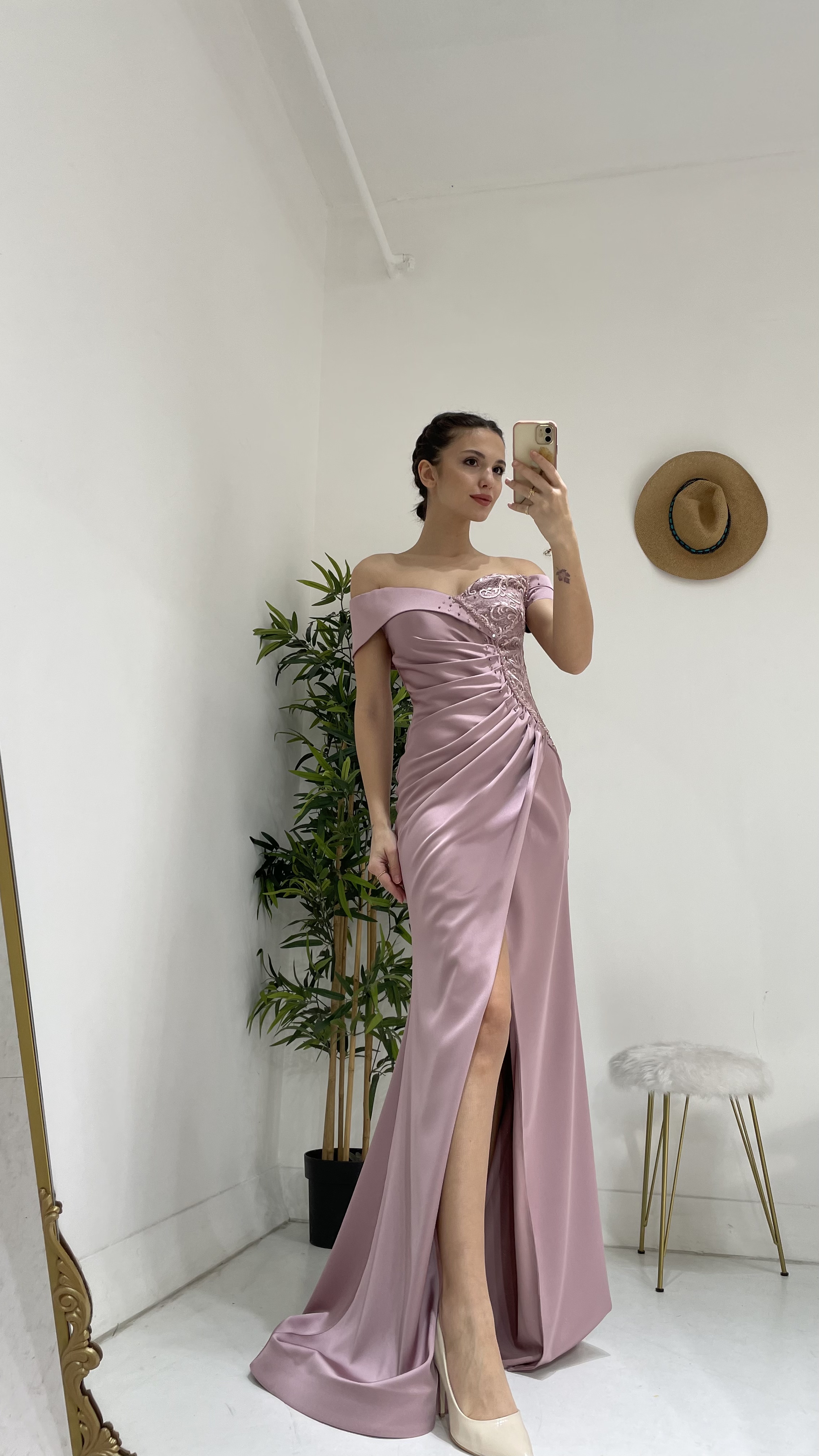 4 DeğerlendirmeLila Kayık Yaka Büzgülü Abiye Elbise Ürün Yorumları