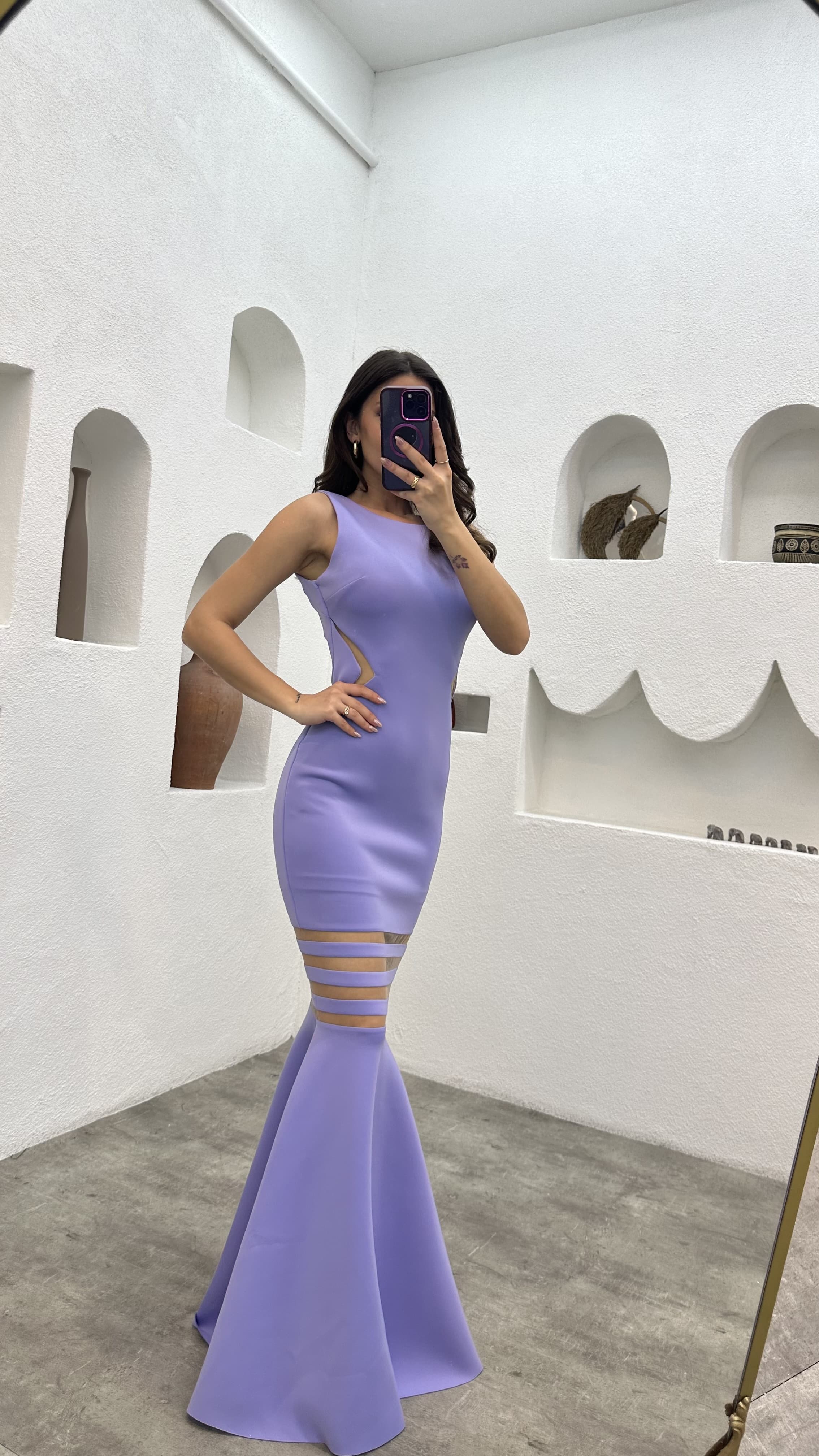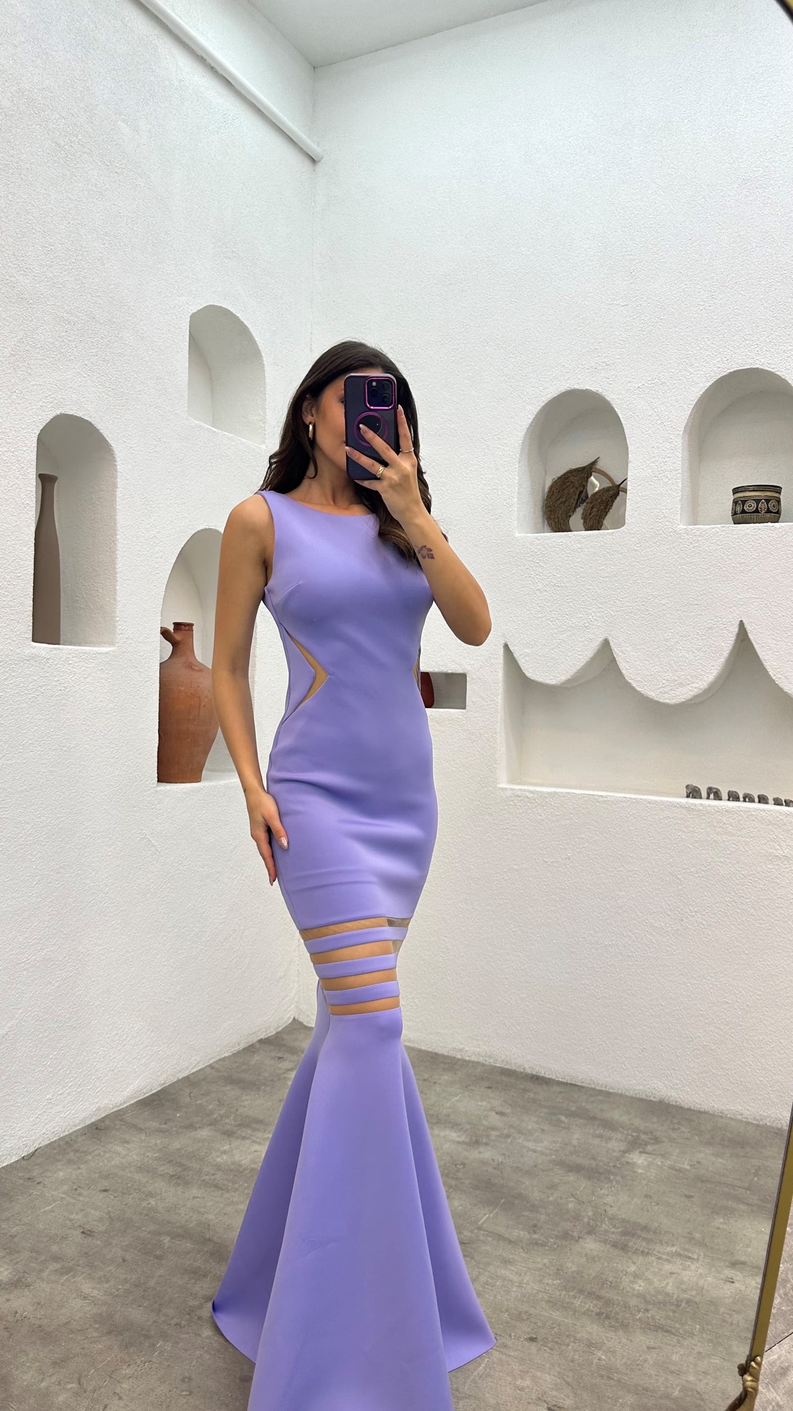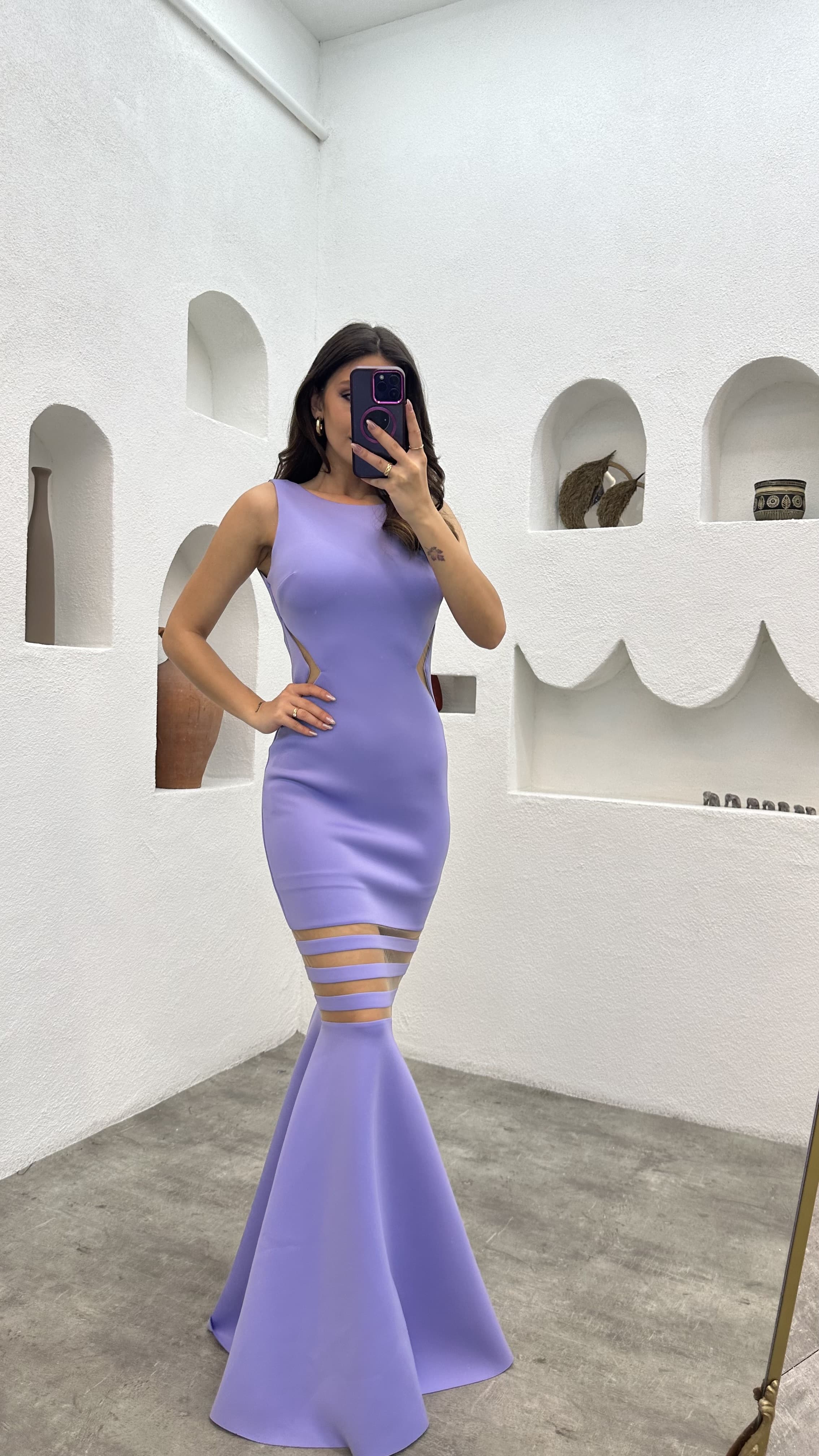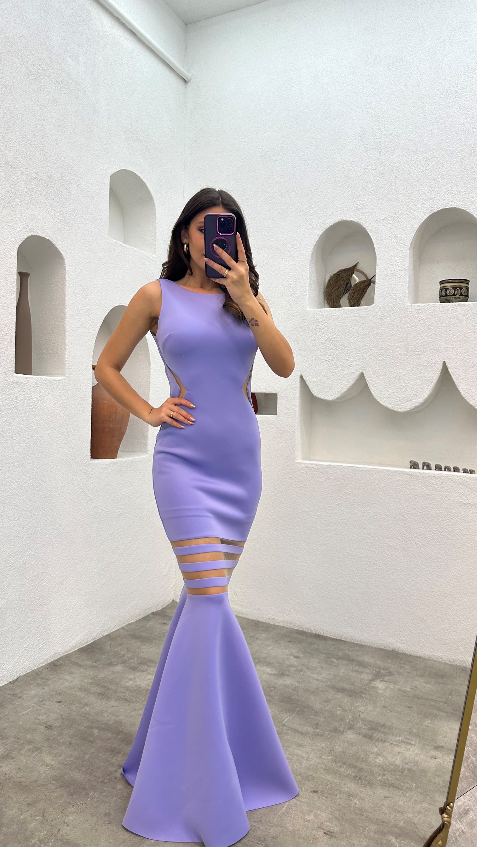 • Lila Transparan detay Elbise
