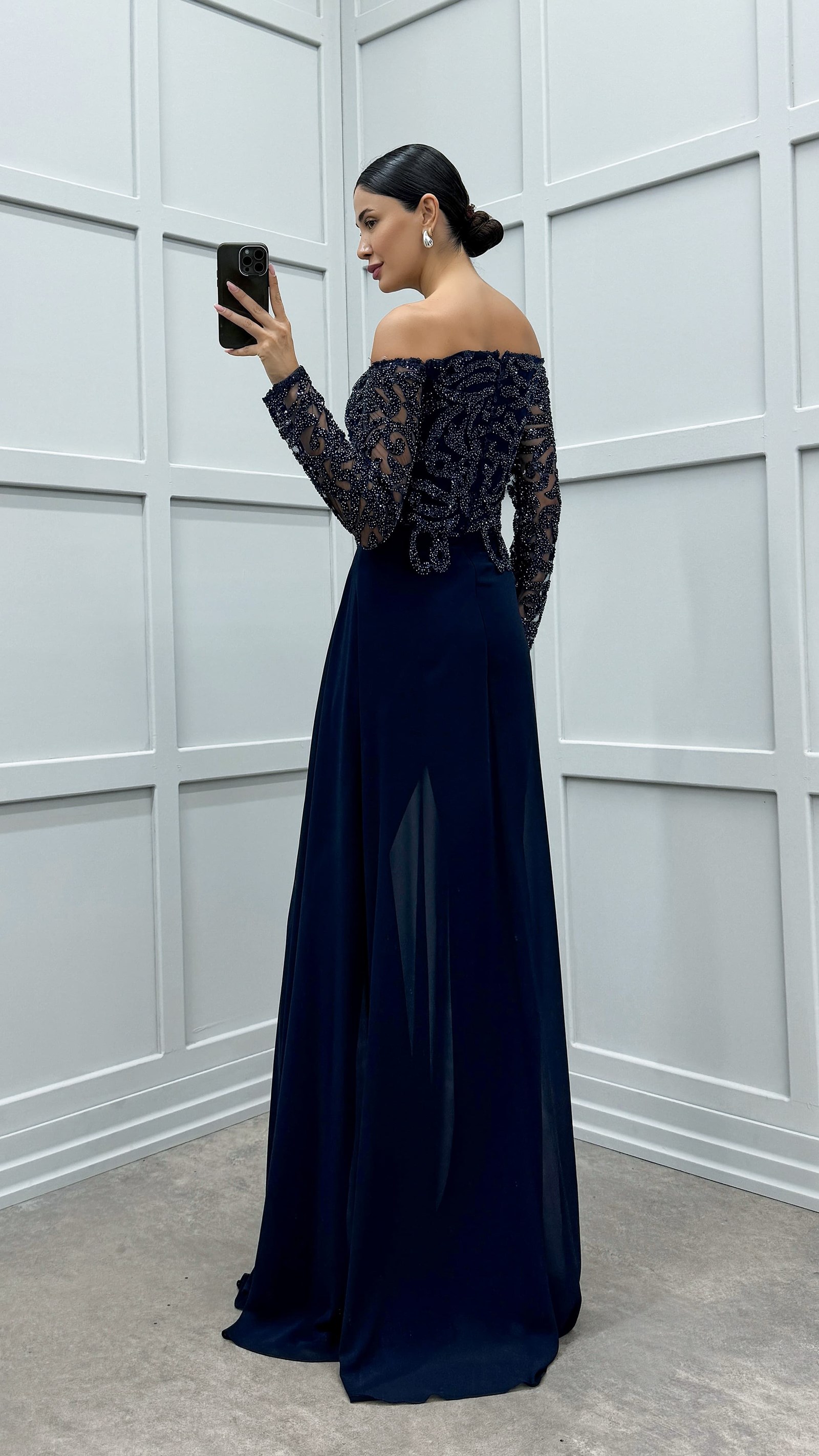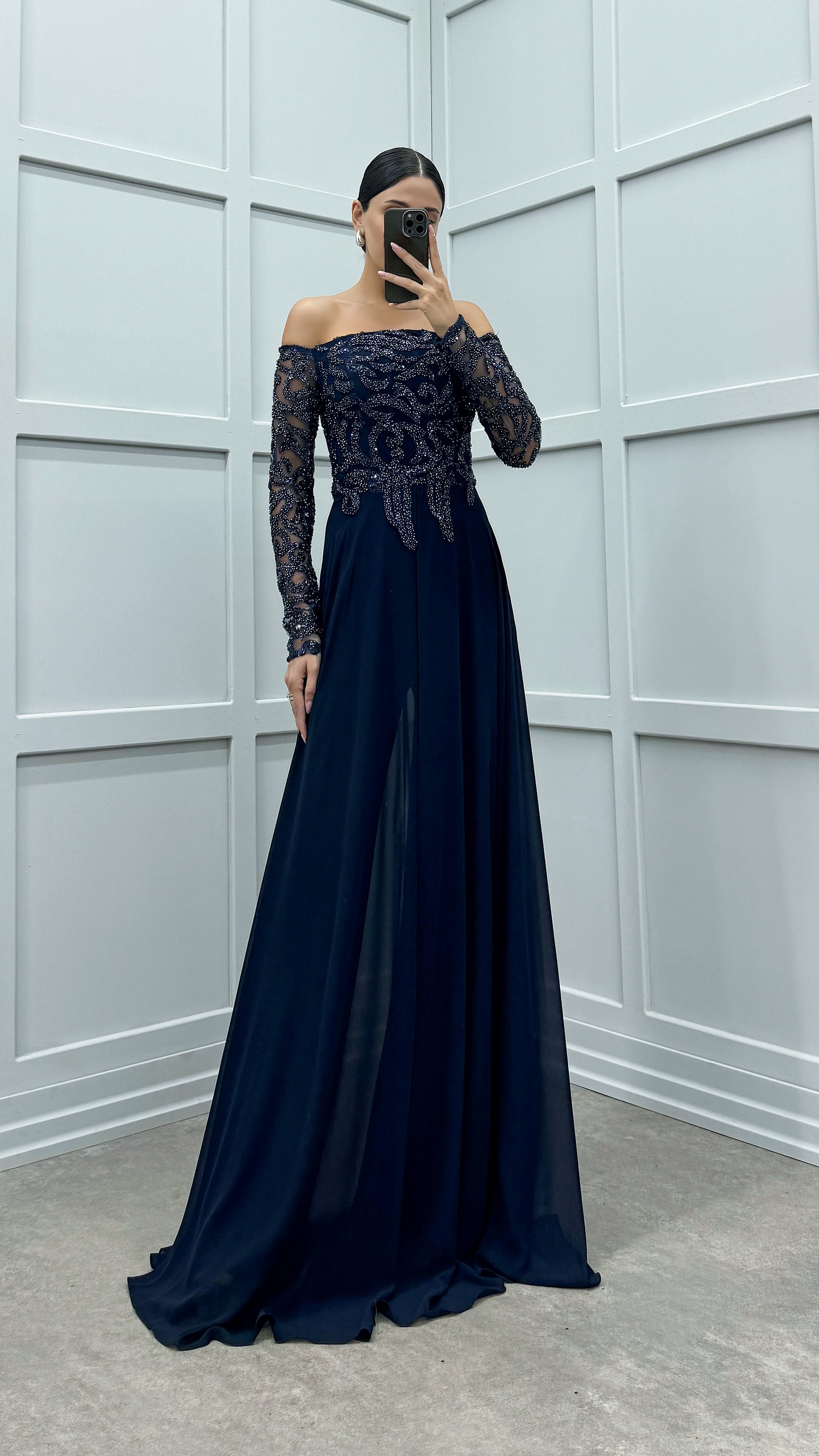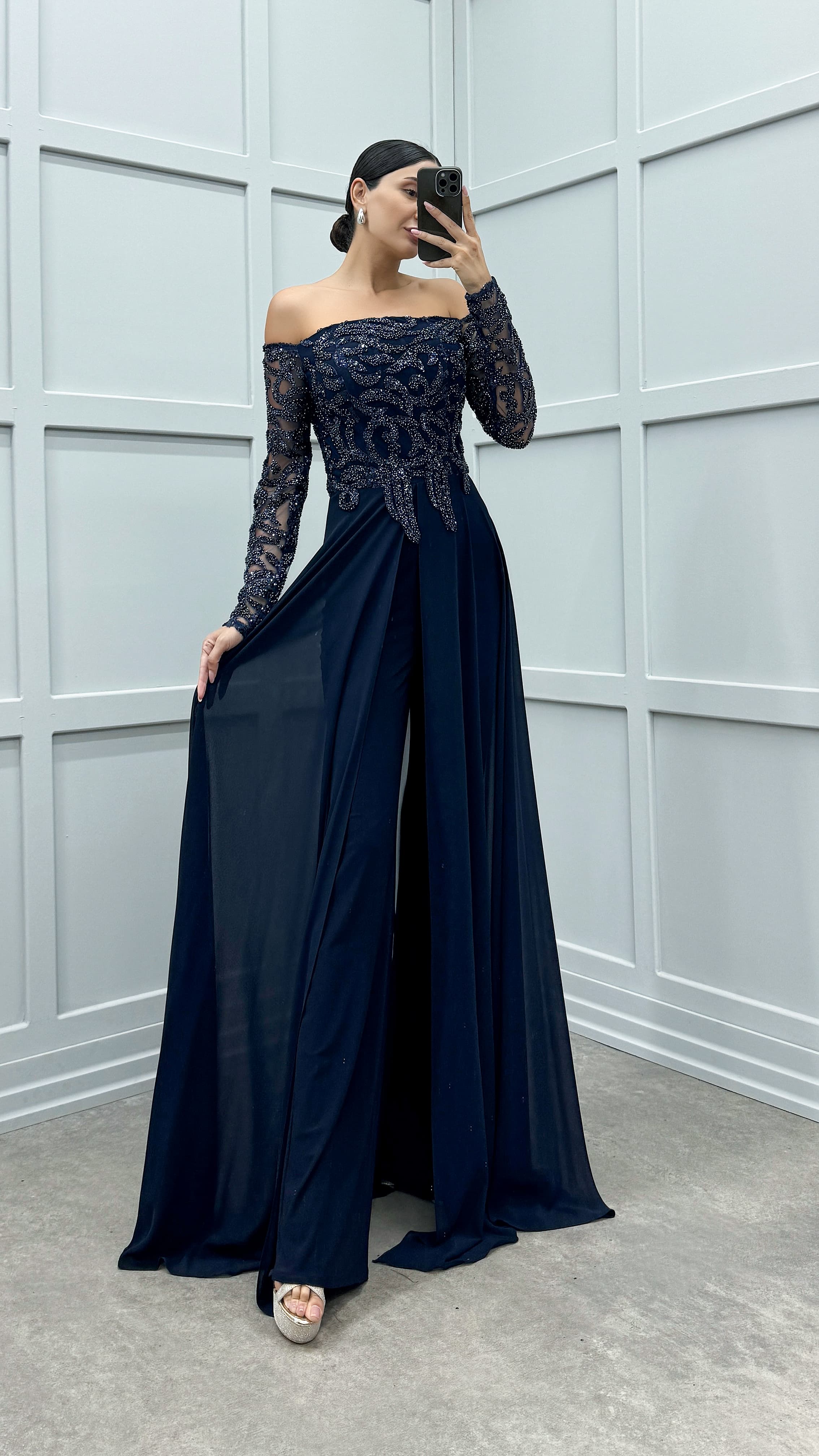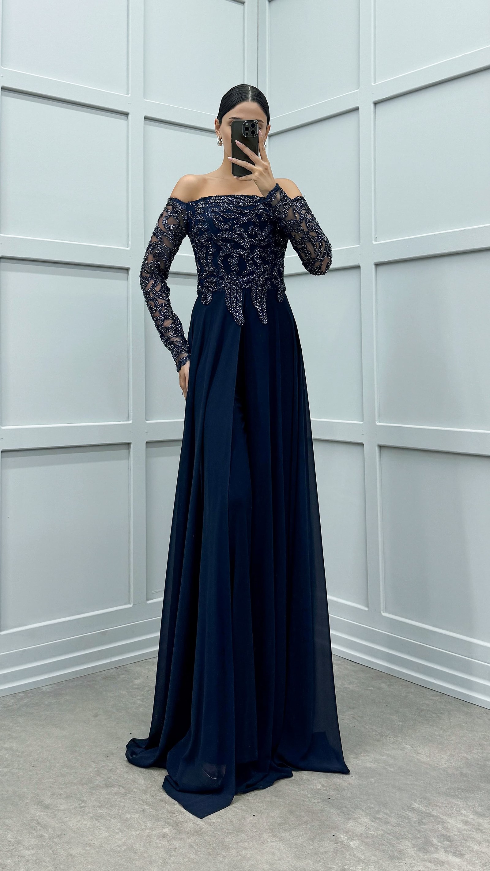 • Lacivert Göğsü İşleme Detay Tasarım Tulum