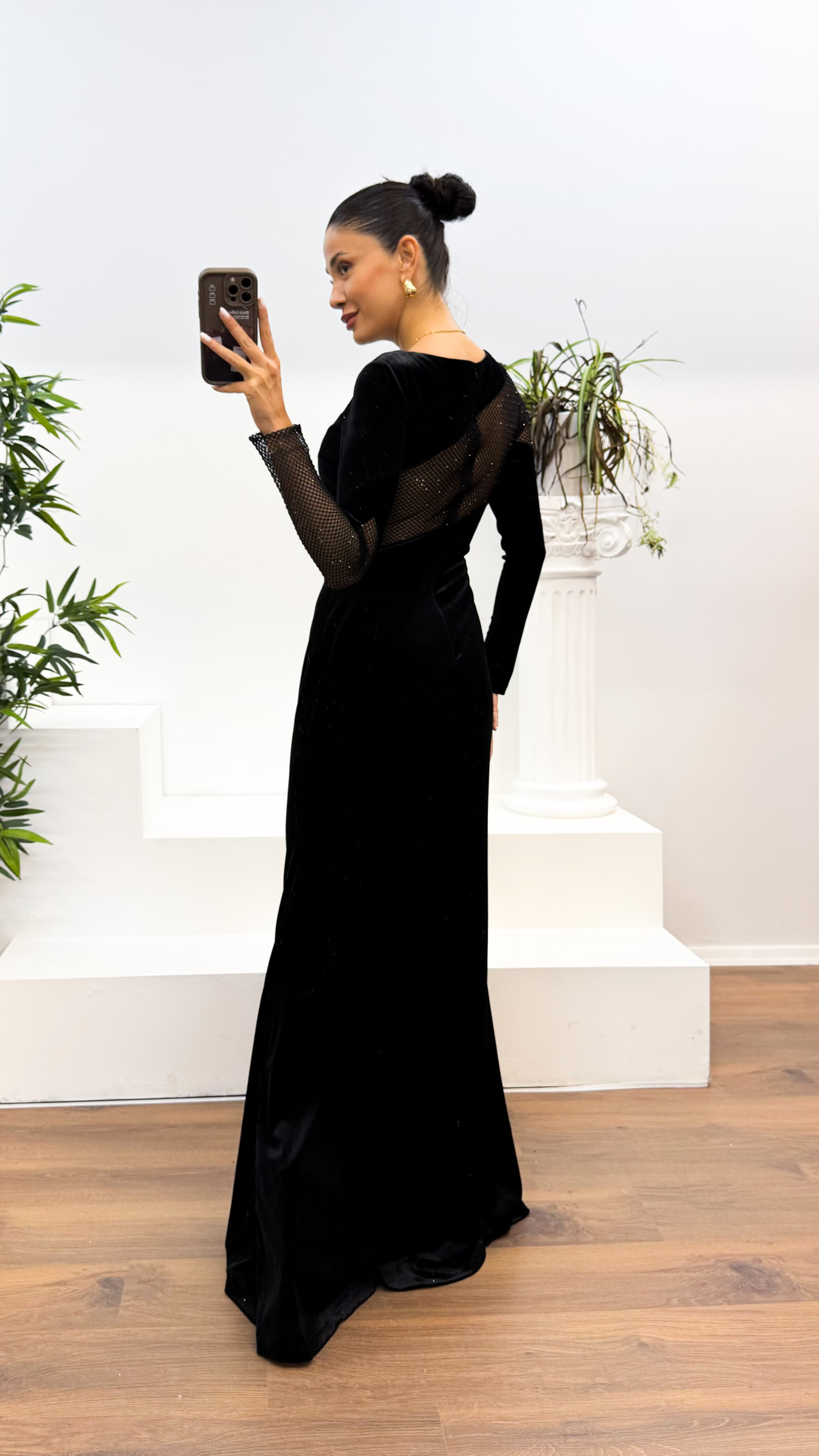 Ürün 36-44 bedene uyumlu, göğüs pedli, astarlı, arka kapama fermuar, transpran abiye olarak tasarlanmıştır.
