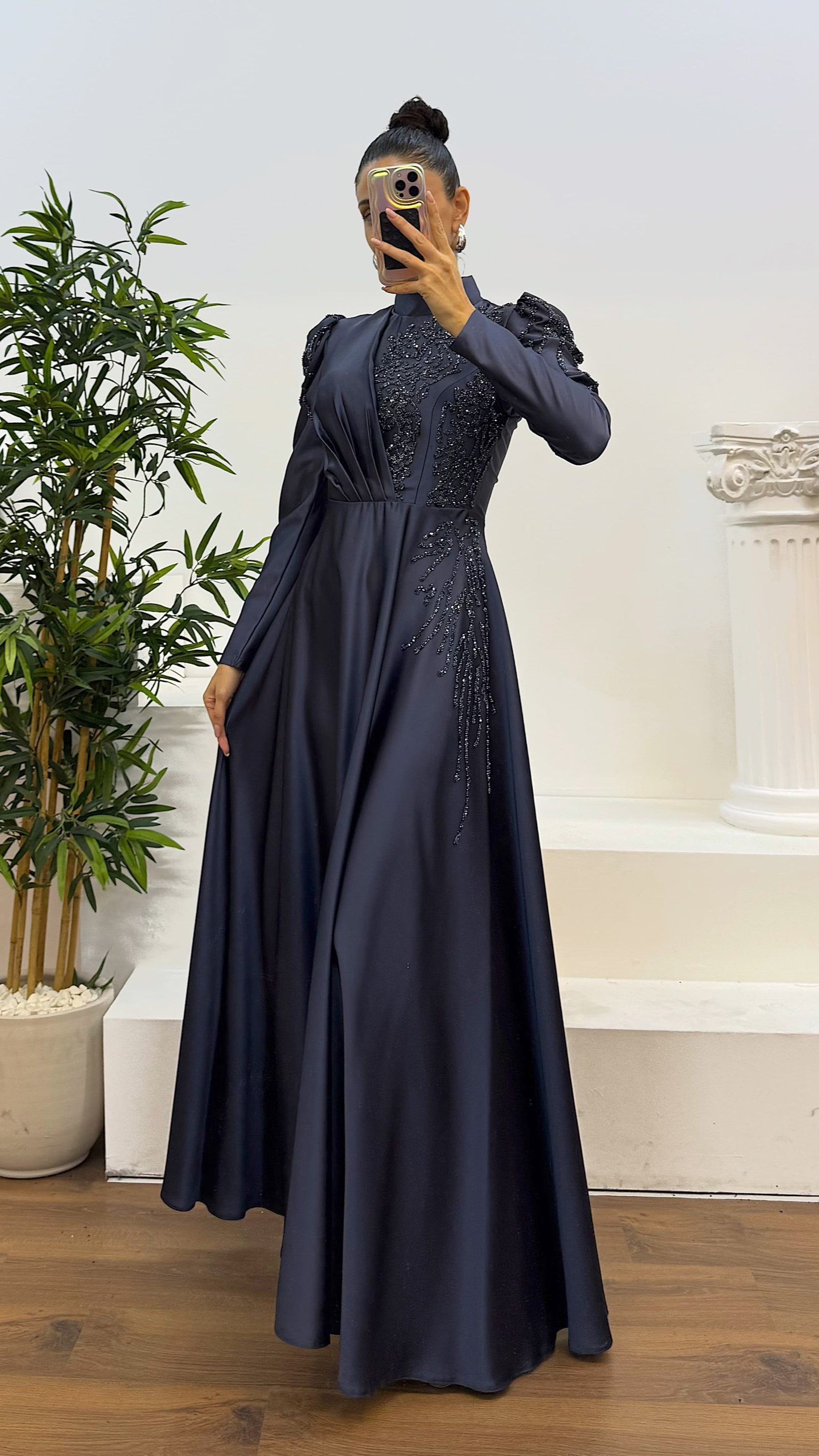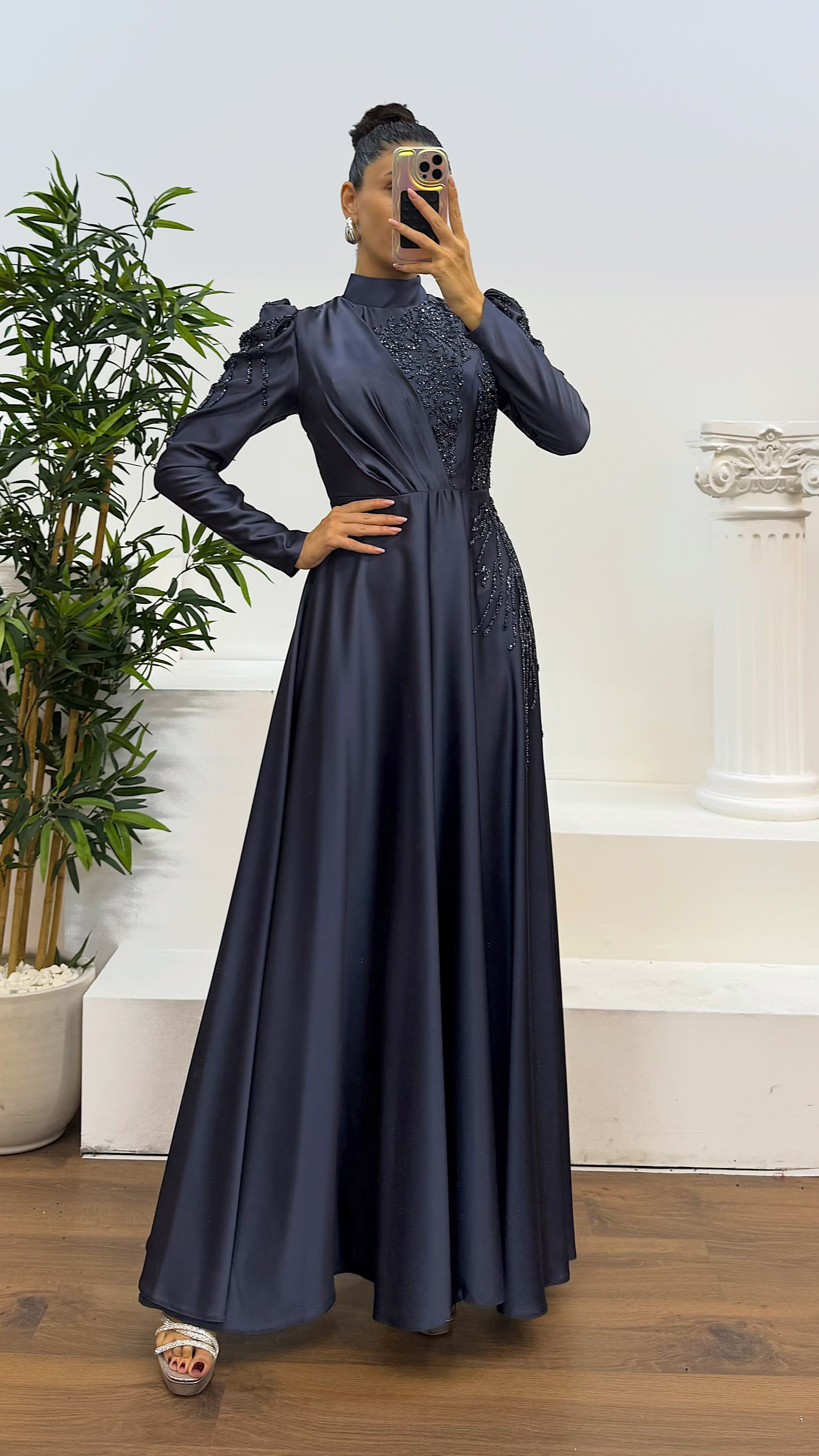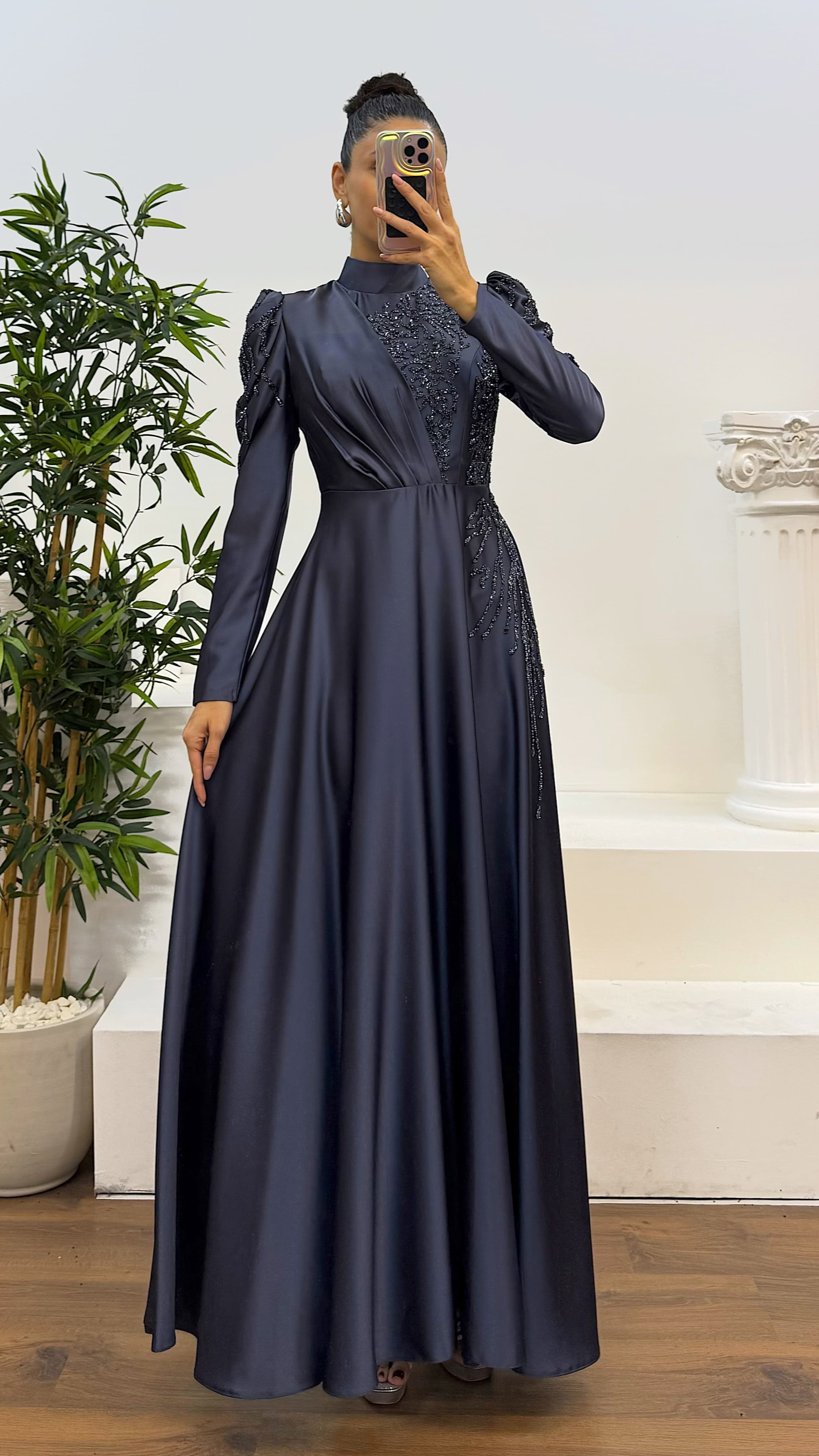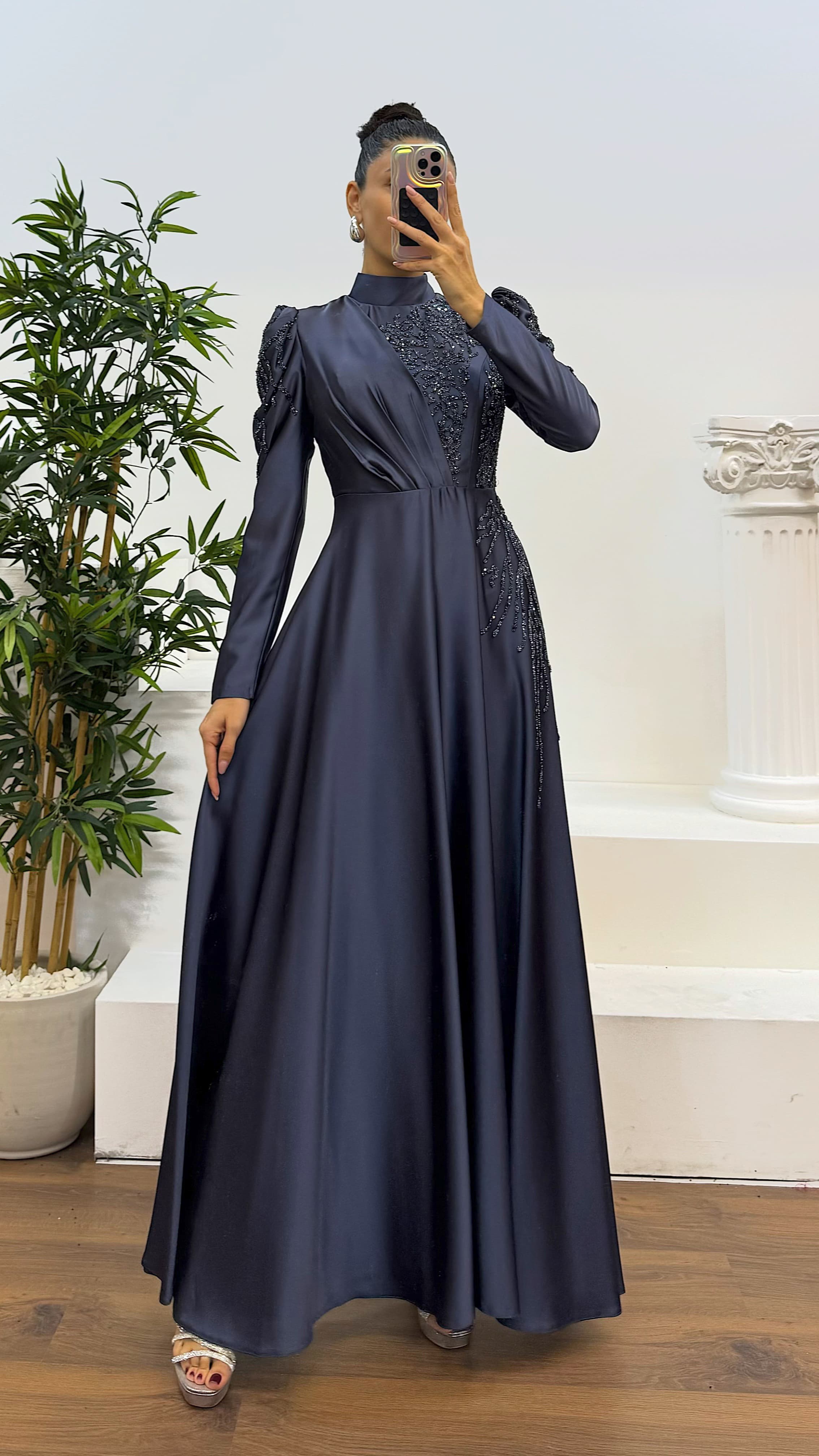 İşlemeli tesettür abiye elbise