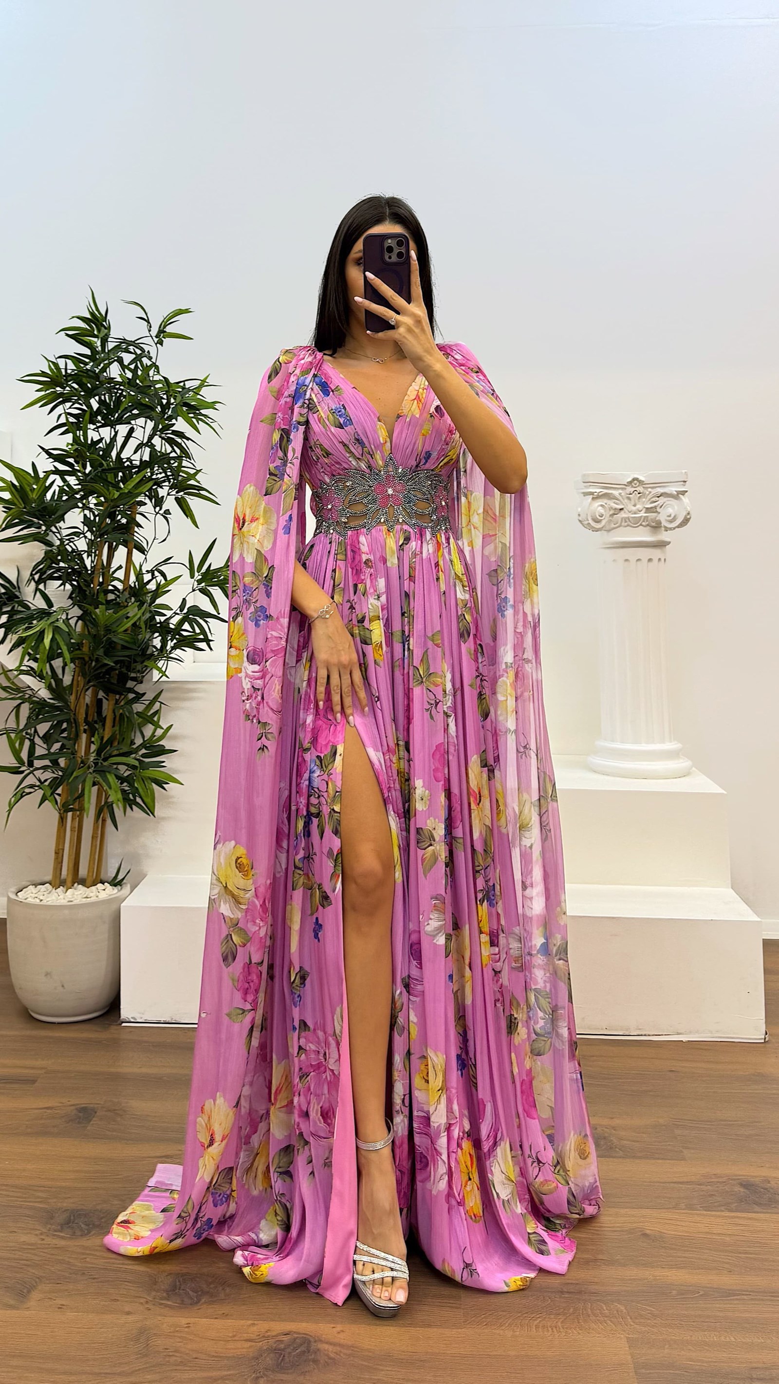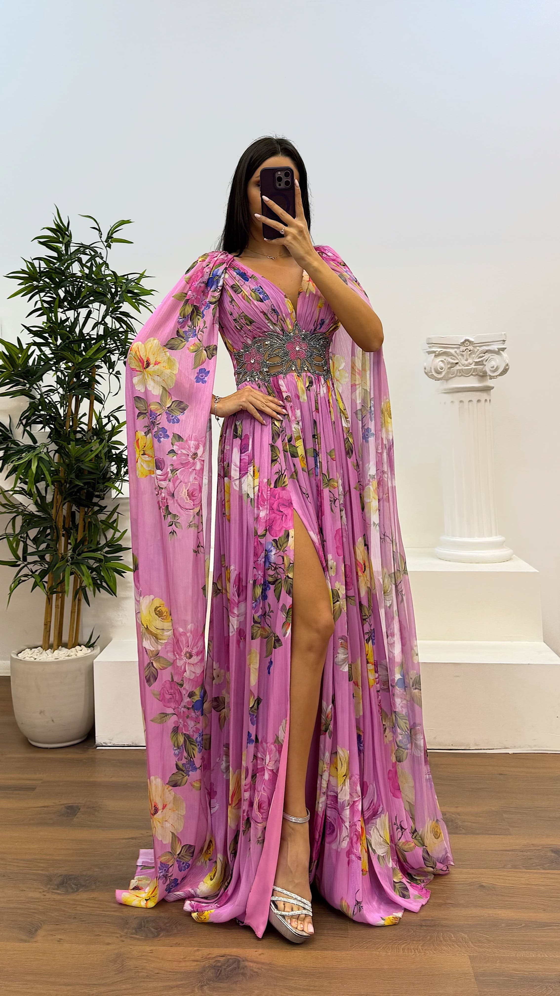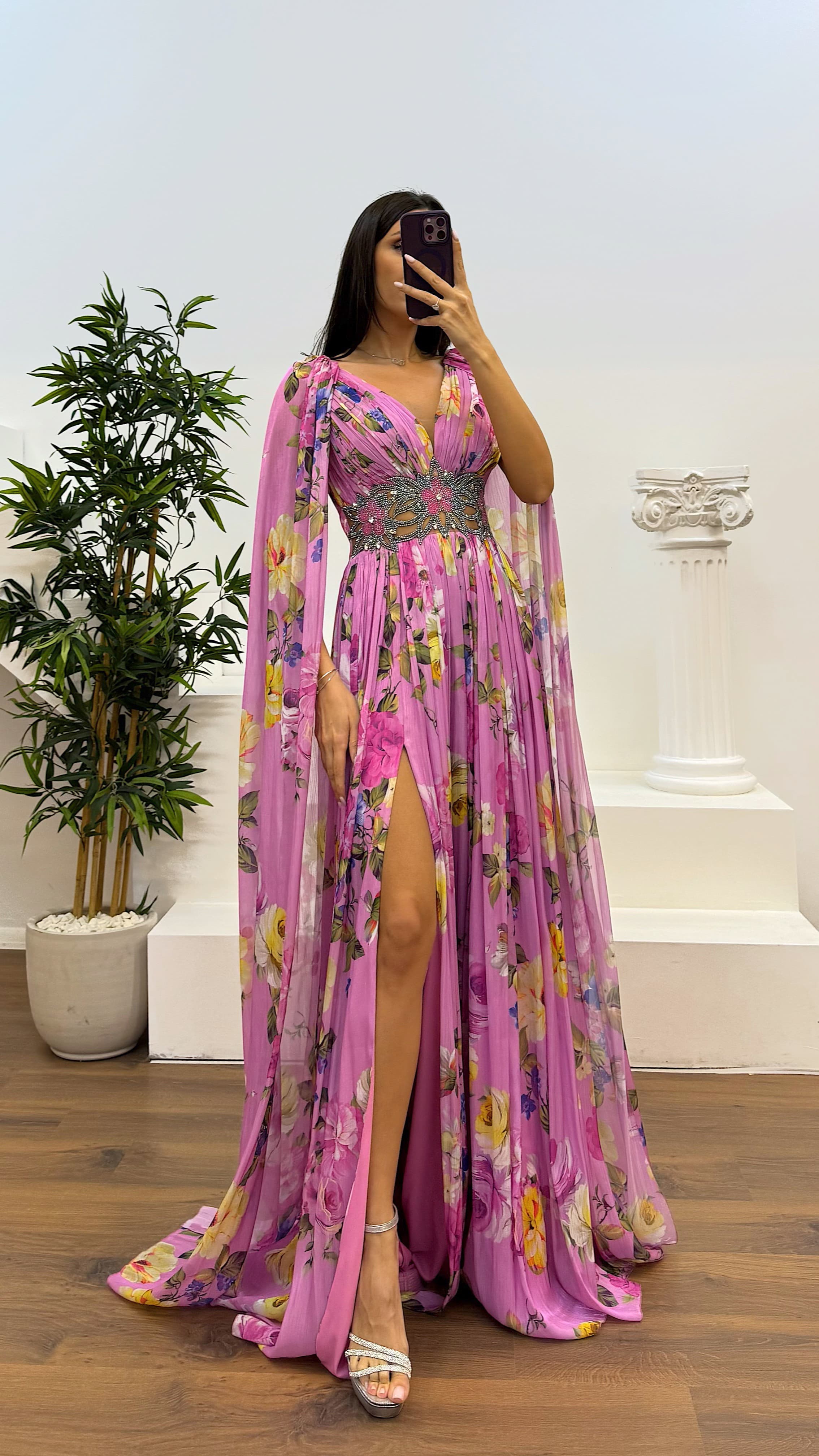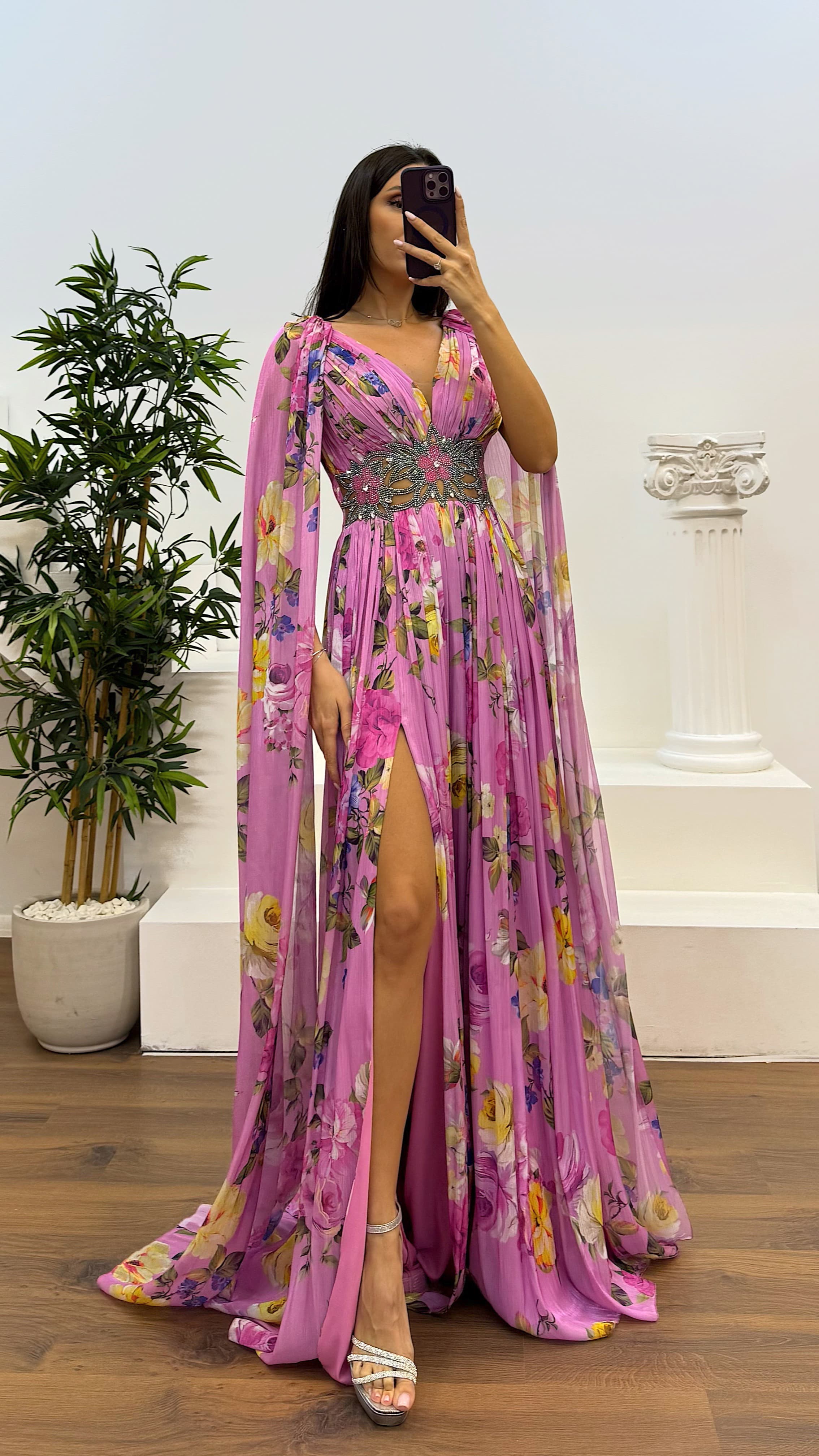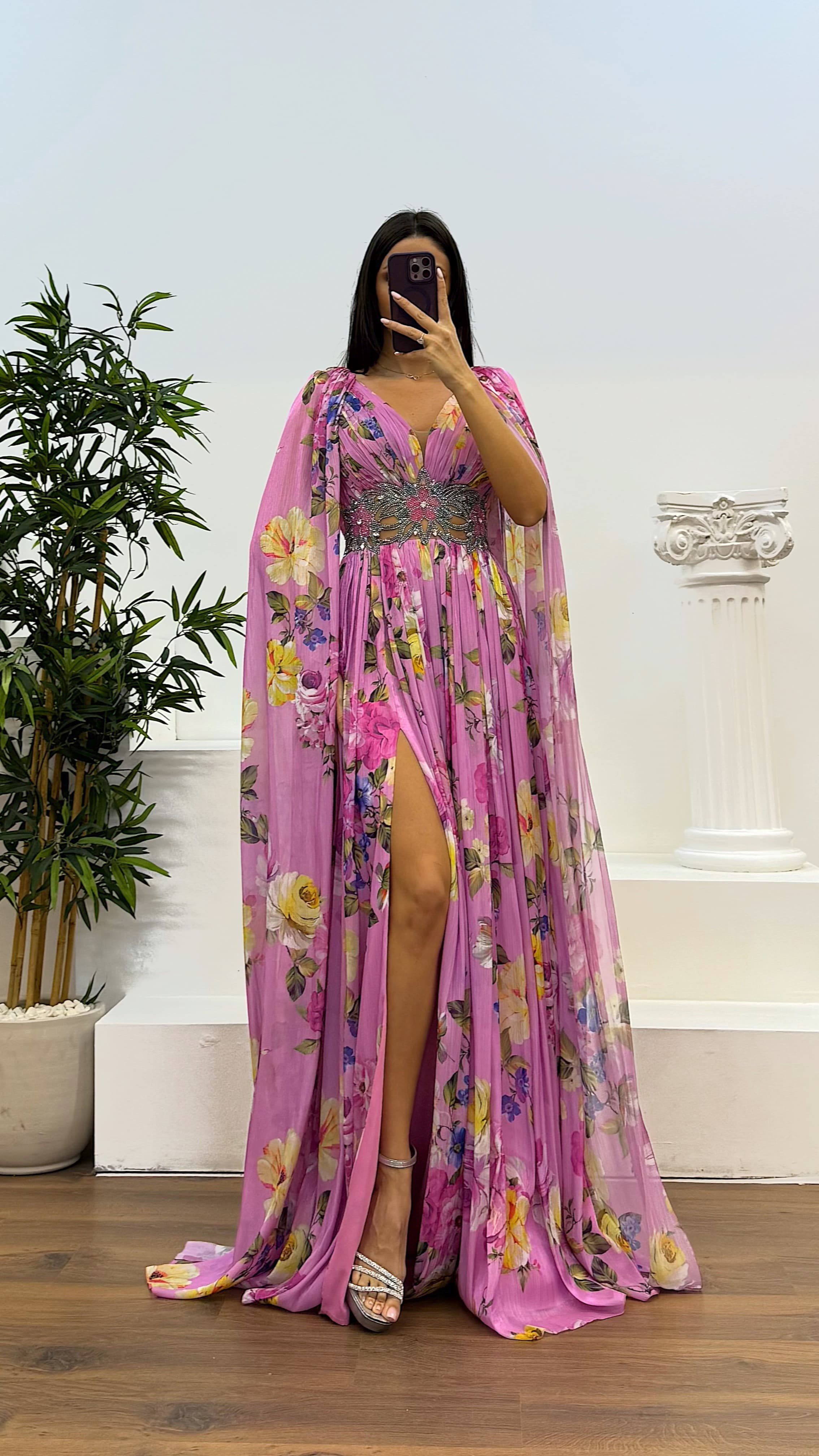 Ürün 36-42 bedene kadar uyumlu, göğüs pedli, astarlı, arka kapama fermuar, yırtmaçlı, bel detay abiye olarak tasarlanmıştır.
