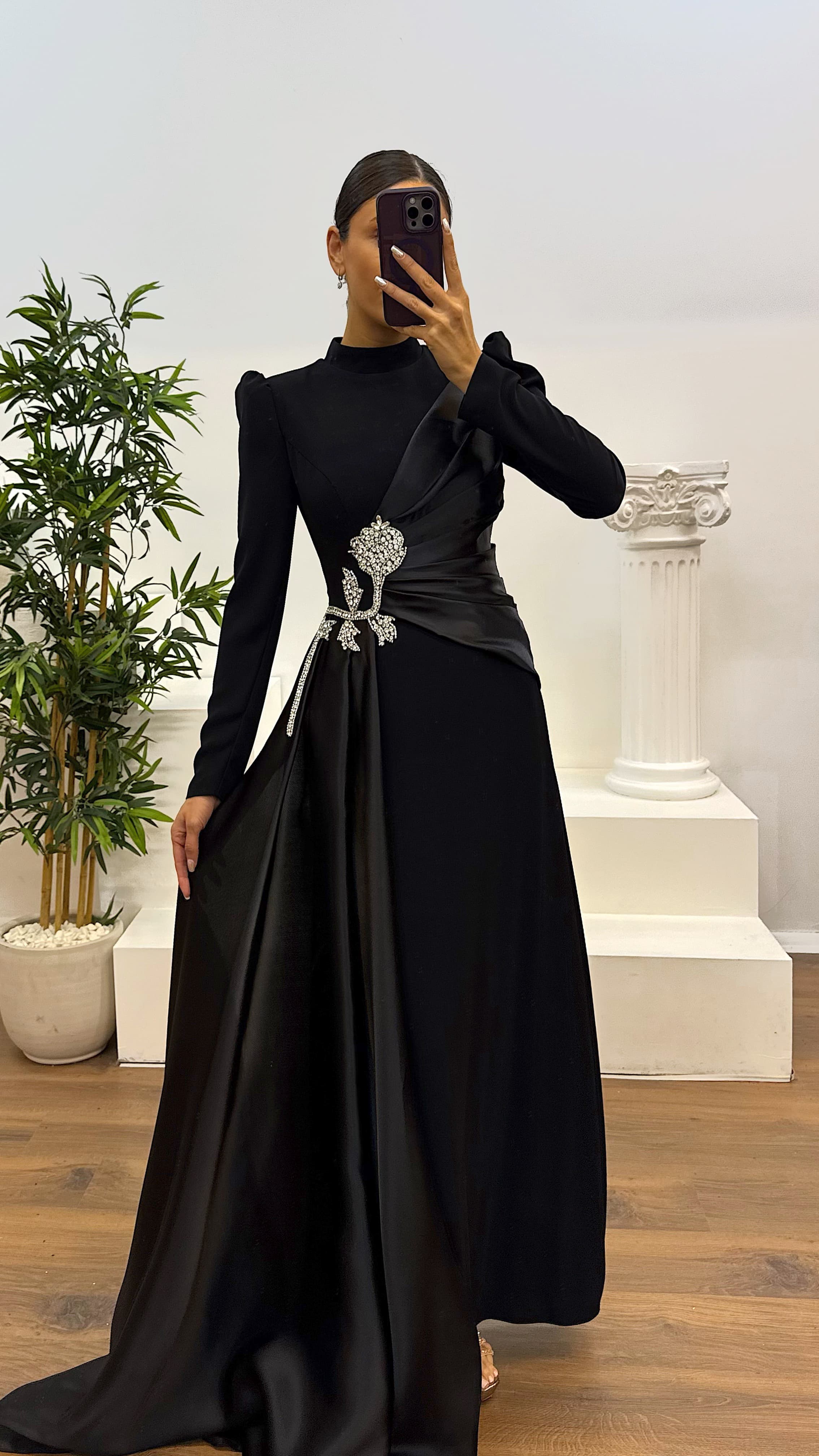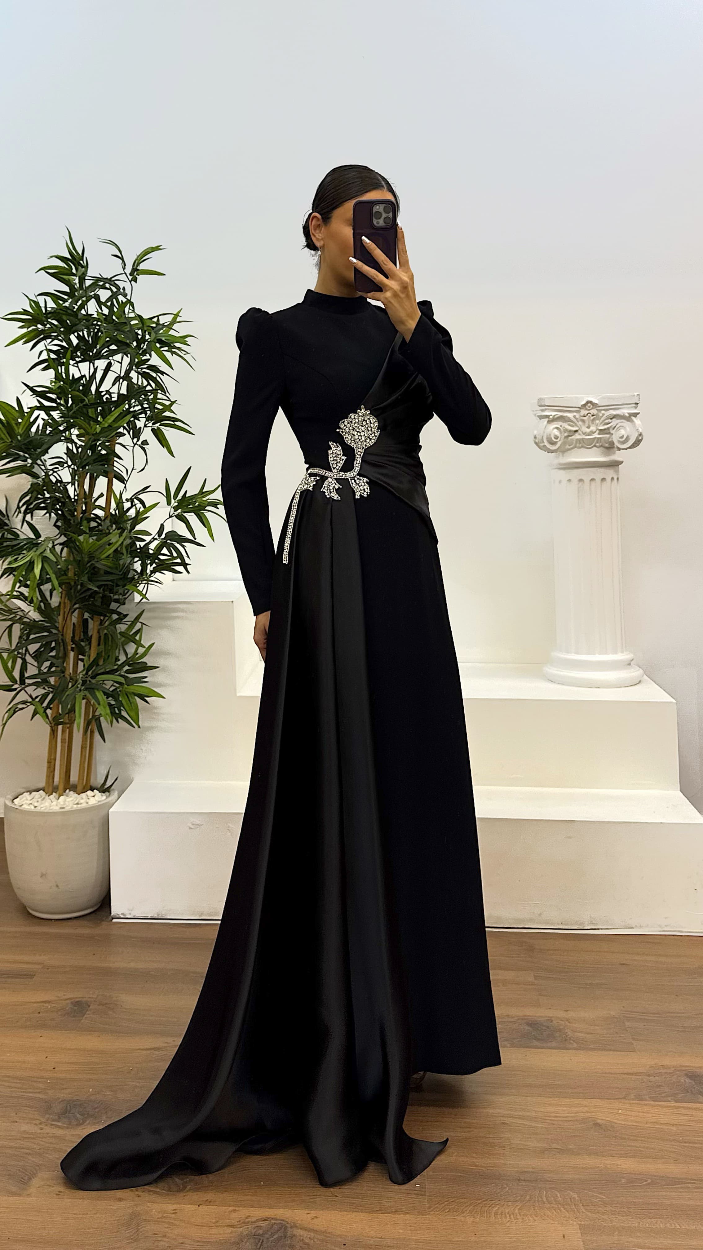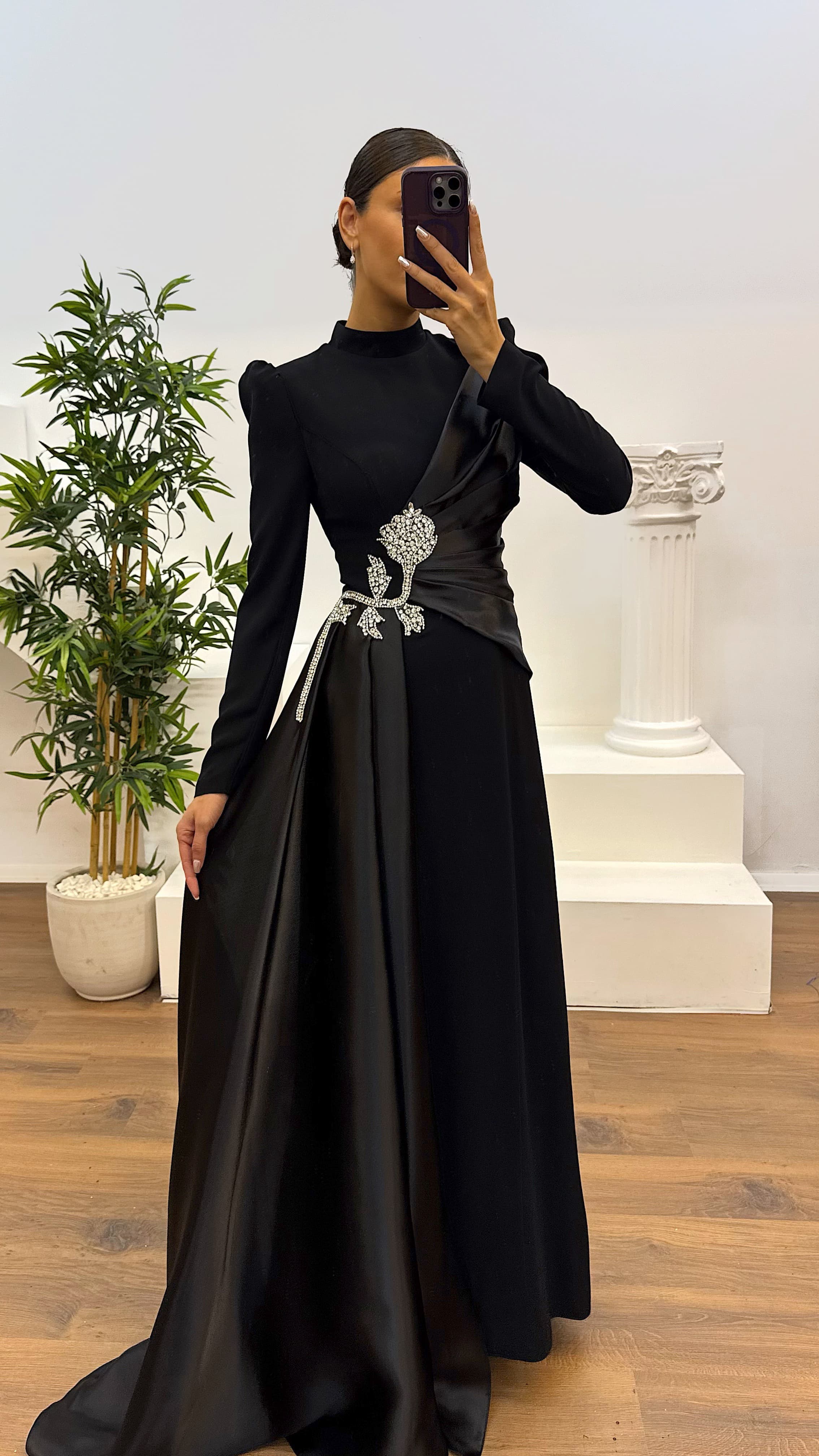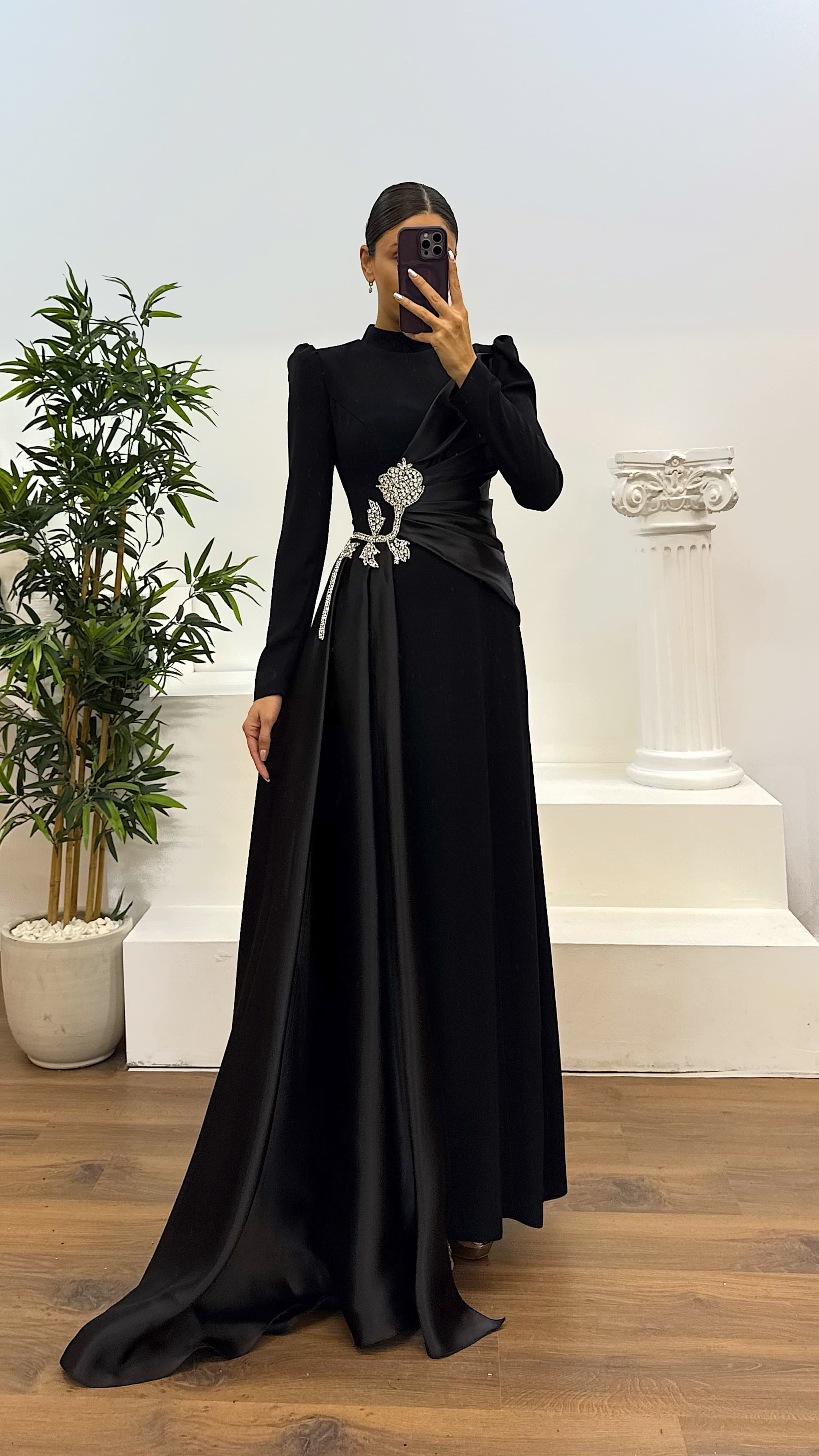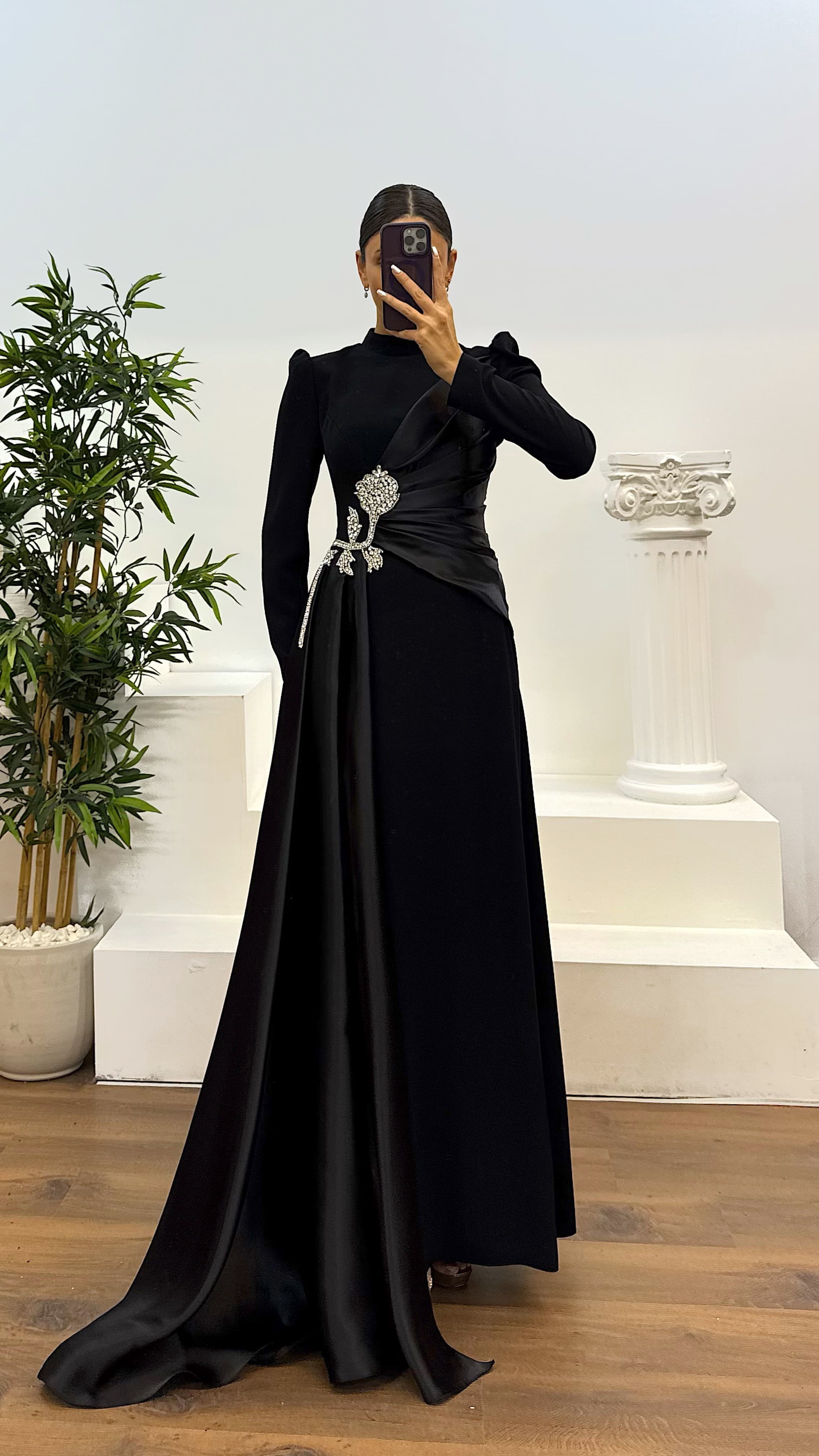 Ürün 36-44 bedene kadar uyumlu, göğüs pedli, astarlı, arka kapama fermuar, ön kuyruk, bel detay abiye olarak tasarlanmıştır.
