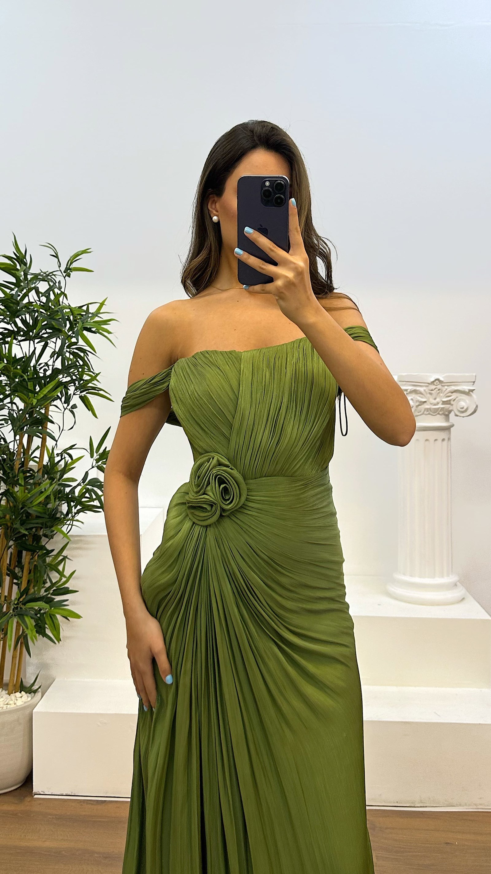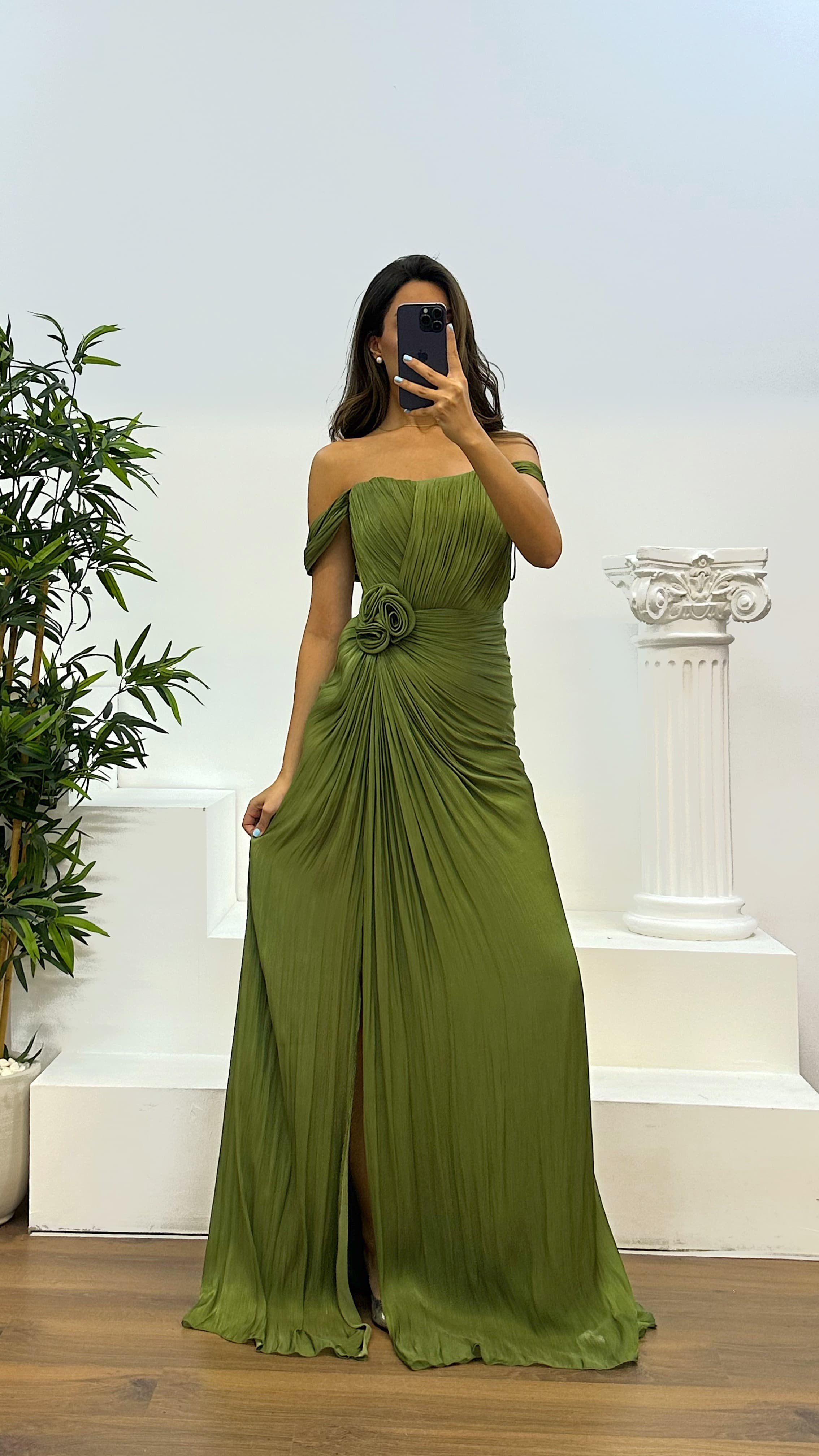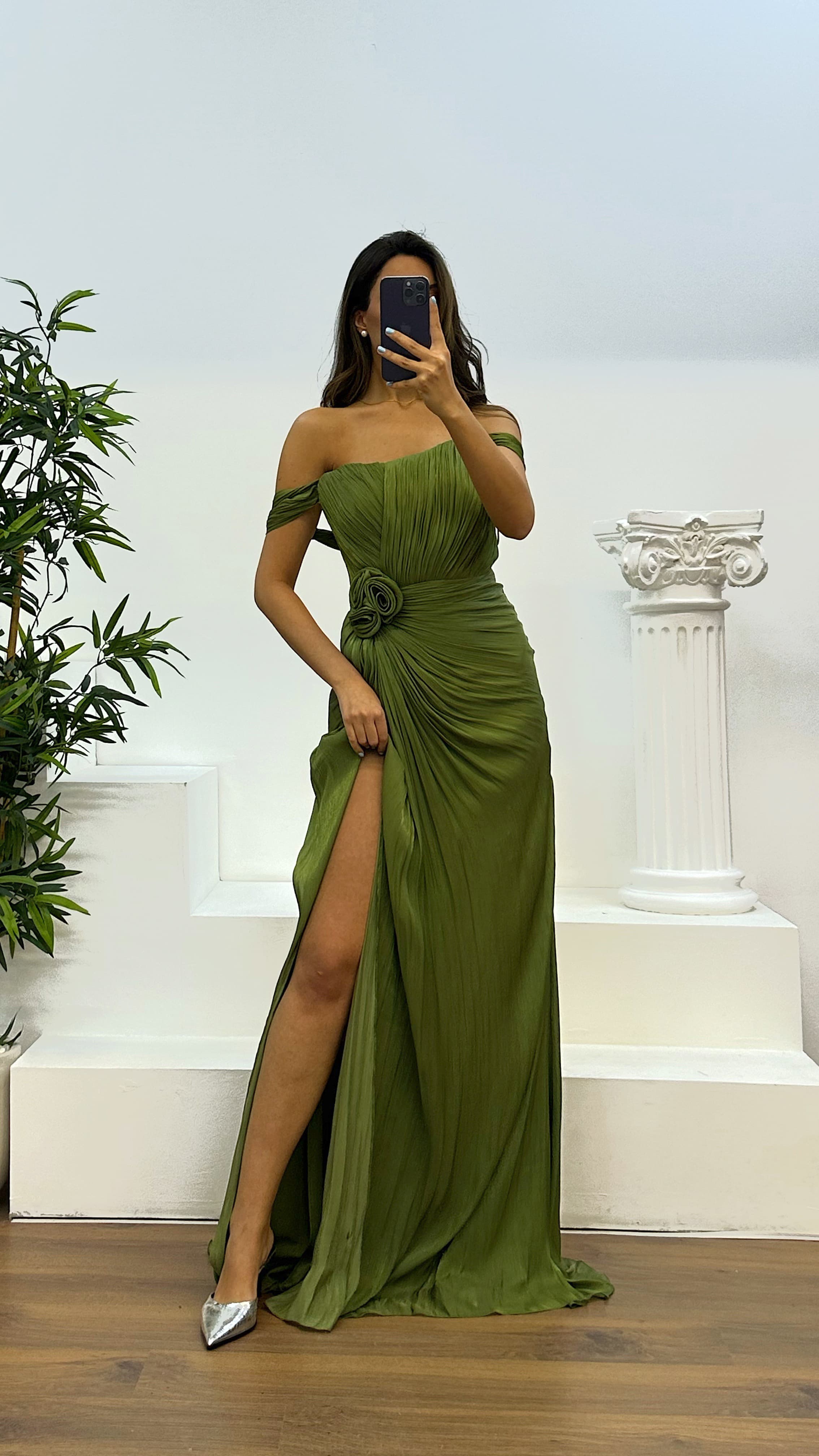 Çiçek detay abiye elbise