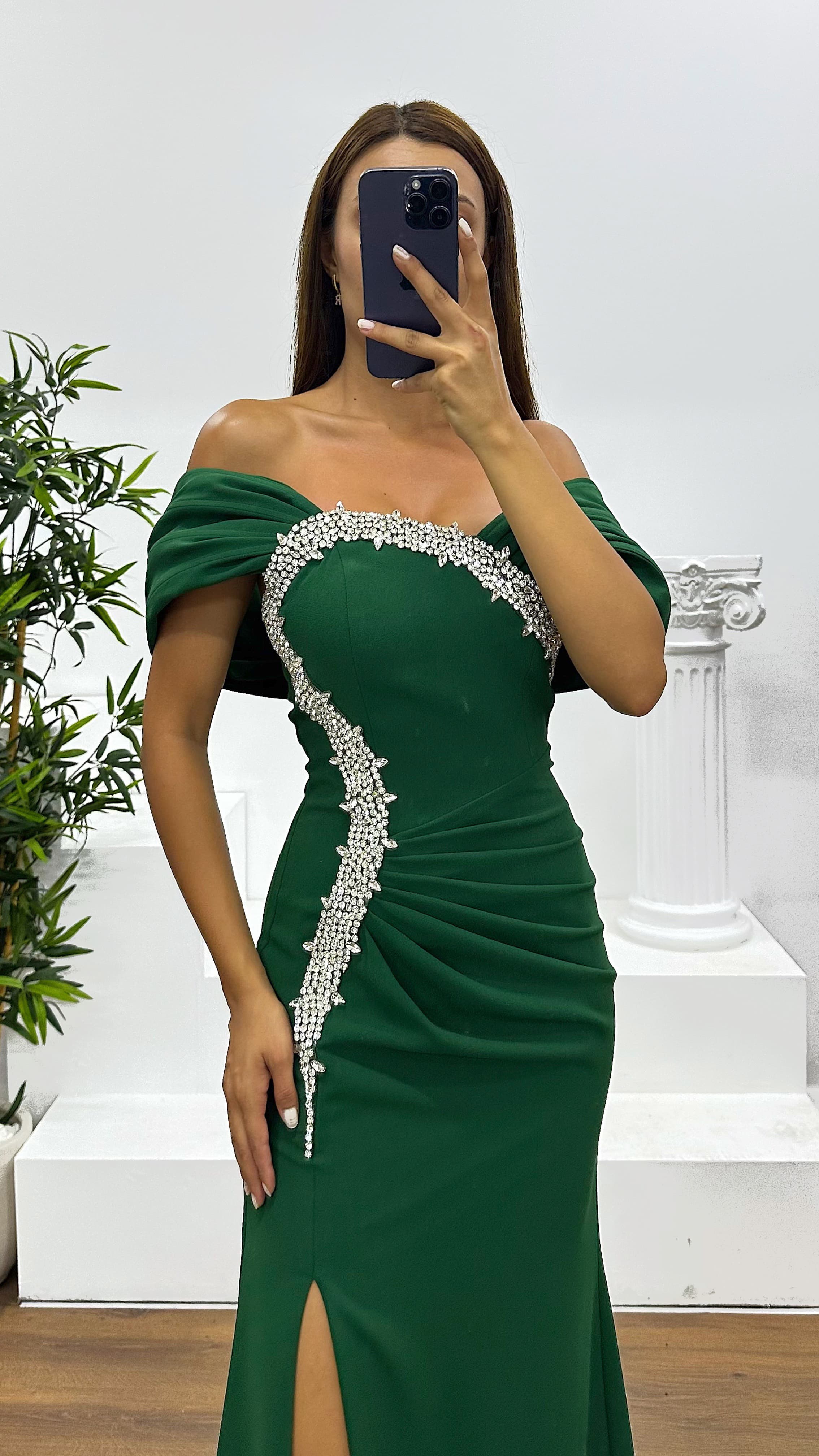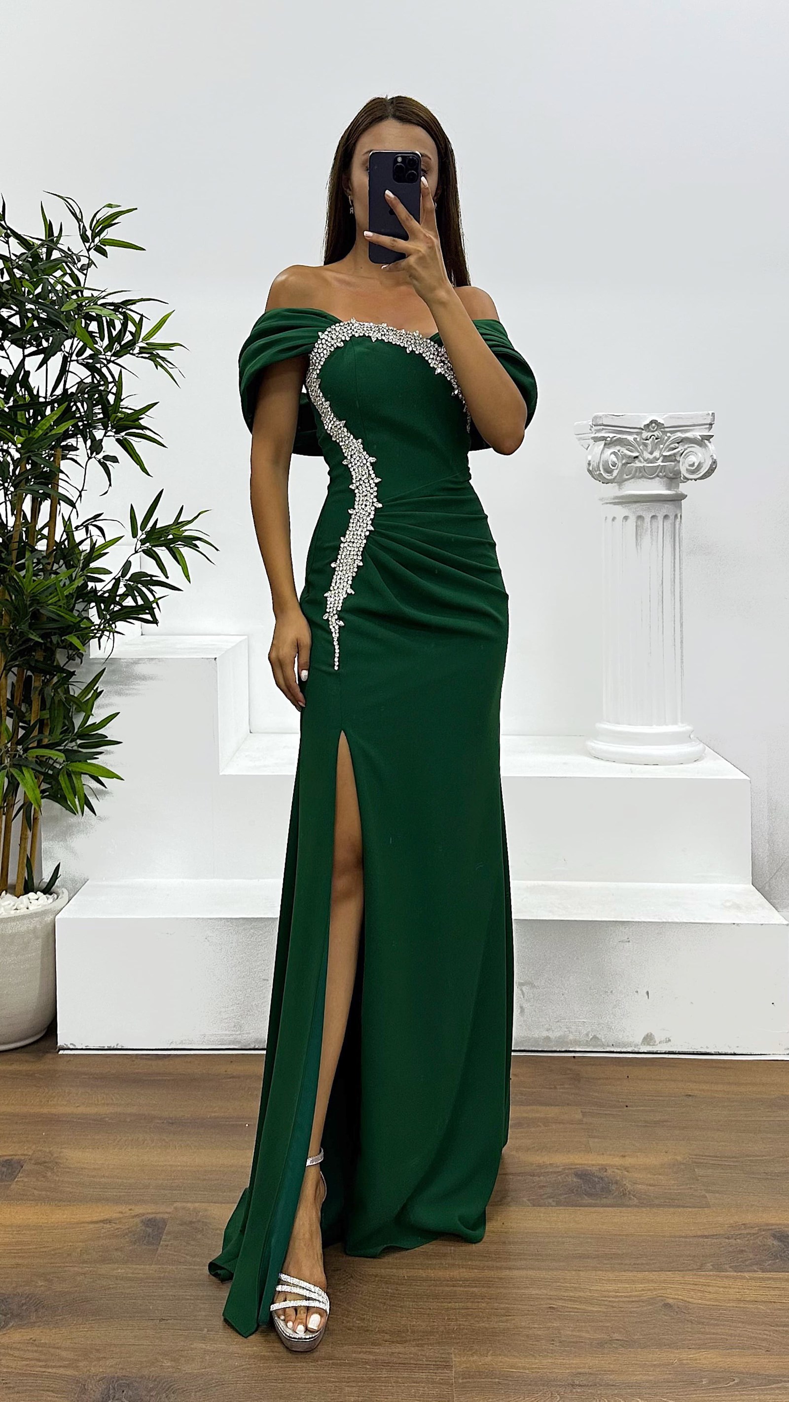 Ürün 36-42 bedene kadar uyumlu, göğüs pedli, astarlı, arka kapama fermuar, yırtmaçlı, taş detay abiye olarak tasarlanmıştır.