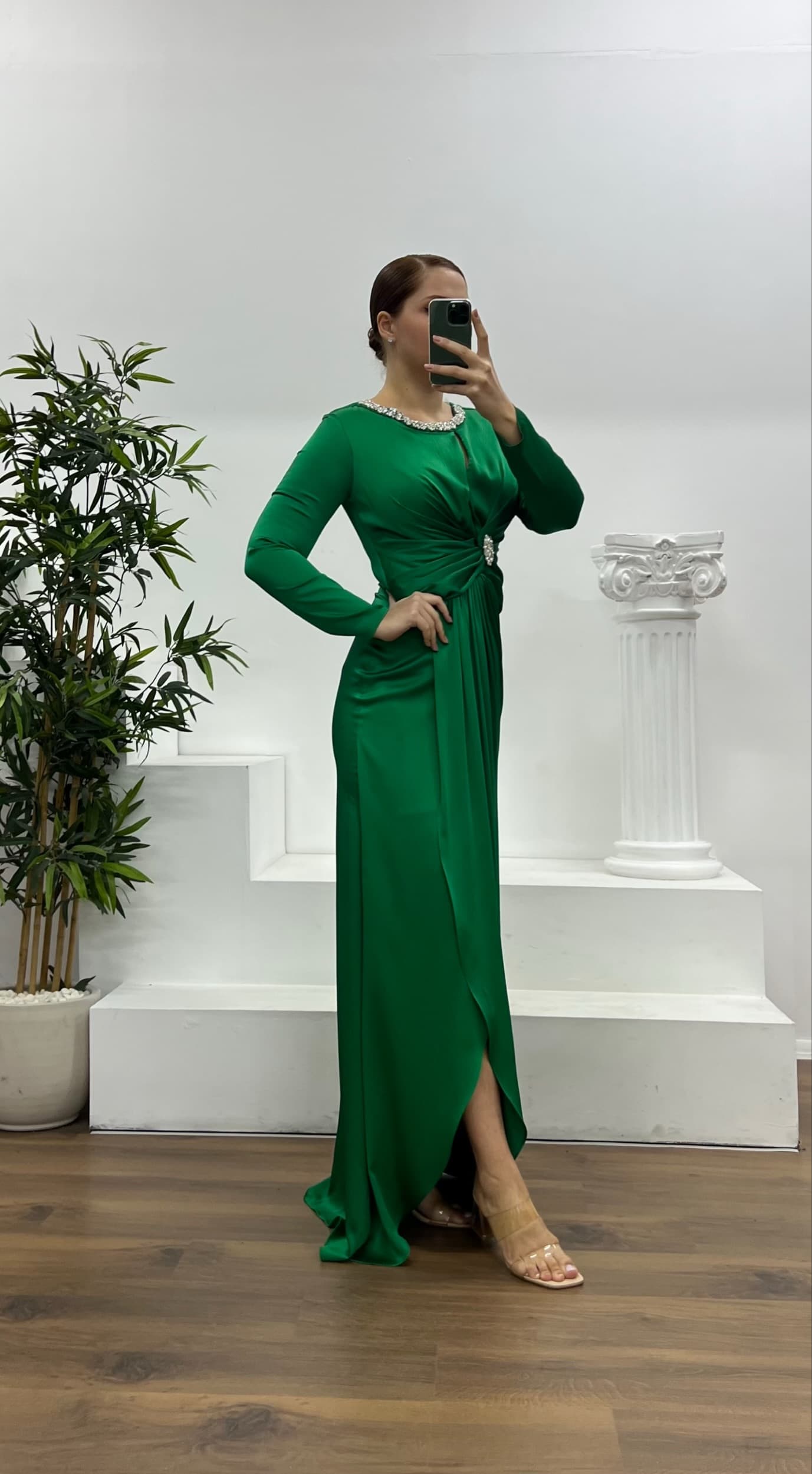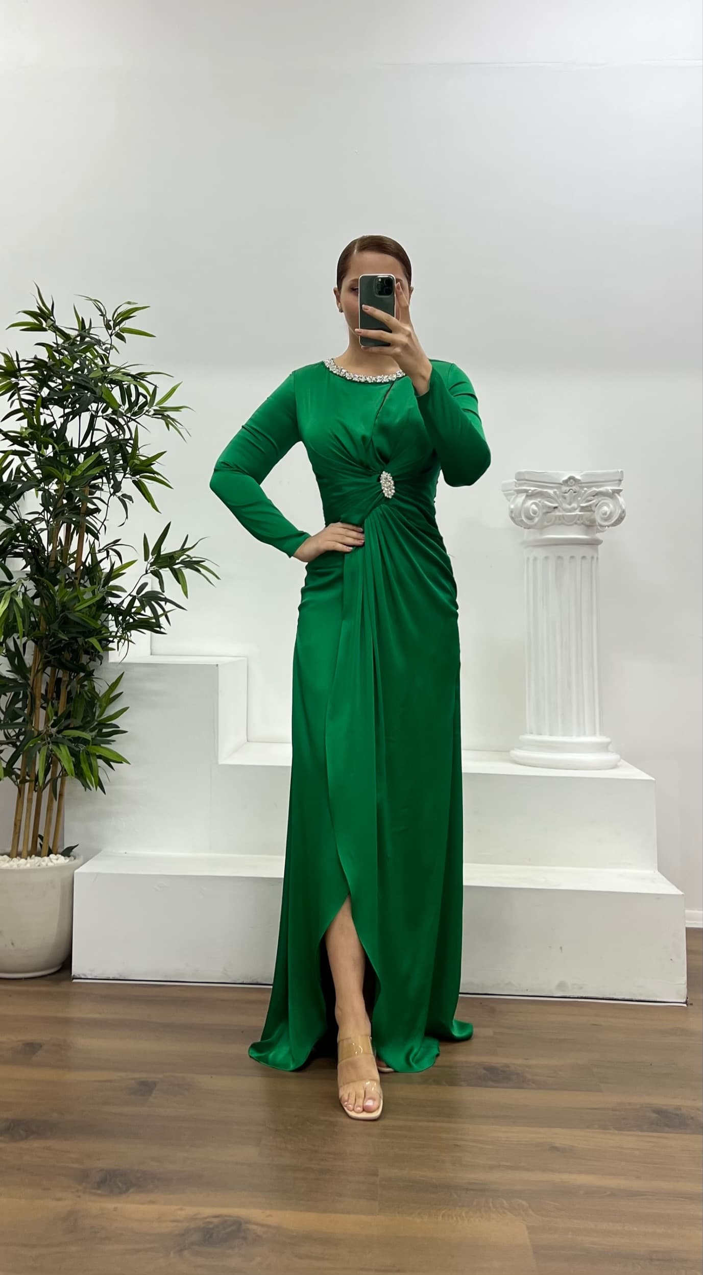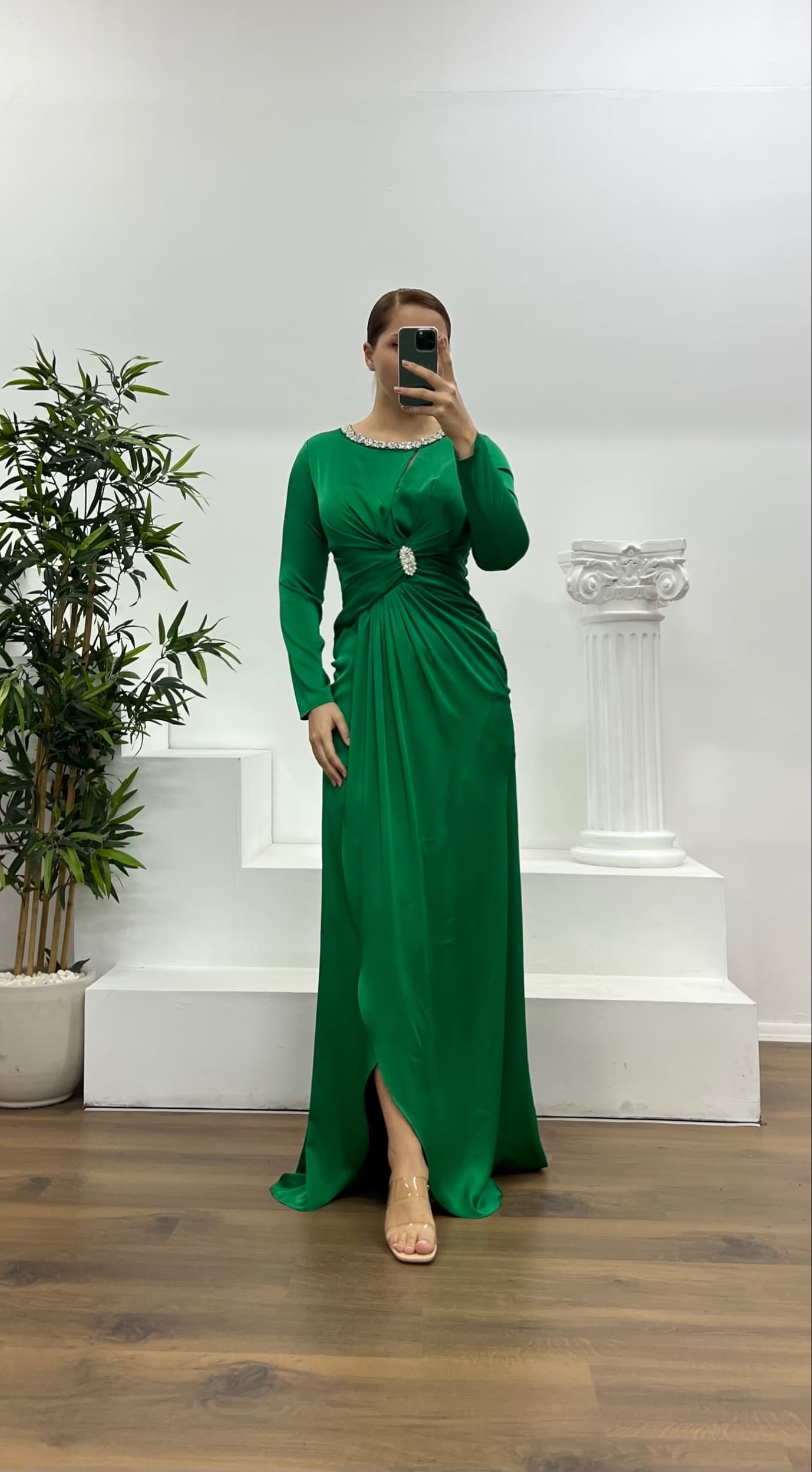Taş detay işlemeli abiye elbise