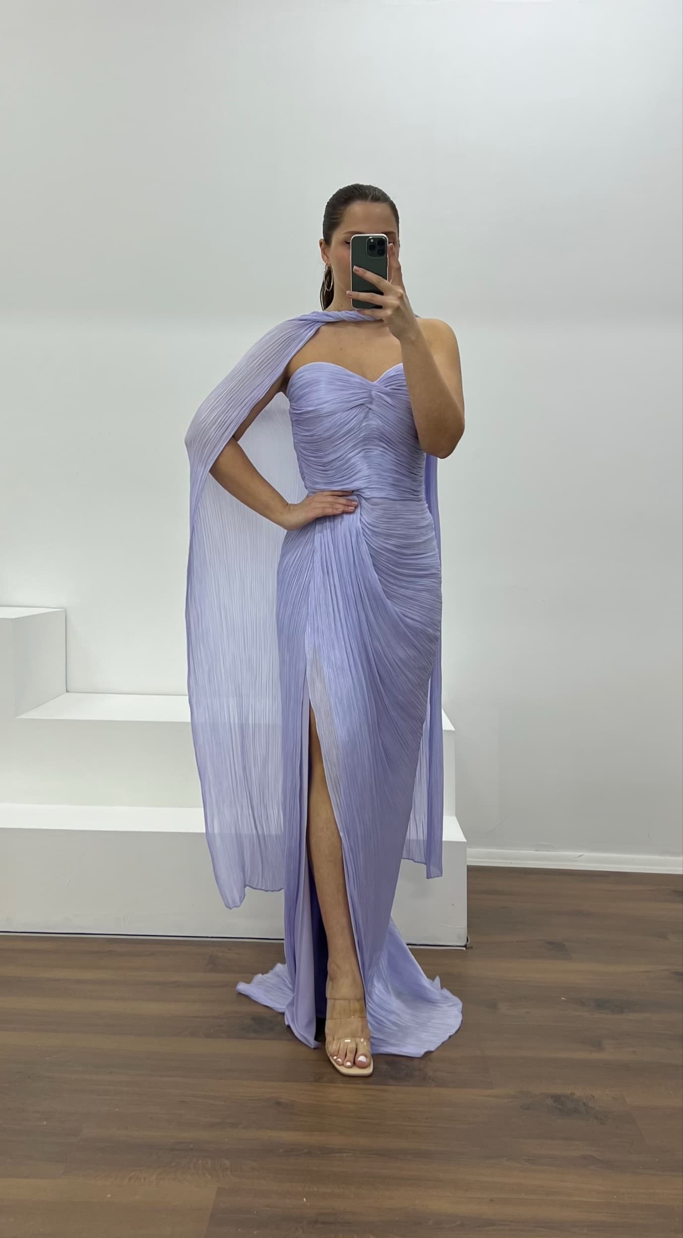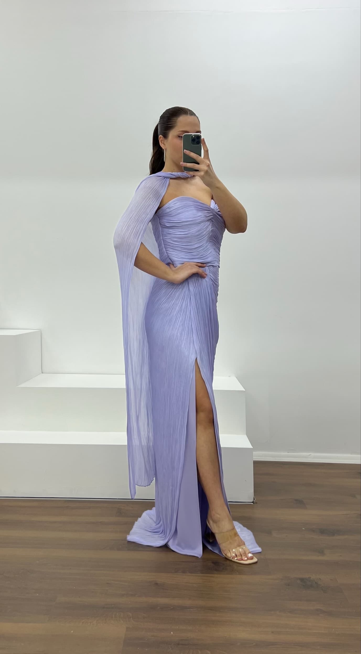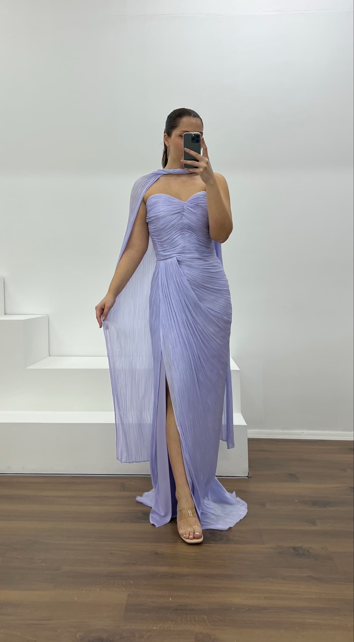• Açık Lila Straplez Piliseli Büyük Beden Abiye Elbise