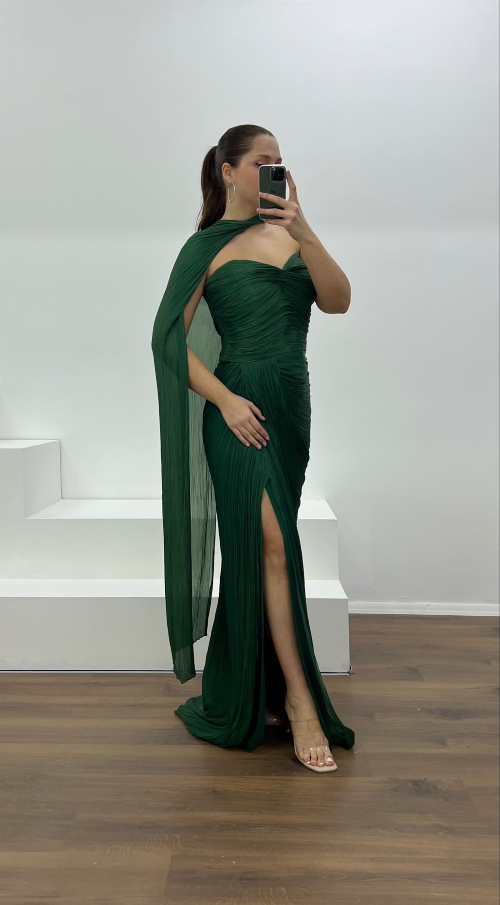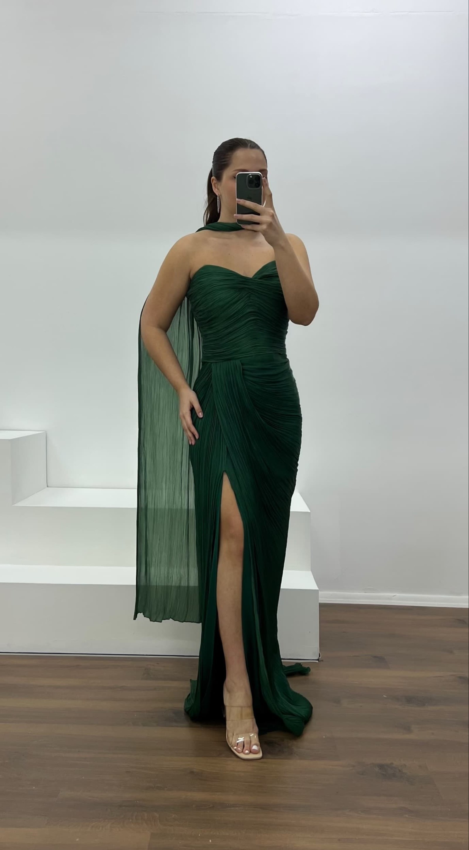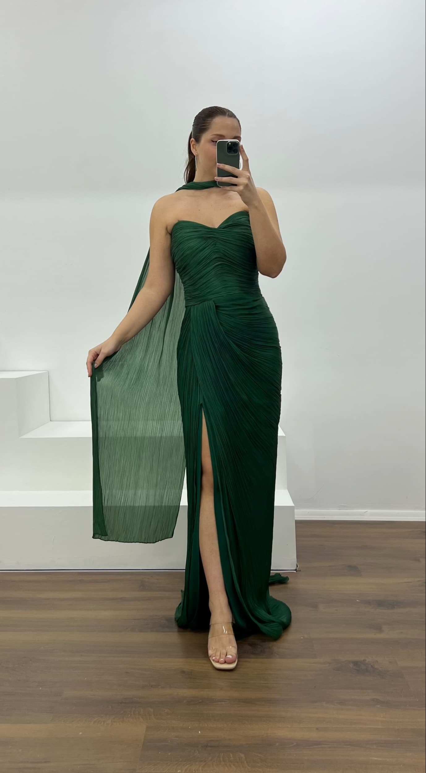 Zümrüt Straplez Piliseli Büyük Beden Abiye Elbise