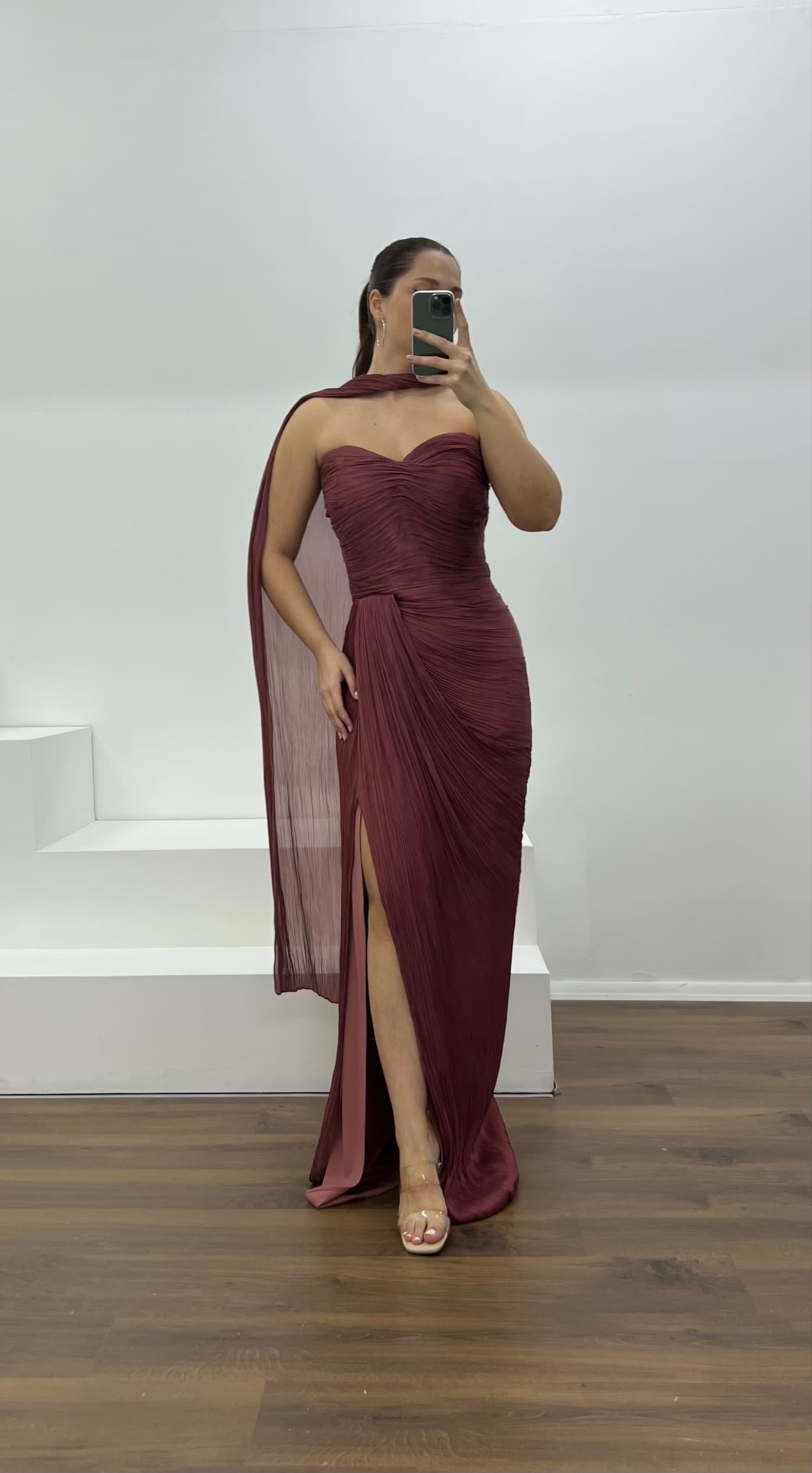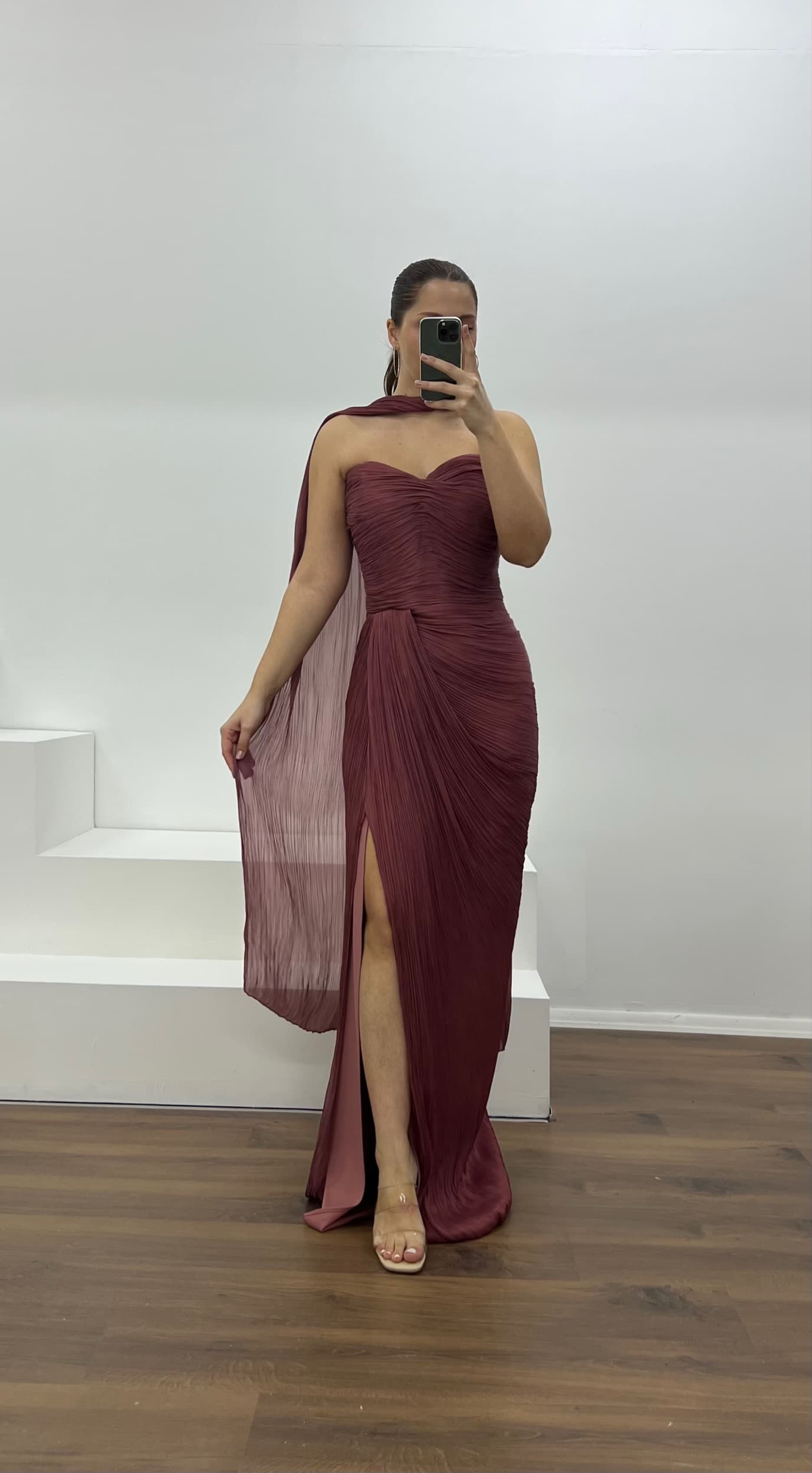 • Kırmızı Straplez Piliseli Büyük Beden Abiye Elbise