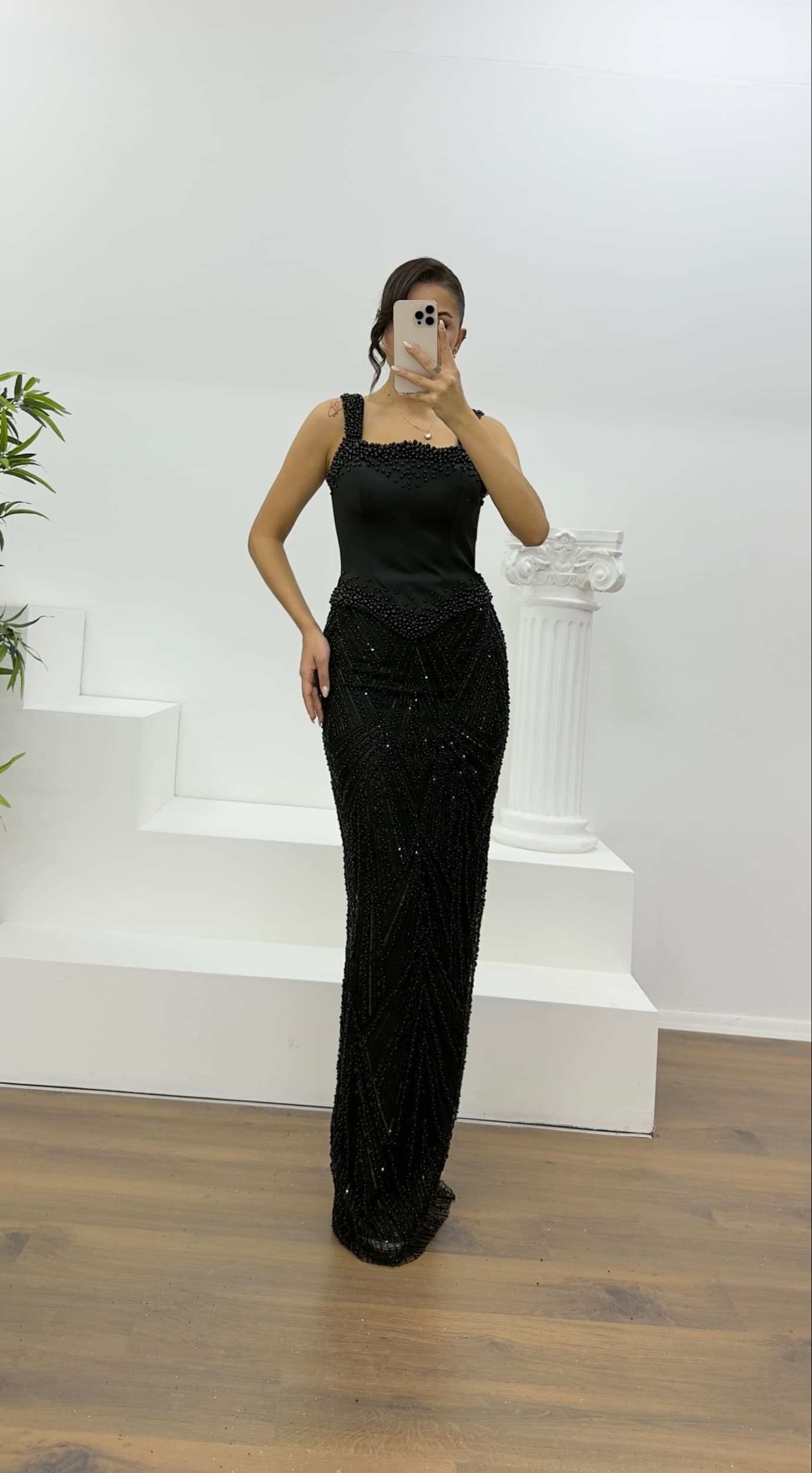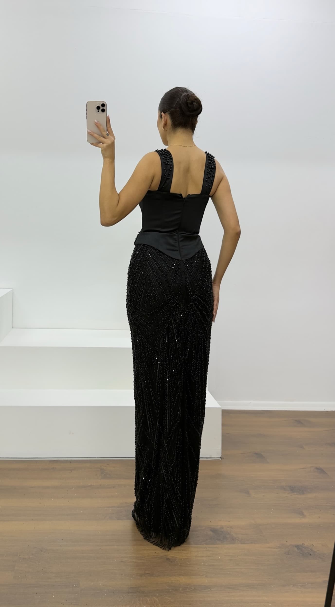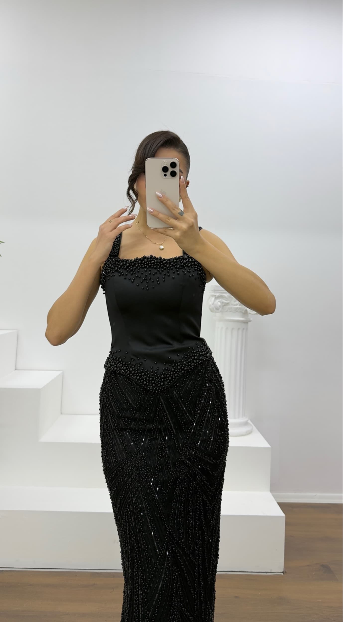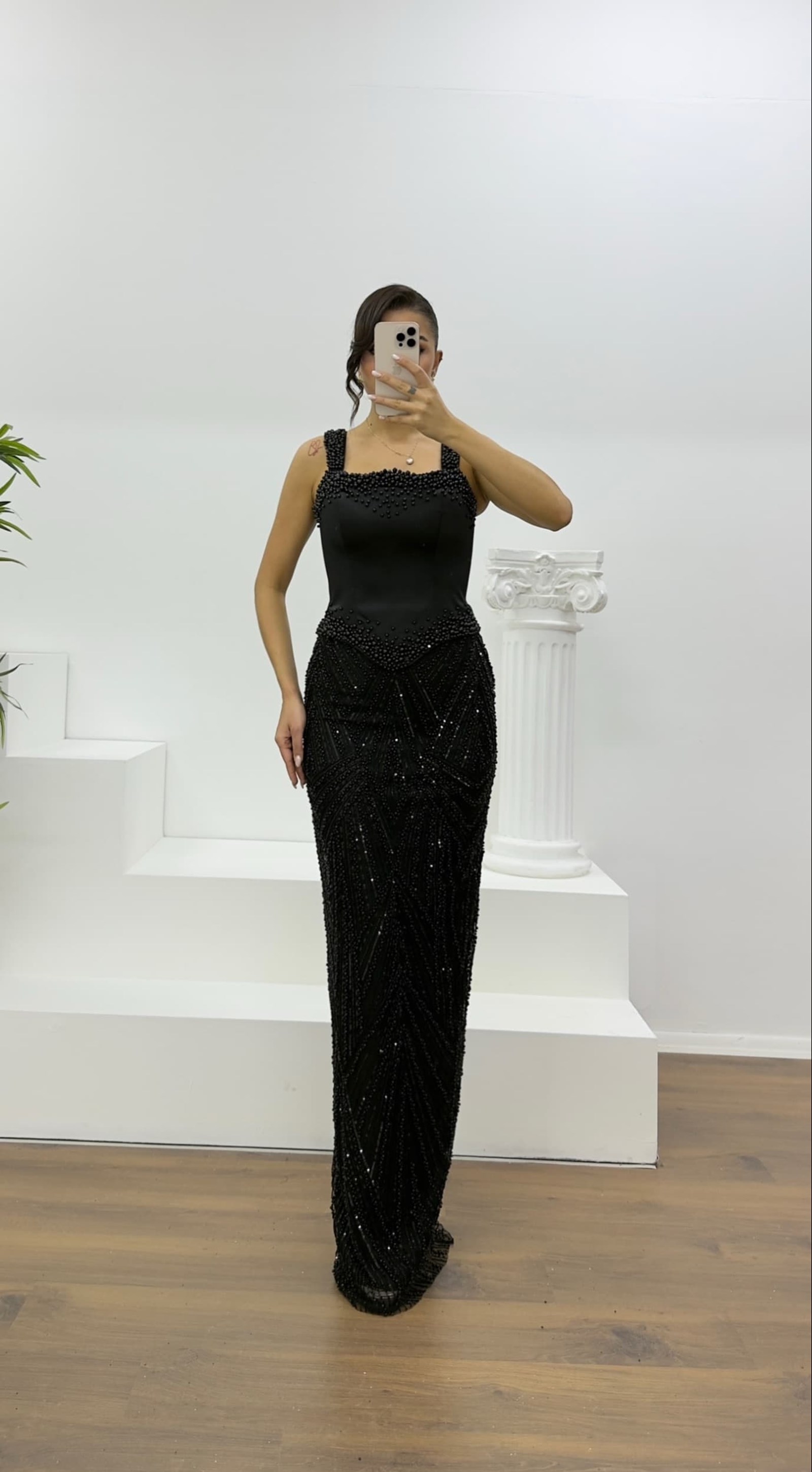 • Siyah Boncuk İşlemeli Abiye Elbise