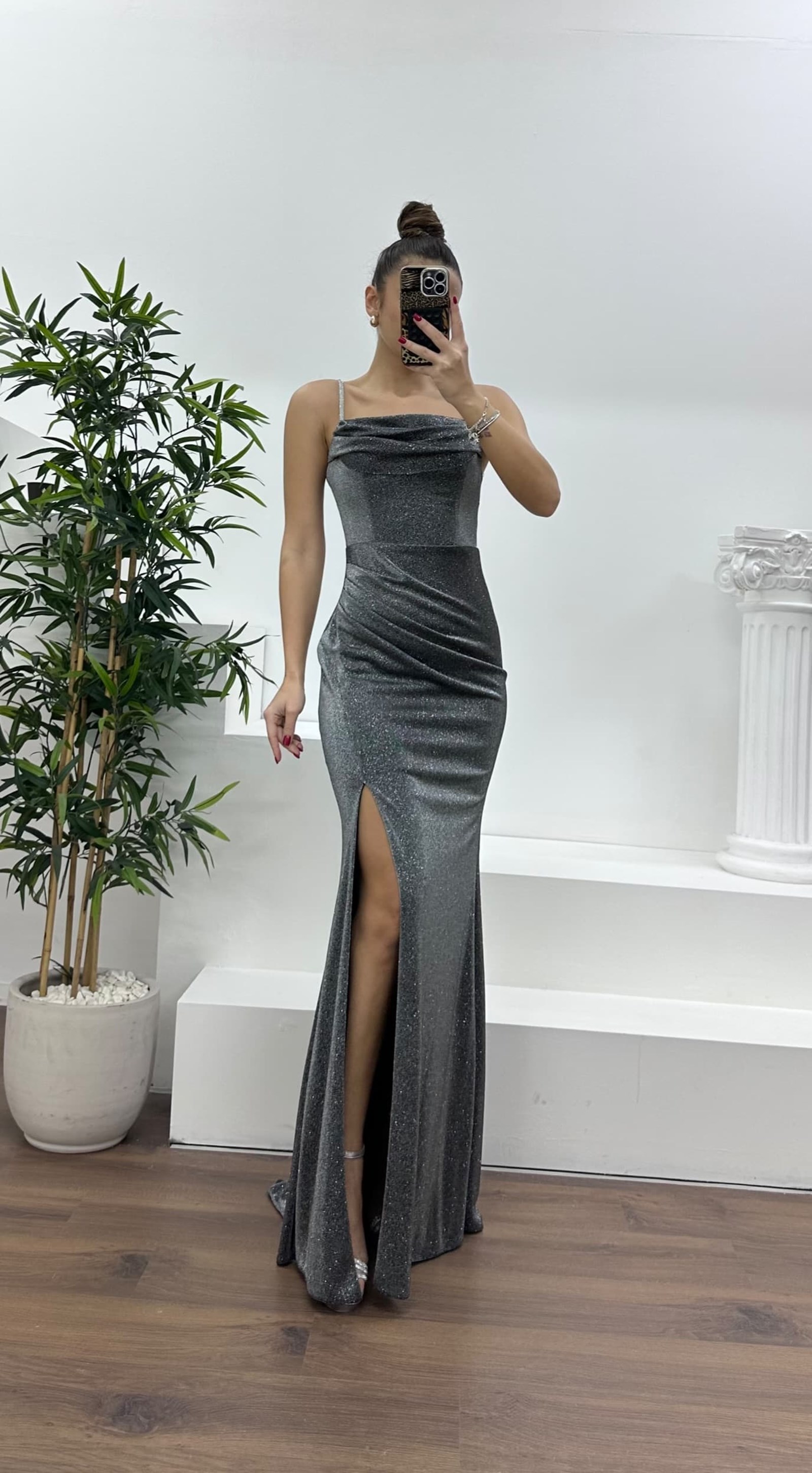 Ürün 36-42 bedene kadar uyumludur. göğüs pedli, astarlı, arka kapama fermuar, yırtmaçlı abiye olarak tasarlanmıştır.