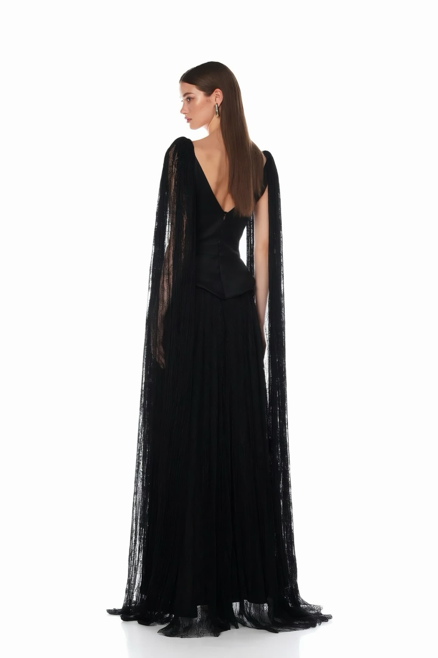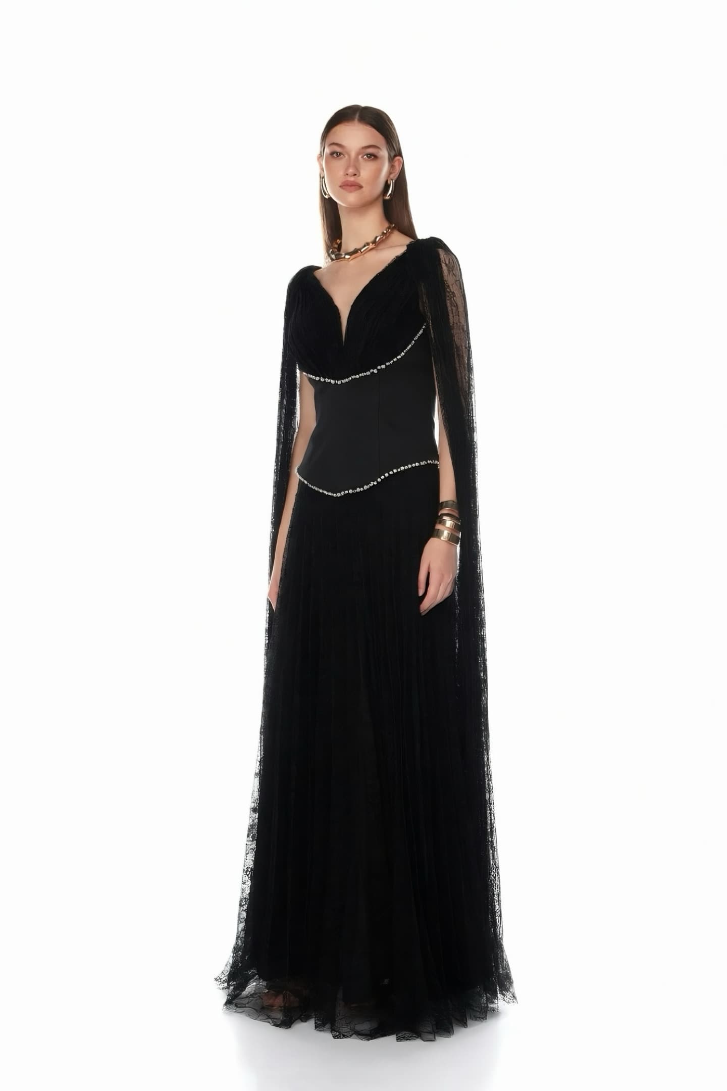 • Siyah Dantel Pelerinli Abiye Elbise