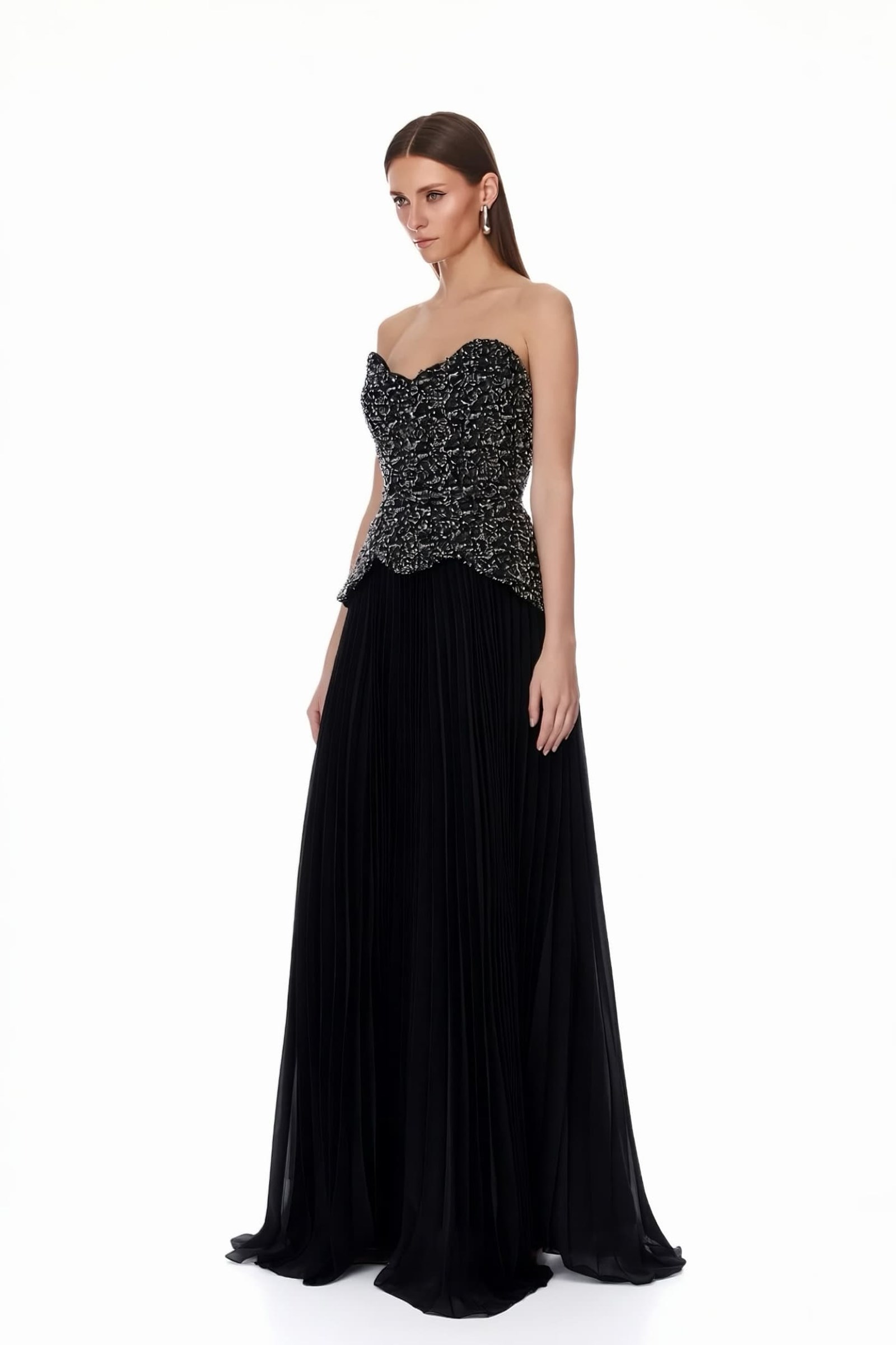 • Siyah Payetli Peplum Detaylı Abiye Elbise
