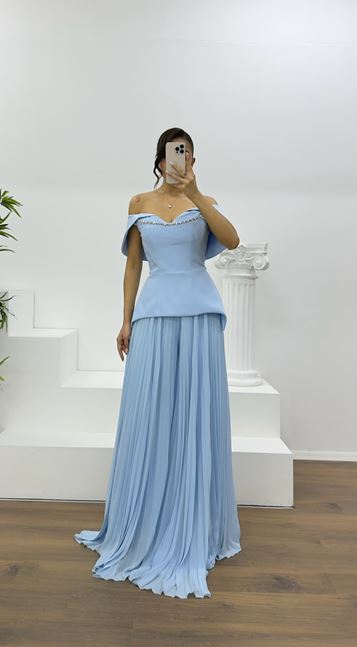 • yeni-gelen-en.png Baby Blue Embroidered Evening Dress with Fringed Sleeves