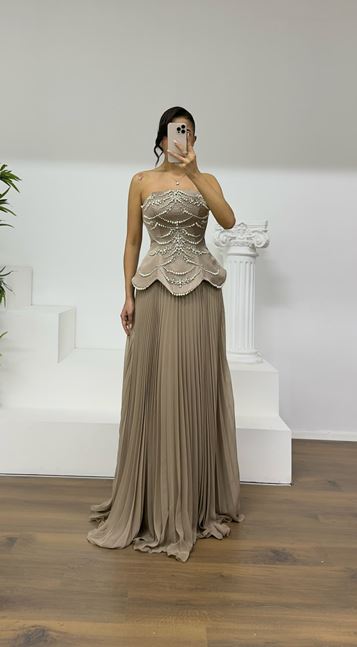 • yeni-gelen-en.png Mink-colored, fringed, embroidered evening dress.