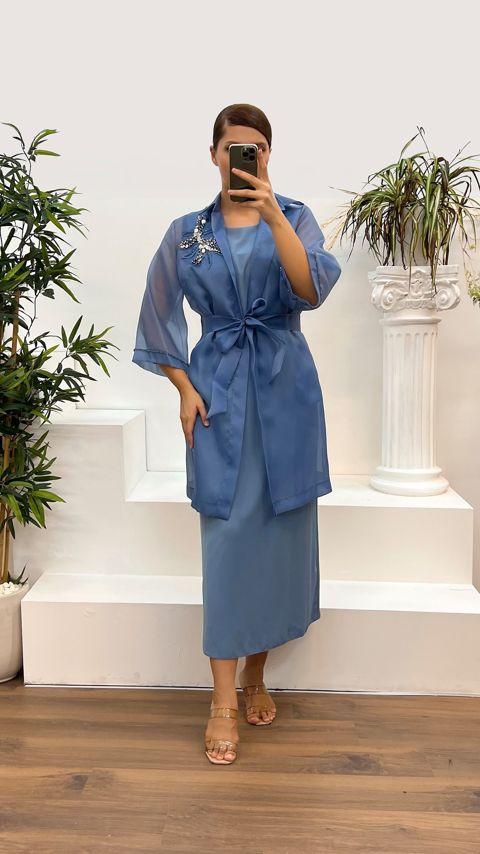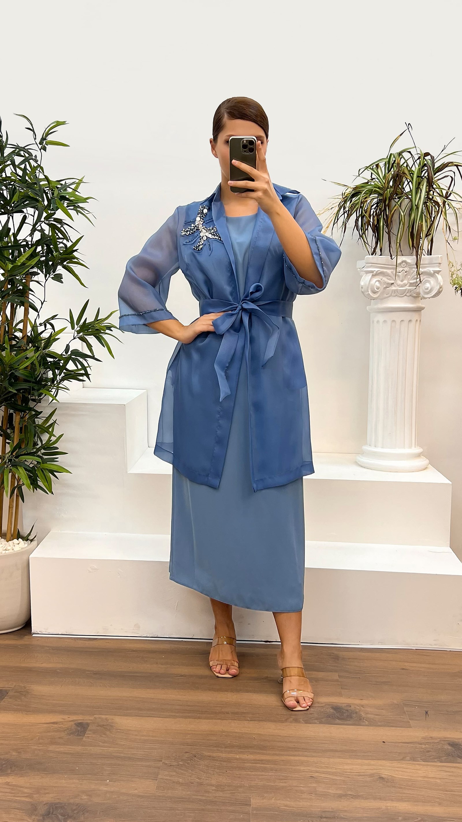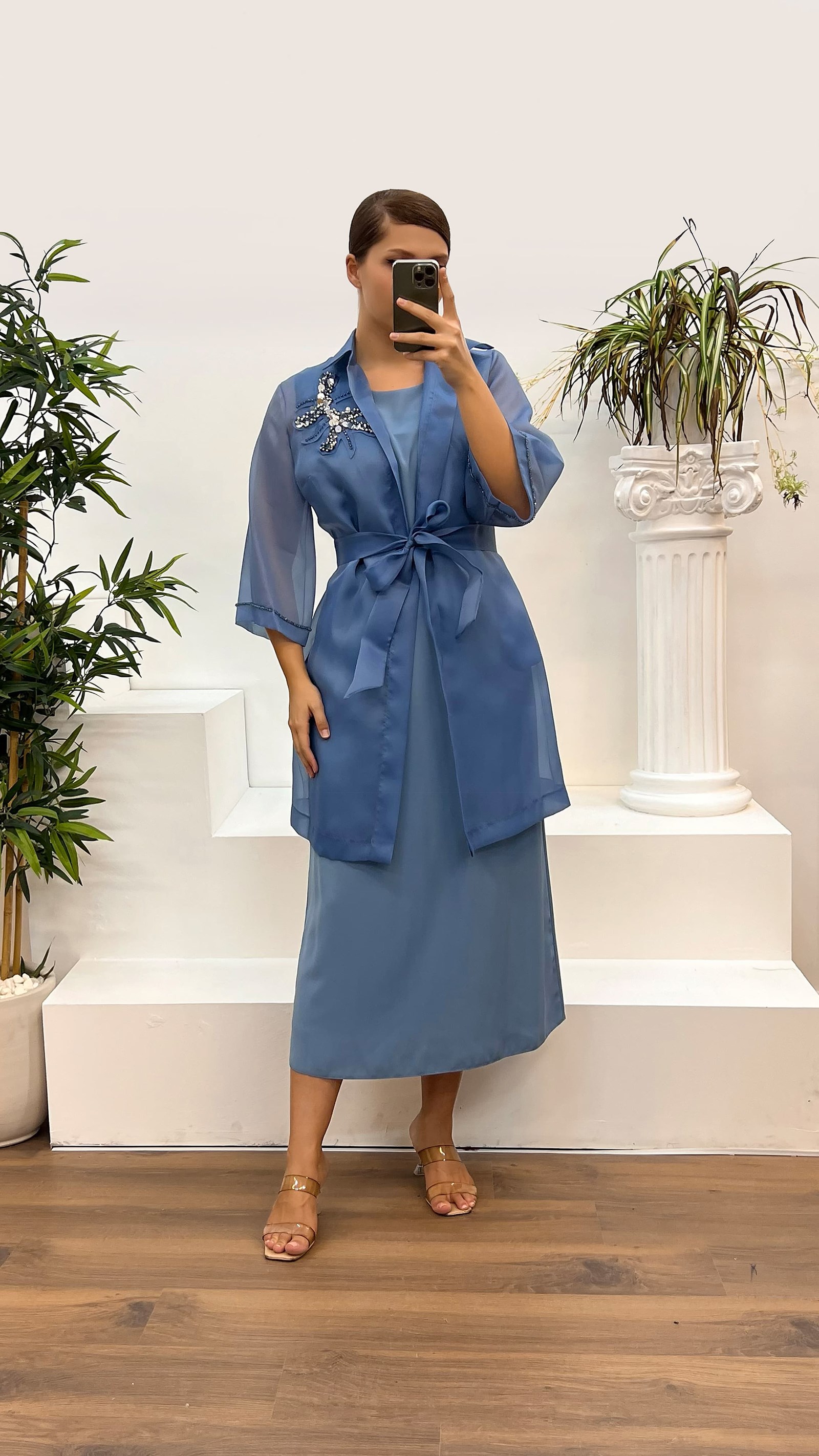 • İndigo Büyük Beden Saten Abiye Takım Elbise