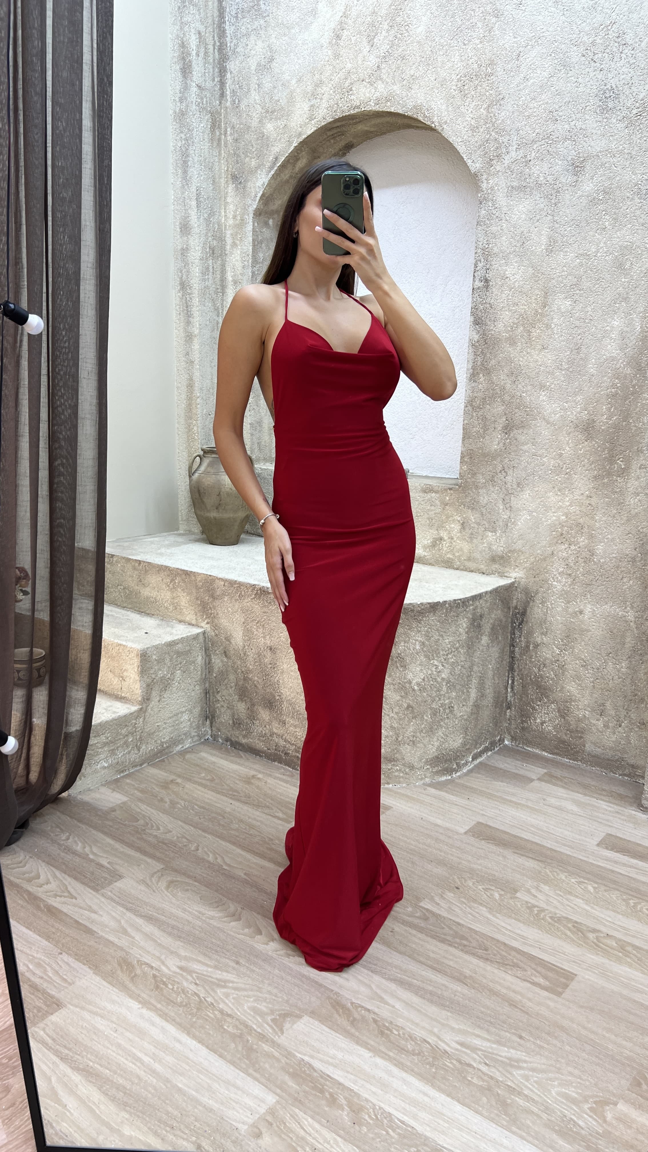 • Sarı İp Askılı Sırt Detay Tasarım Elbise