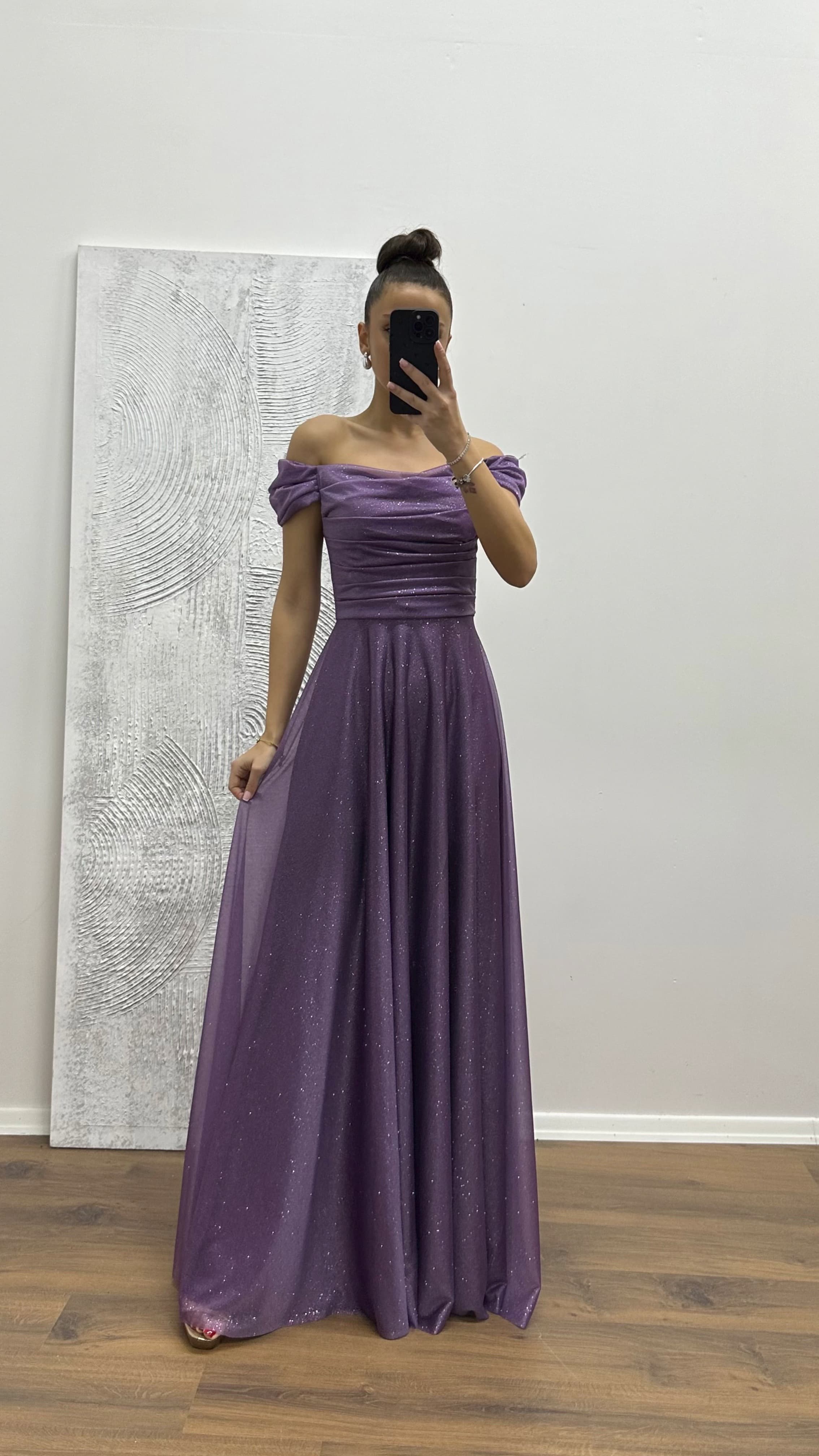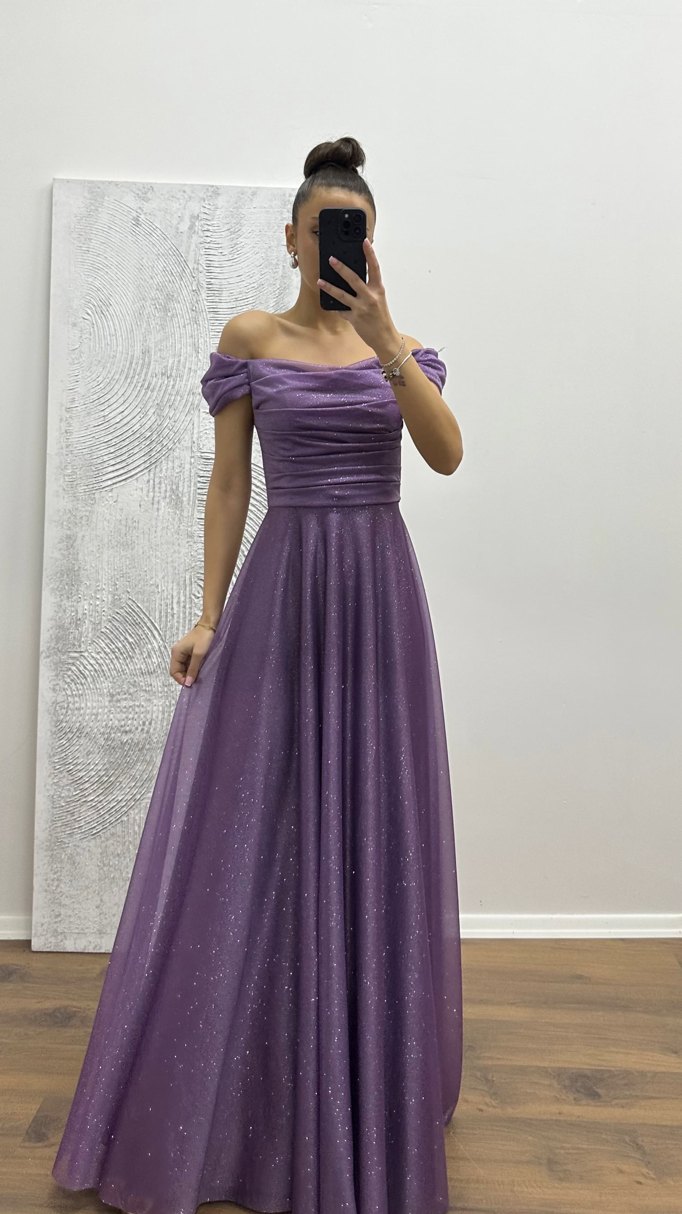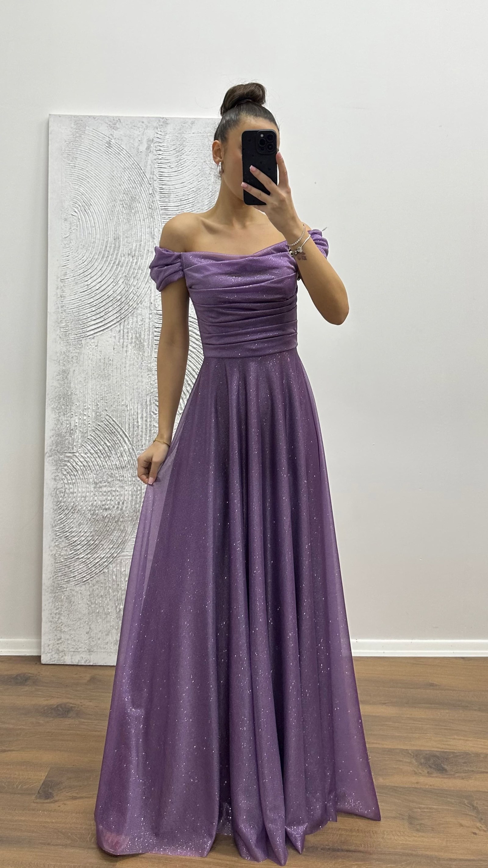 • Lavanta Göğsü Drapeli Abiye Elbise