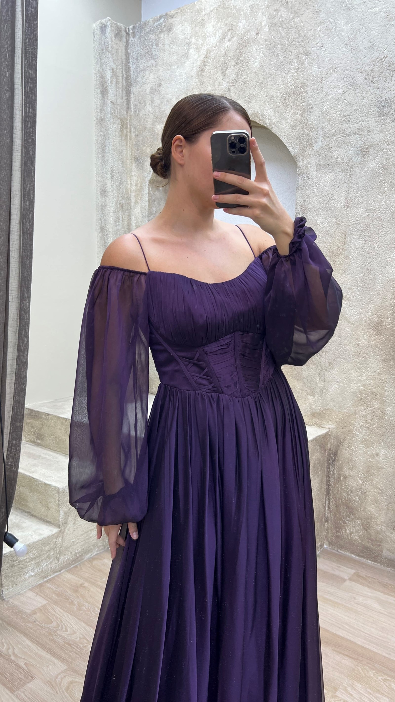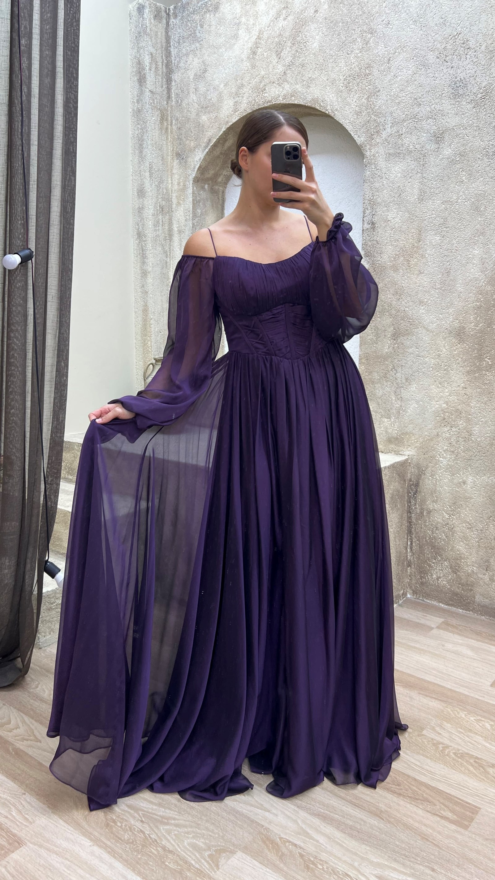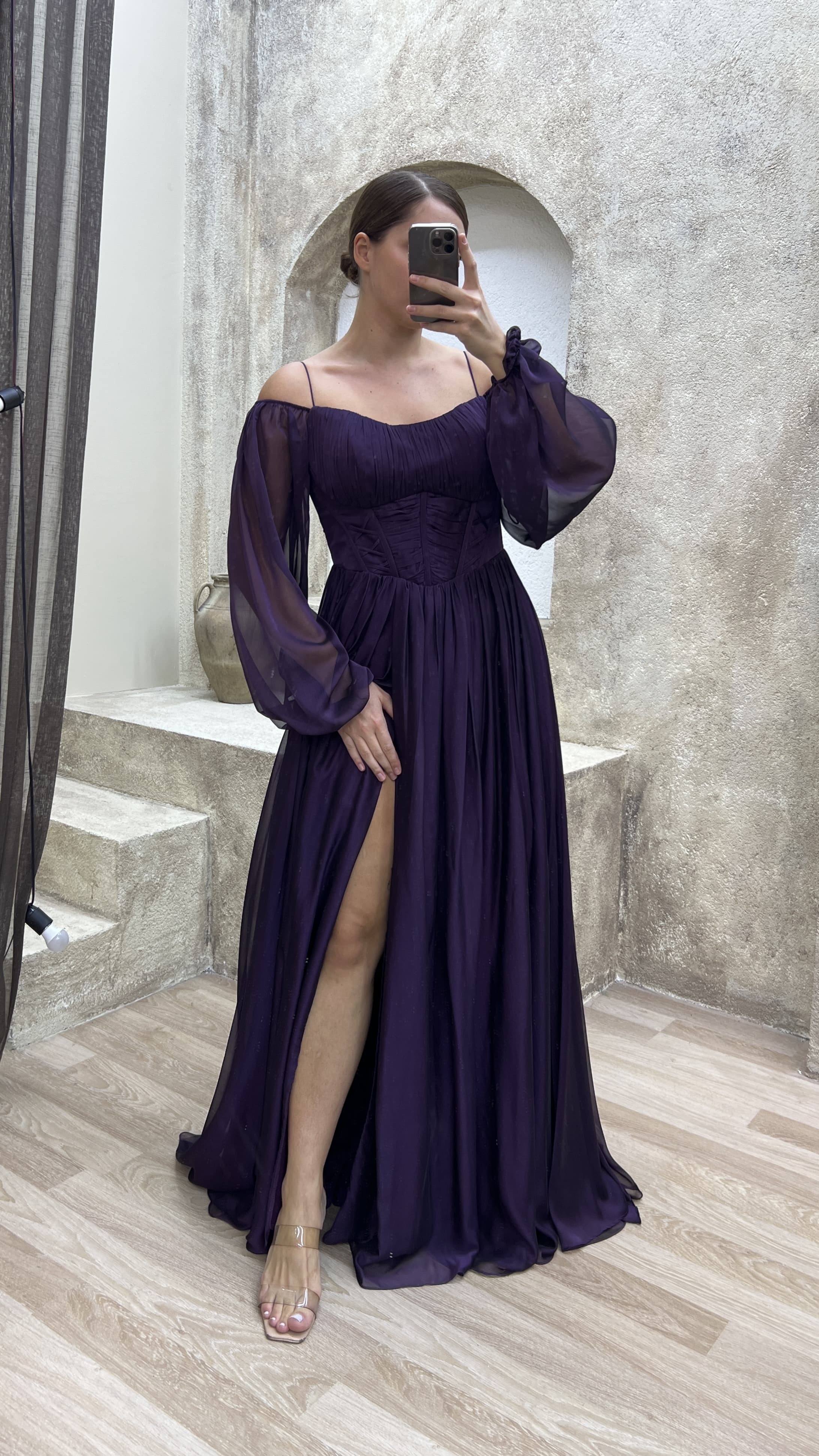 Plum Transparent Detail Design Chiffon Plus Size Evening Dress