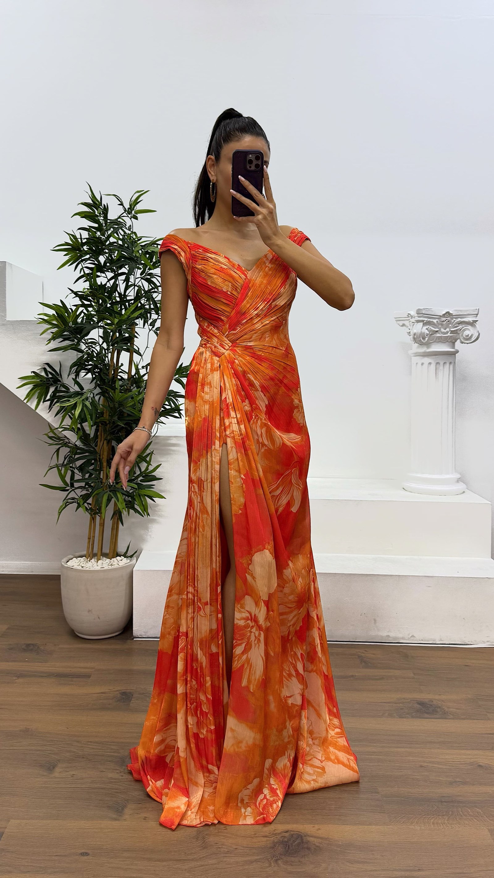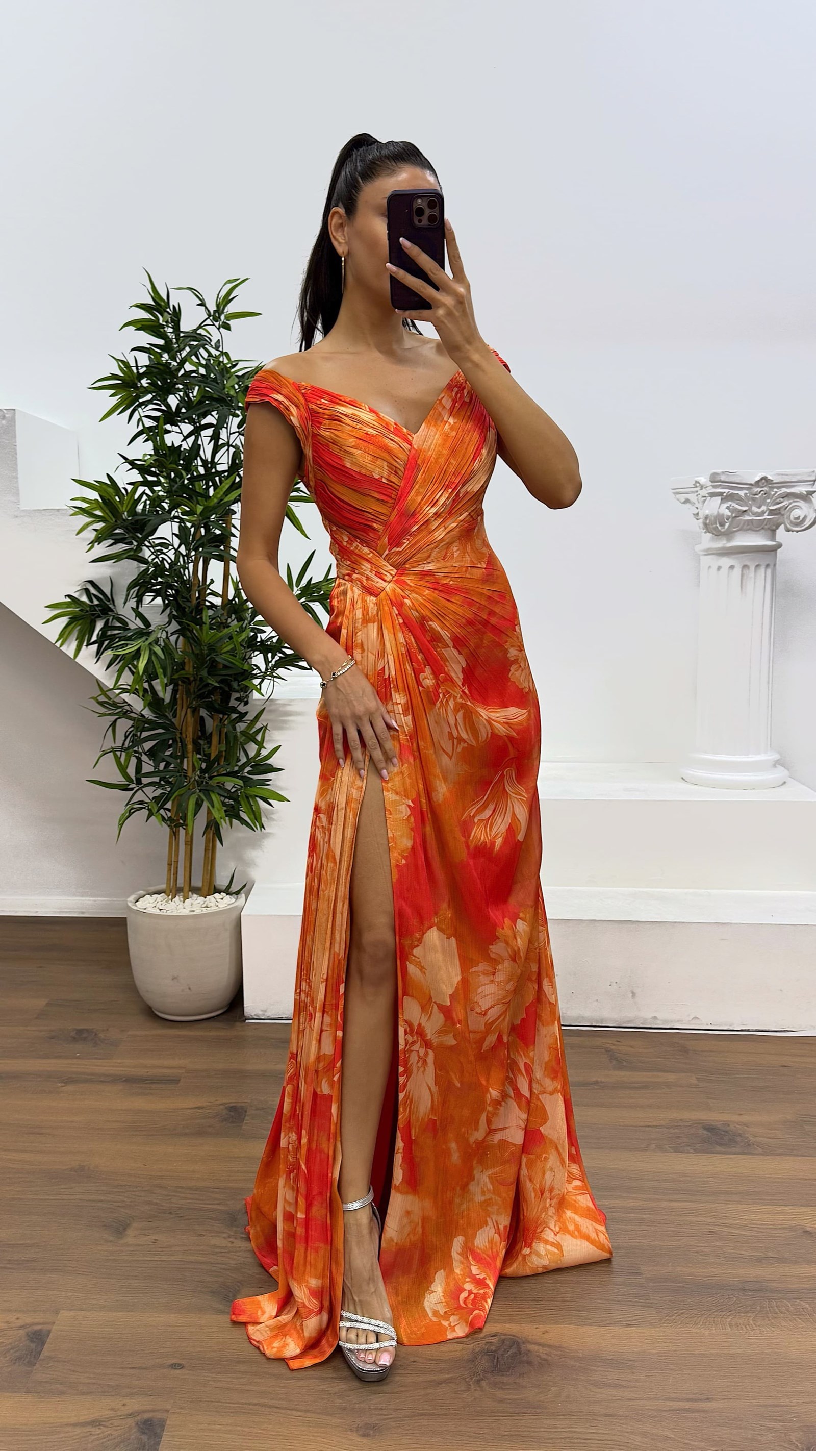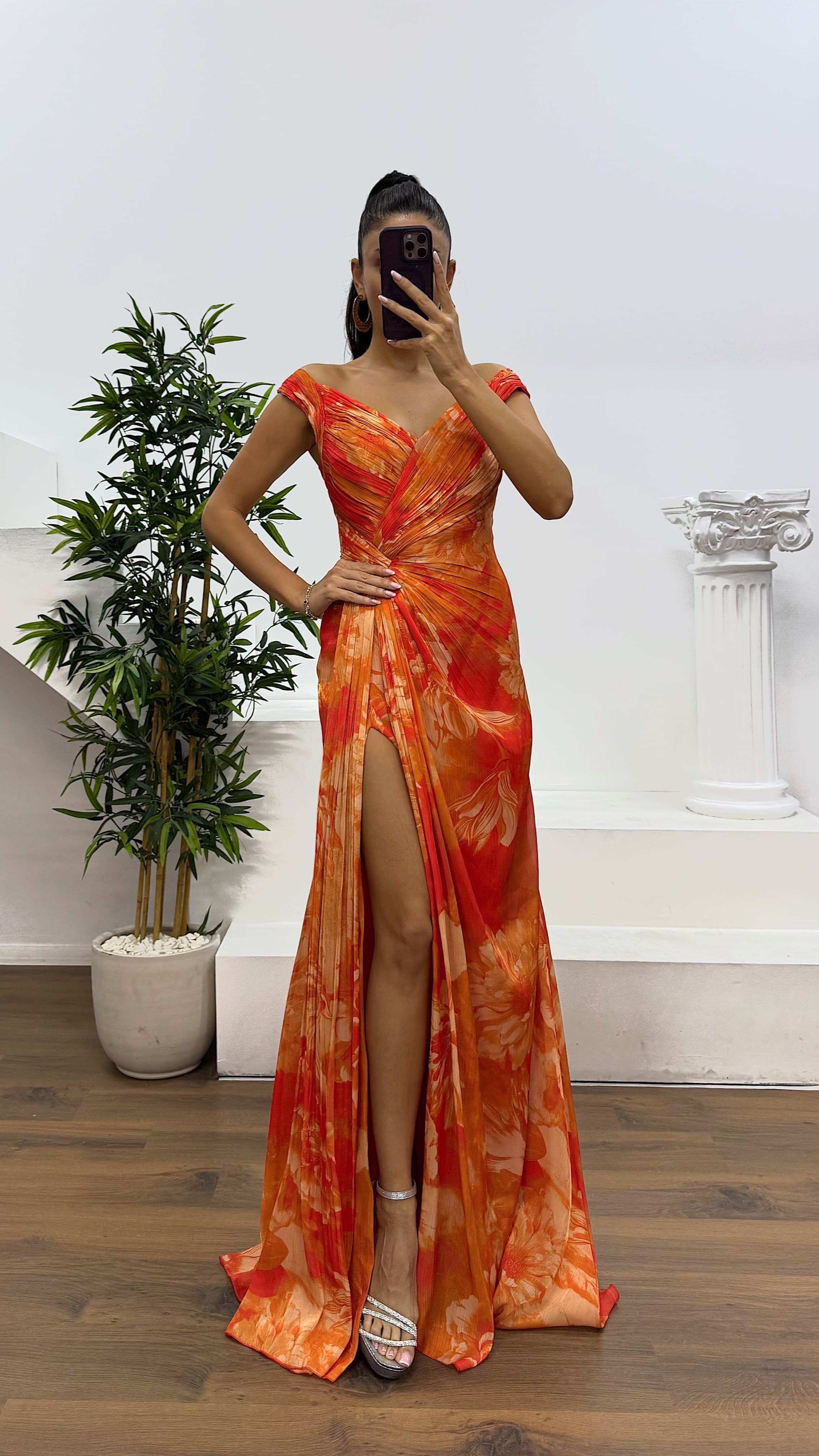 5 RatingOranj Askılı Desenli Abiye Elbise Ürün Yorumları