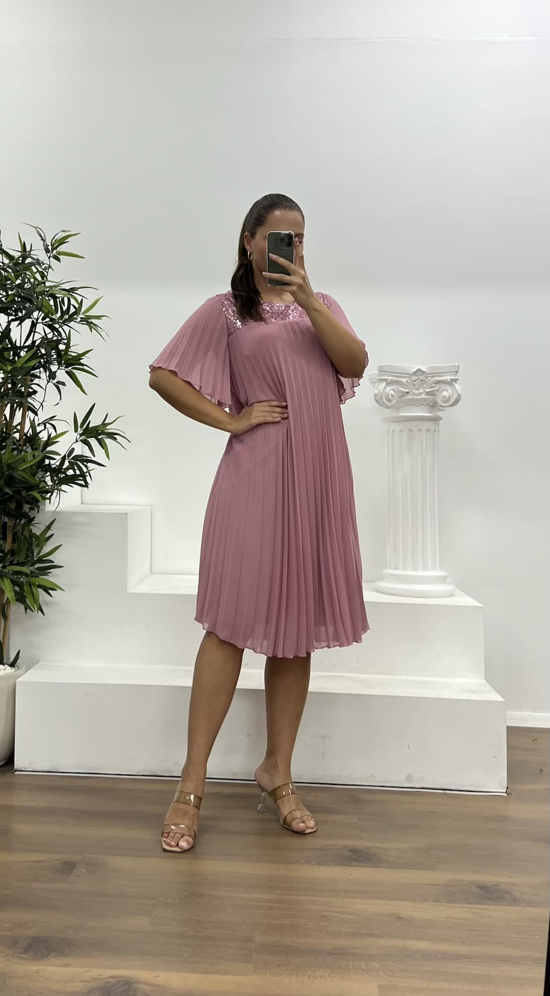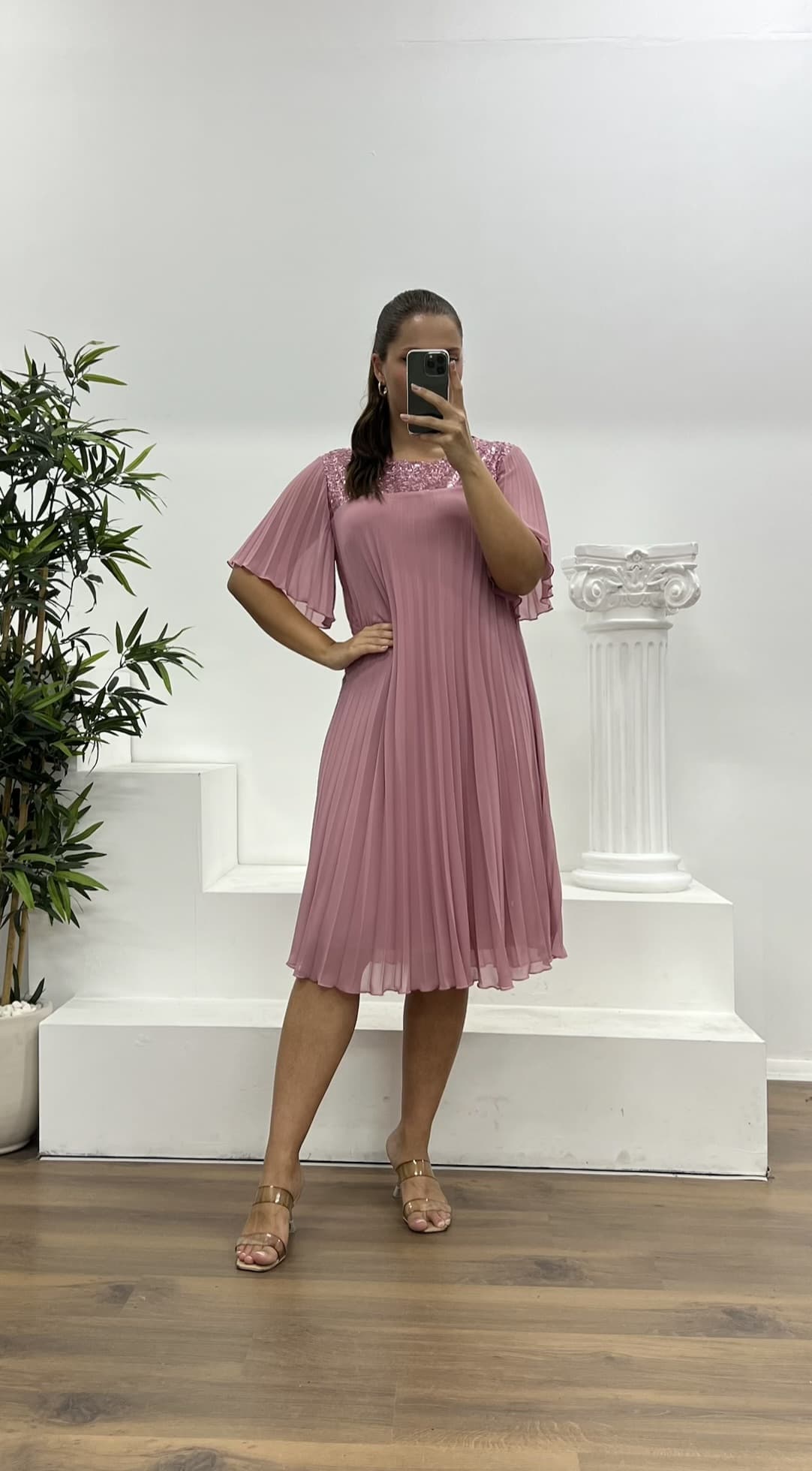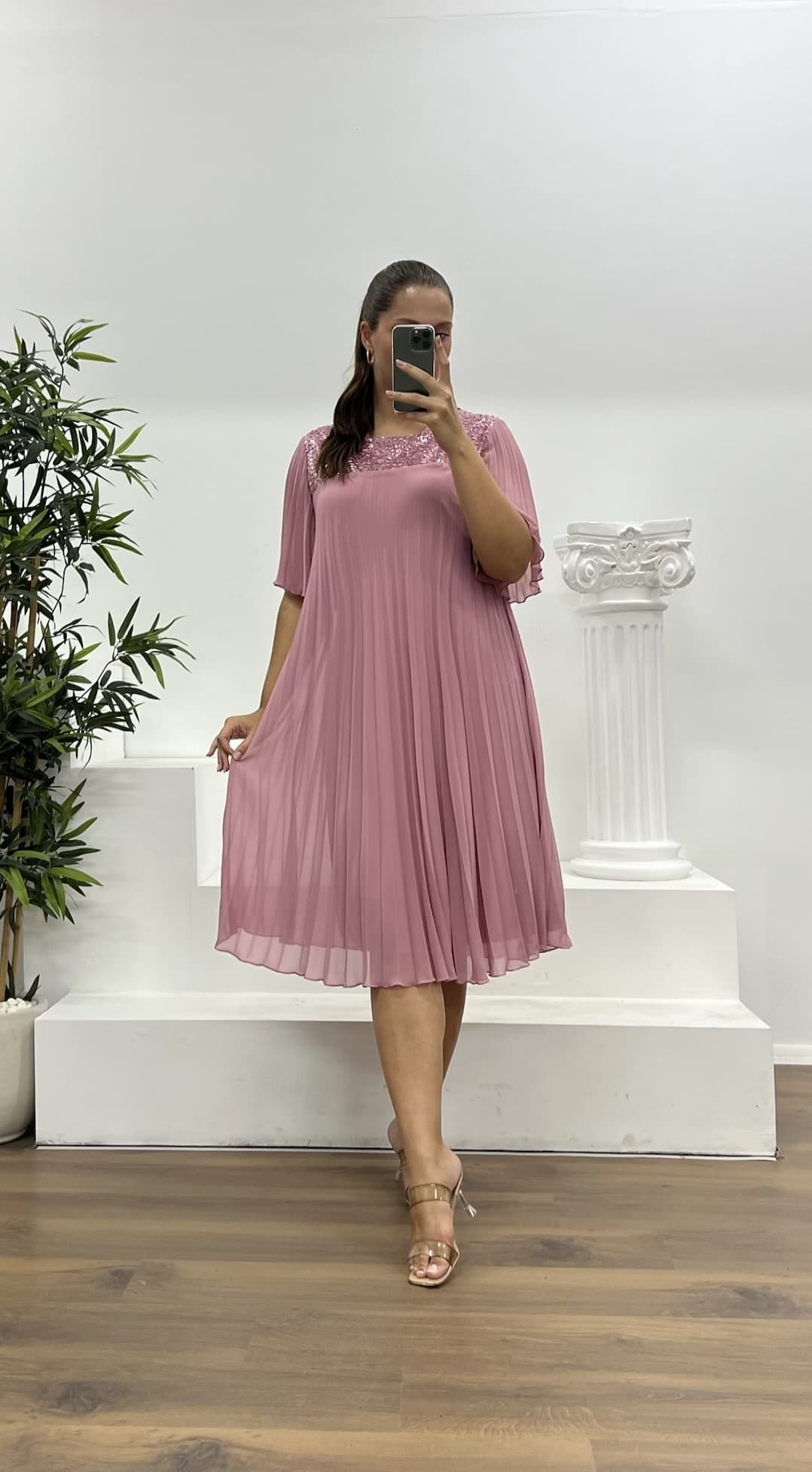• Pudra Piliseli Şifon Büyük Beden Abiye Elbise