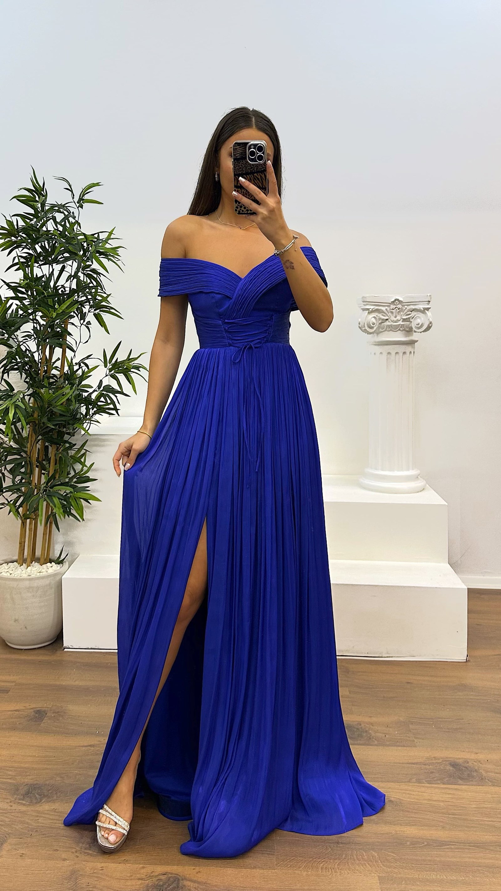 • Saks Madonna Yaka Piliseli Abiye Elbise