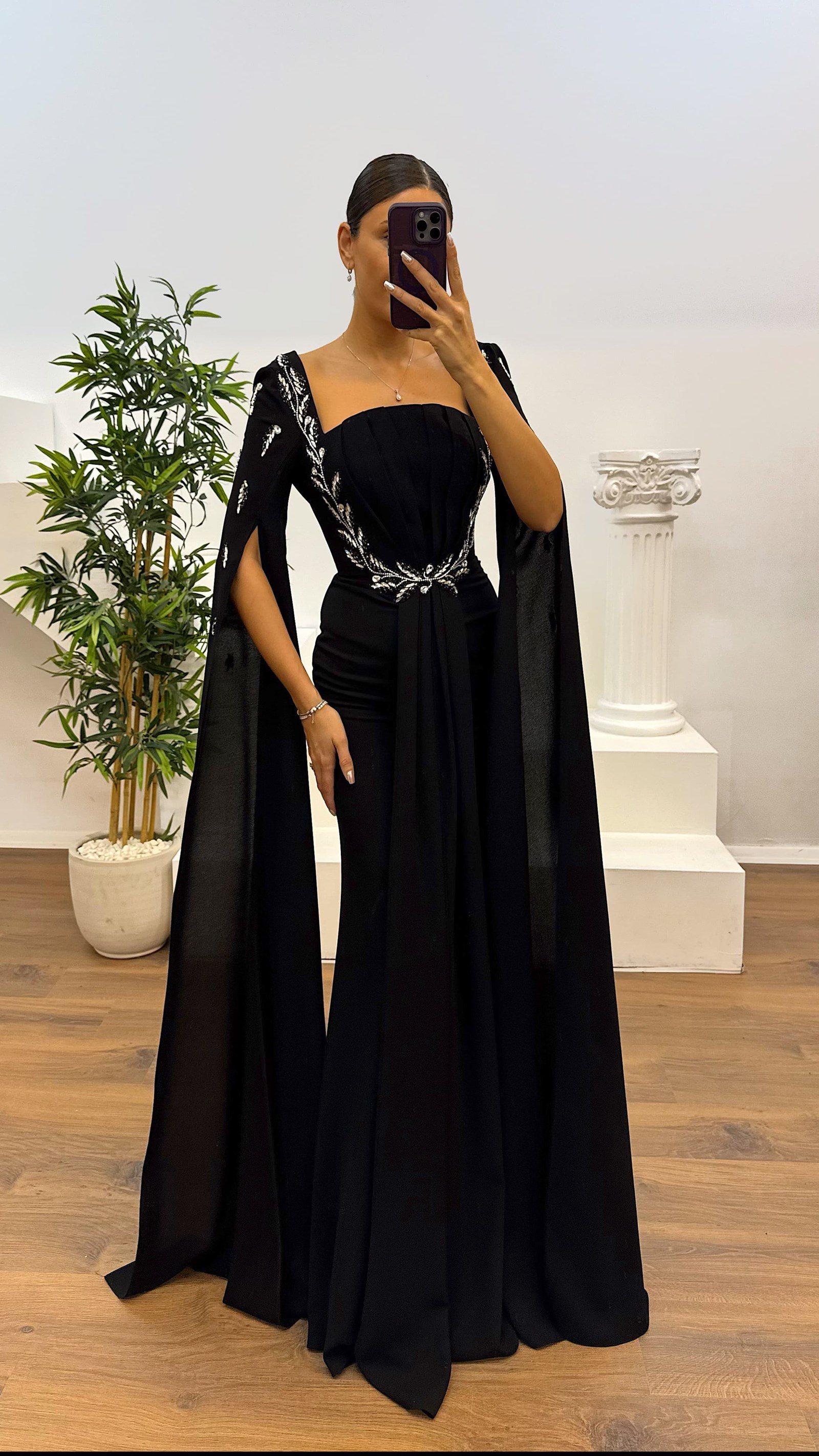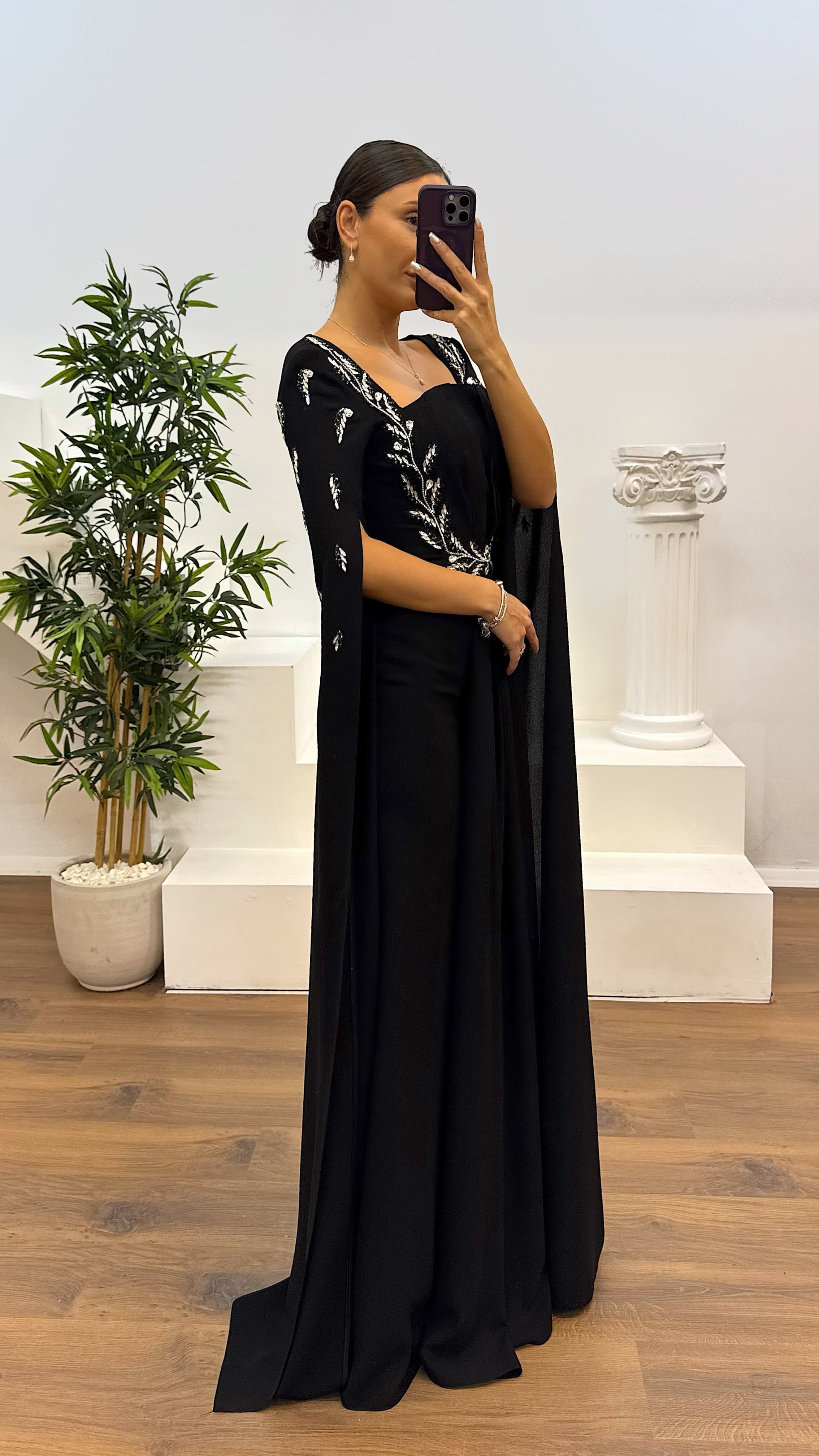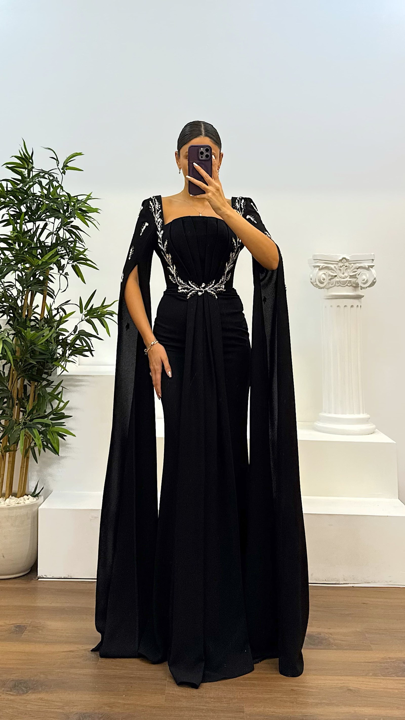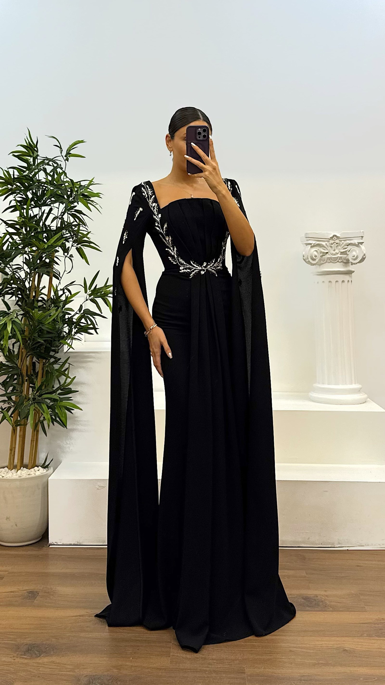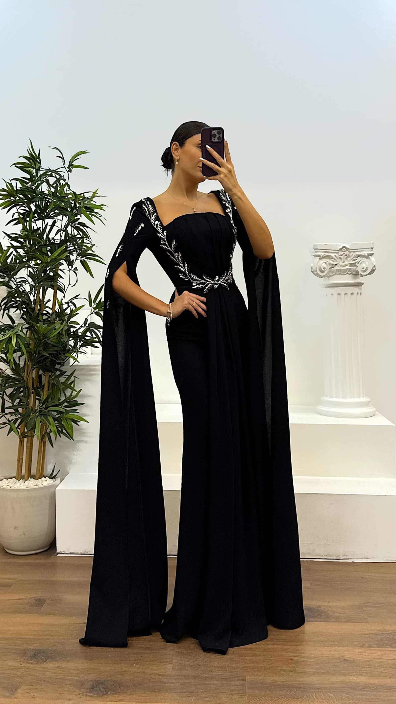 Evening Dress with Embroidery Details The product is suitable for sizes 36-42, featuring padded cups, lined, with a back zipper closure, and designed as an embroidered evening dress. Product length: It may vary between 165-170 cm. Fabric type: Atlas 100% polyester