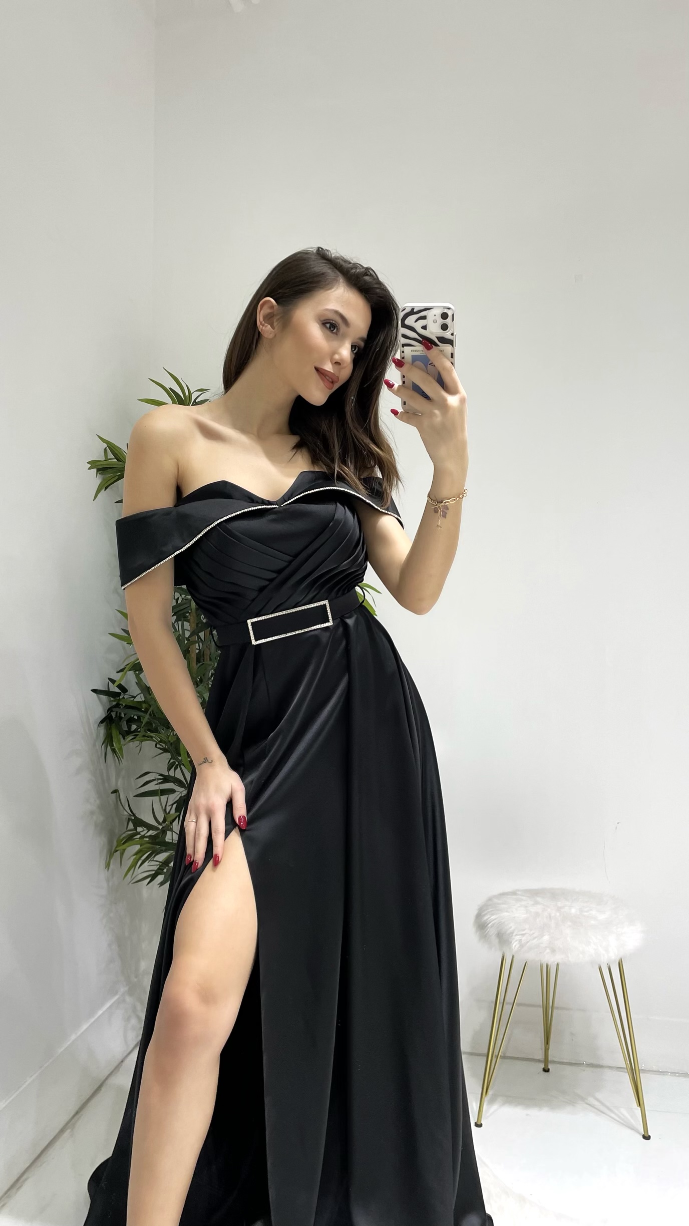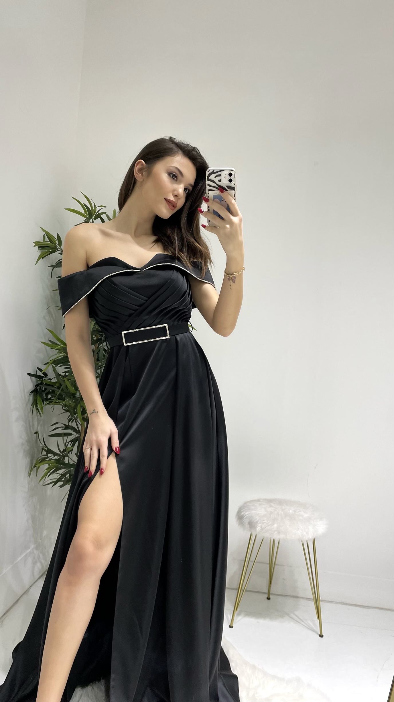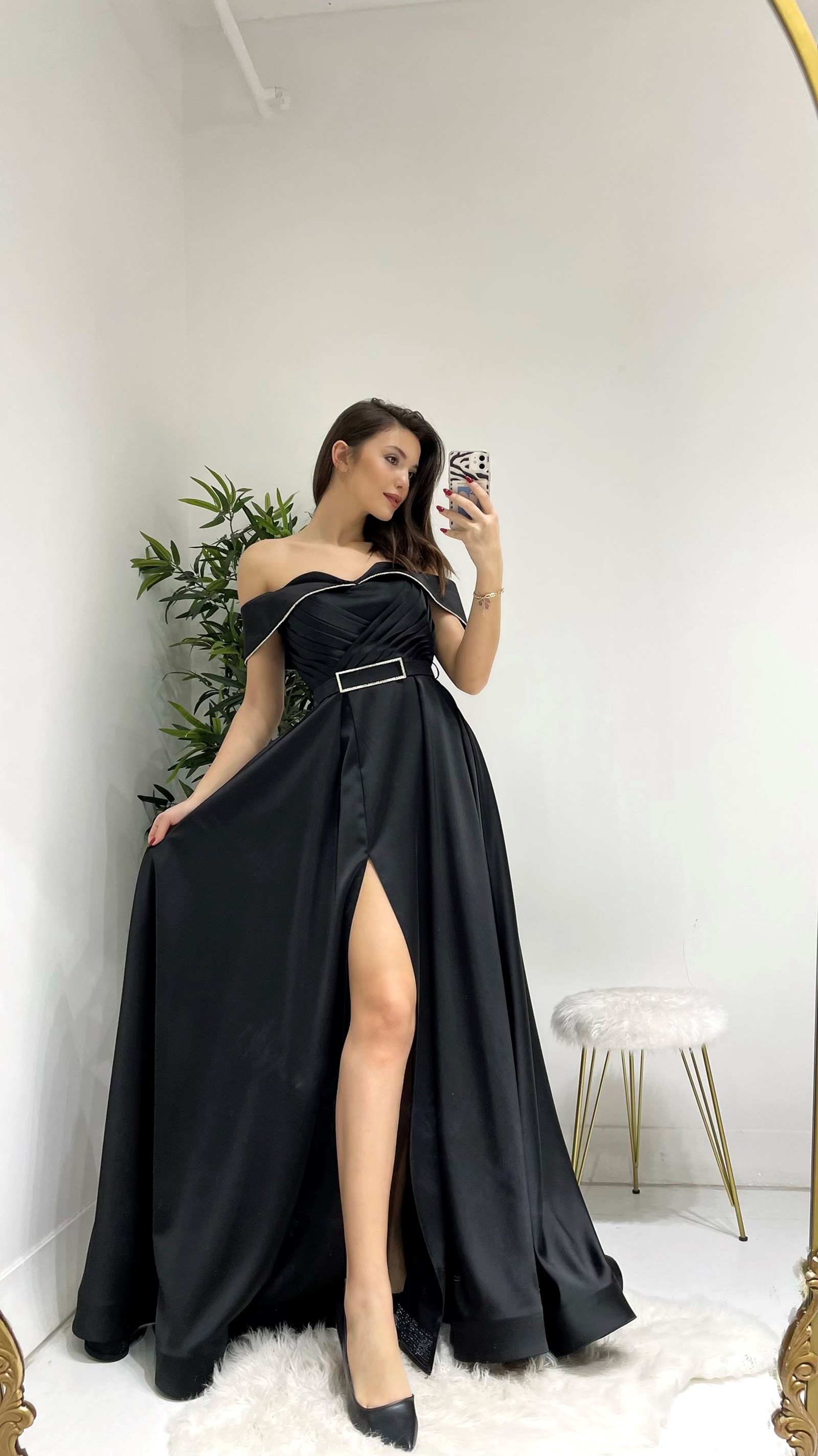 5 RatingSiyah Kemerli Yırtmaçlı Uzun Abiye Elbise Ürün Yorumları