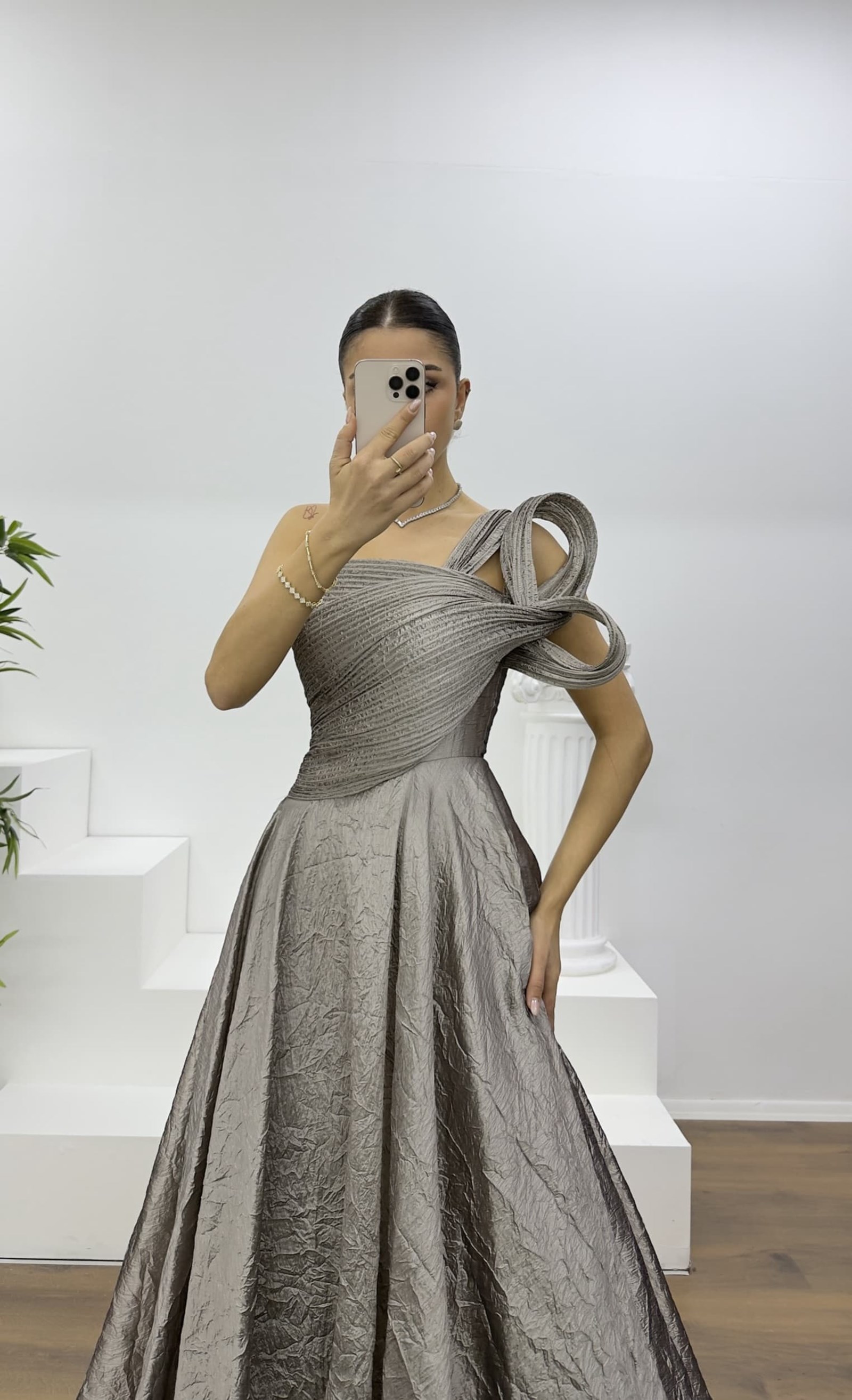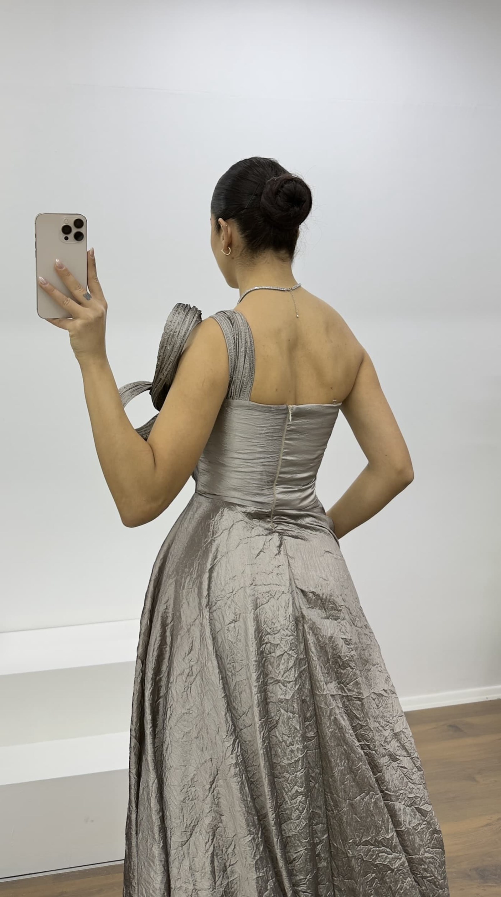 • Vizon Tek Omuz Tafta Abiye Elbise