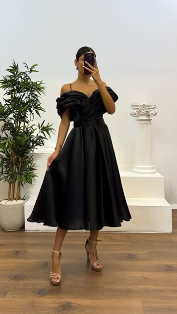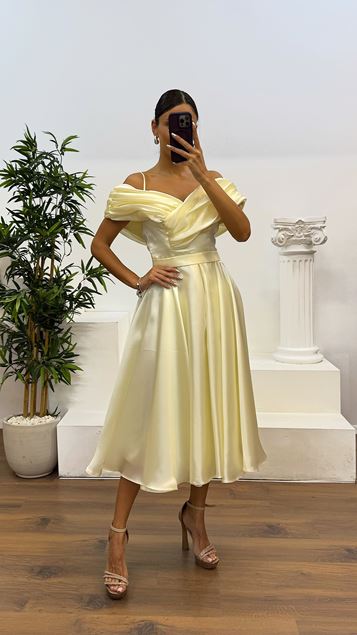 Cagla Madonna Collar Tulle Mini Evening Dress