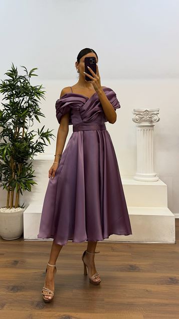 Lilac Madonna Neck Tulle Mini Evening Dress