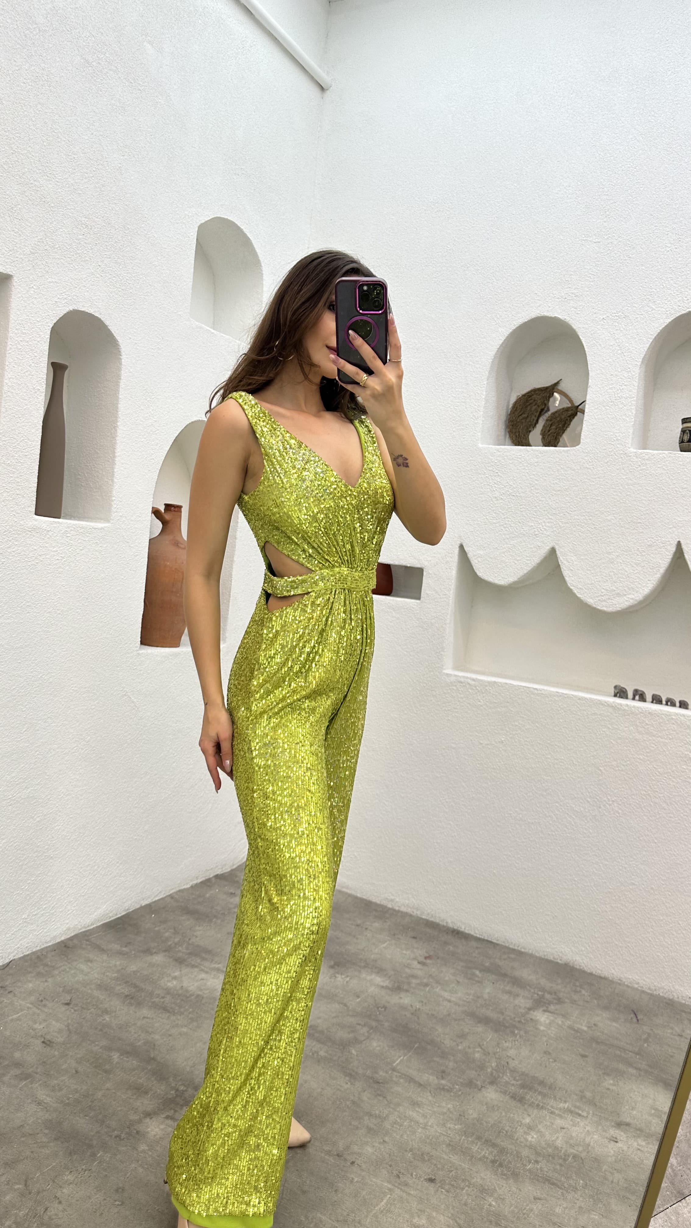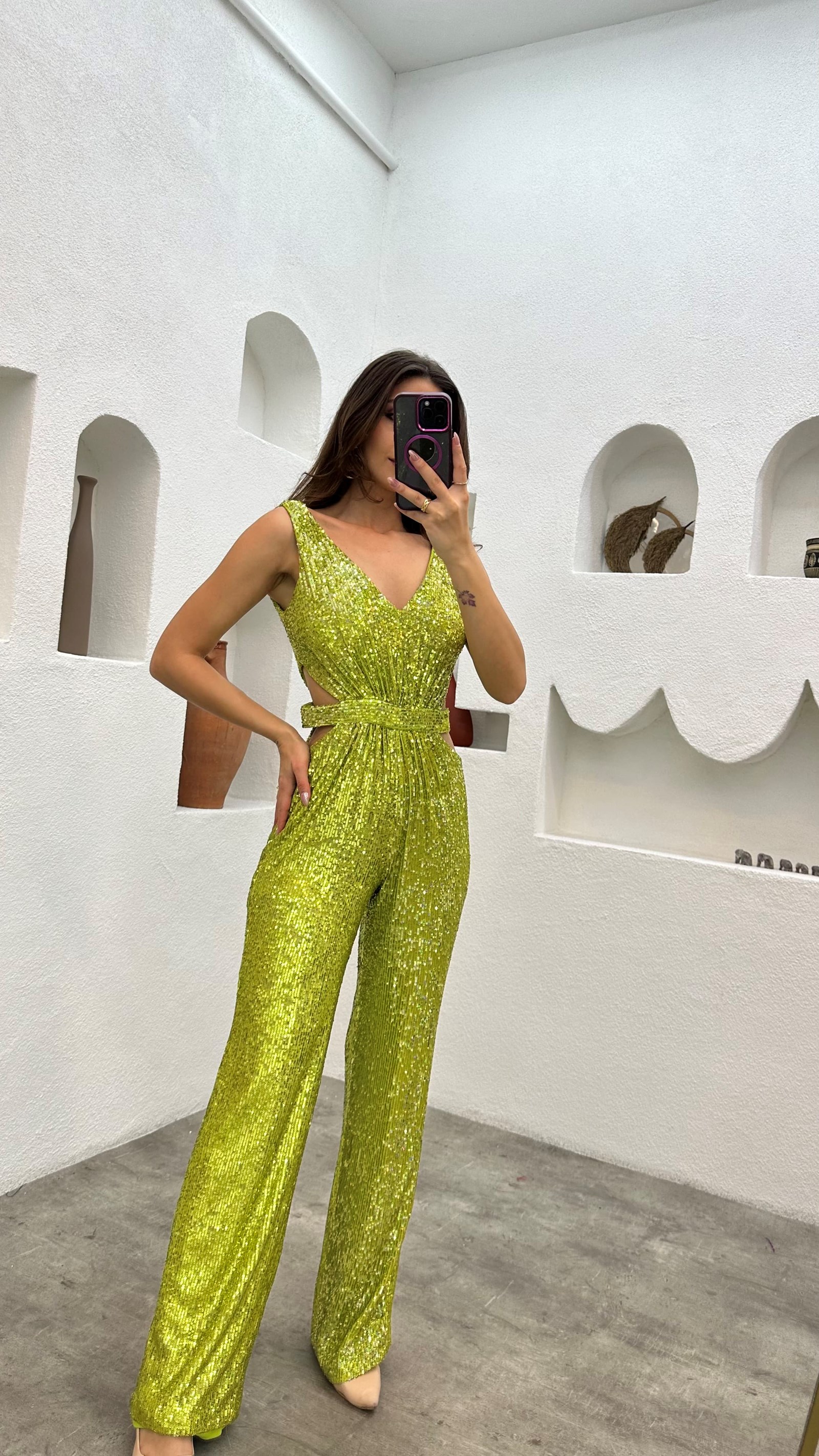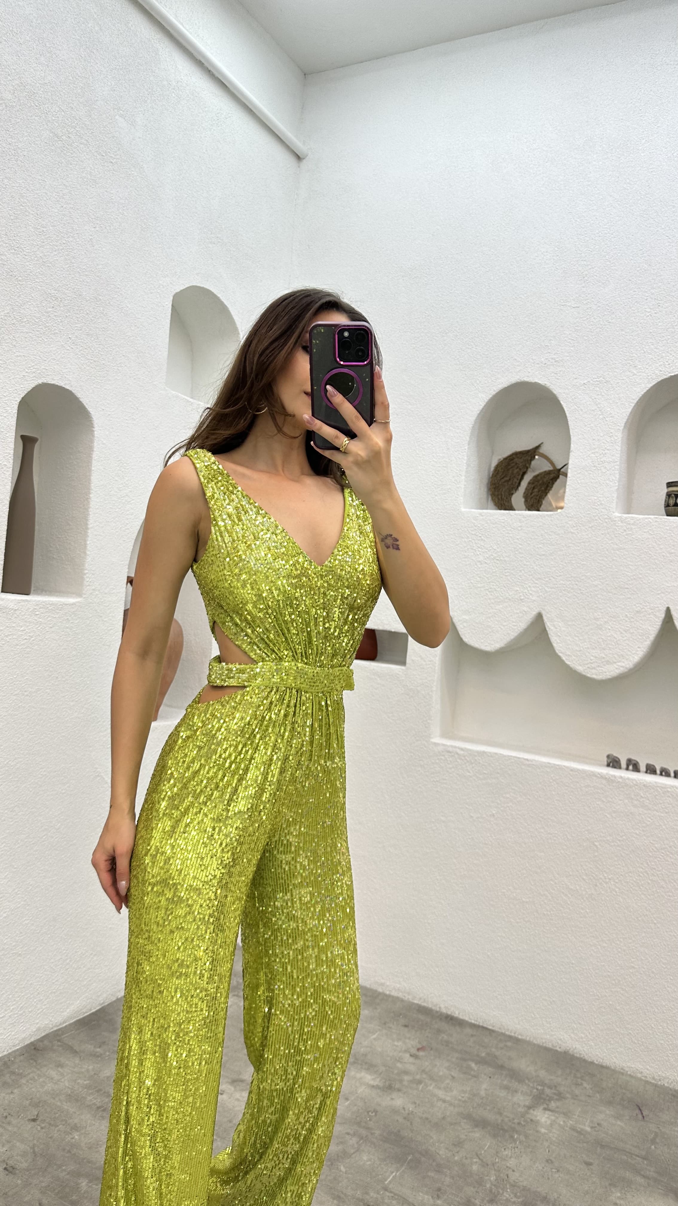 Yellow Waist Detail Sequin Jumpsuit