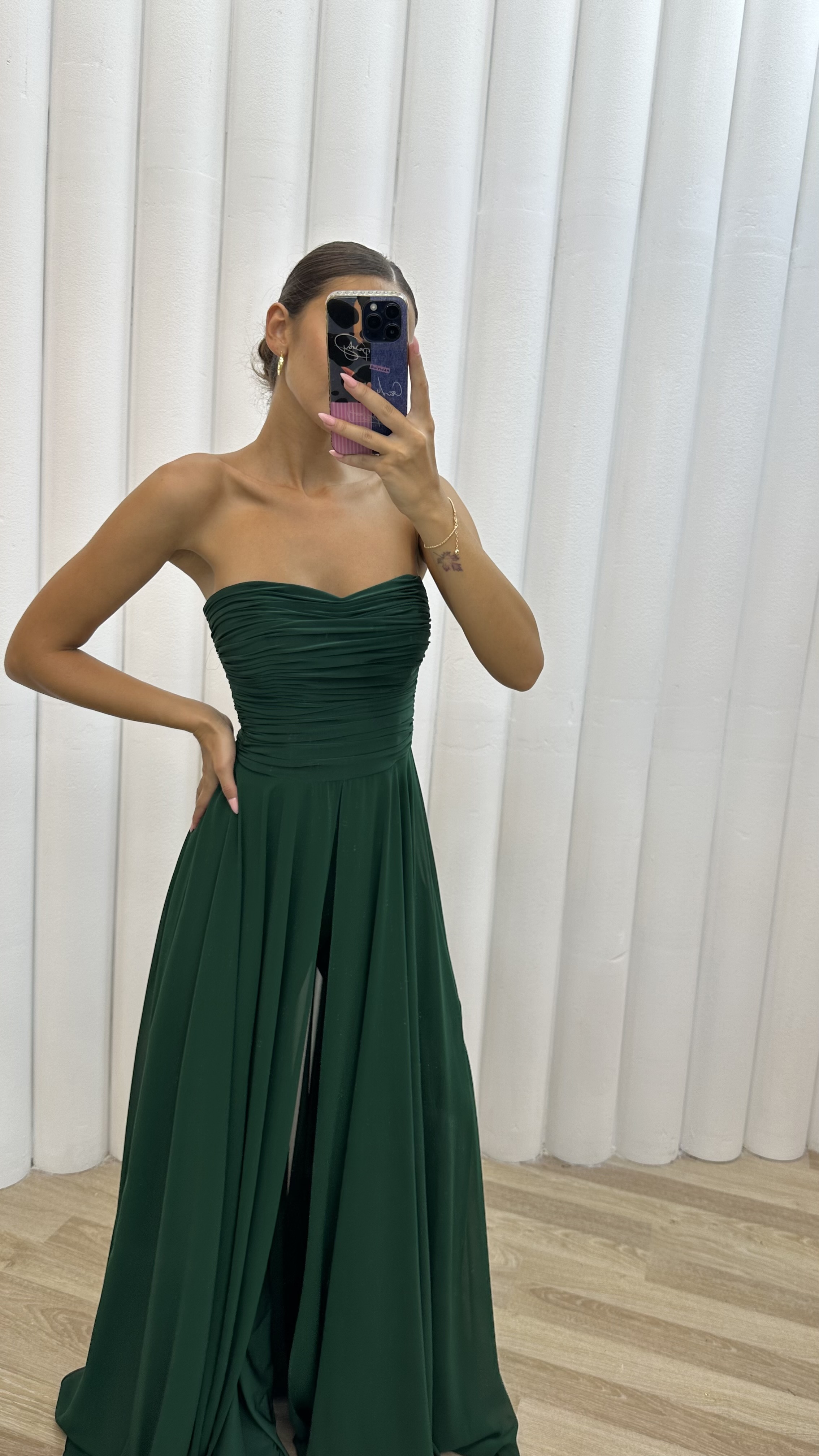 • Zümrüt Straplez Drapeli Abiye Tulum