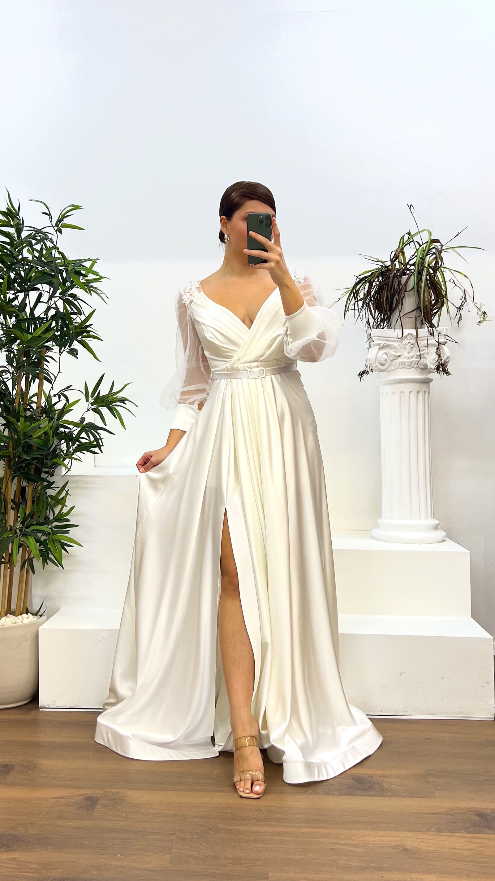 • Bone Balloon Sleeve Embroidered Shoulders Design Plus Size Evening Dress