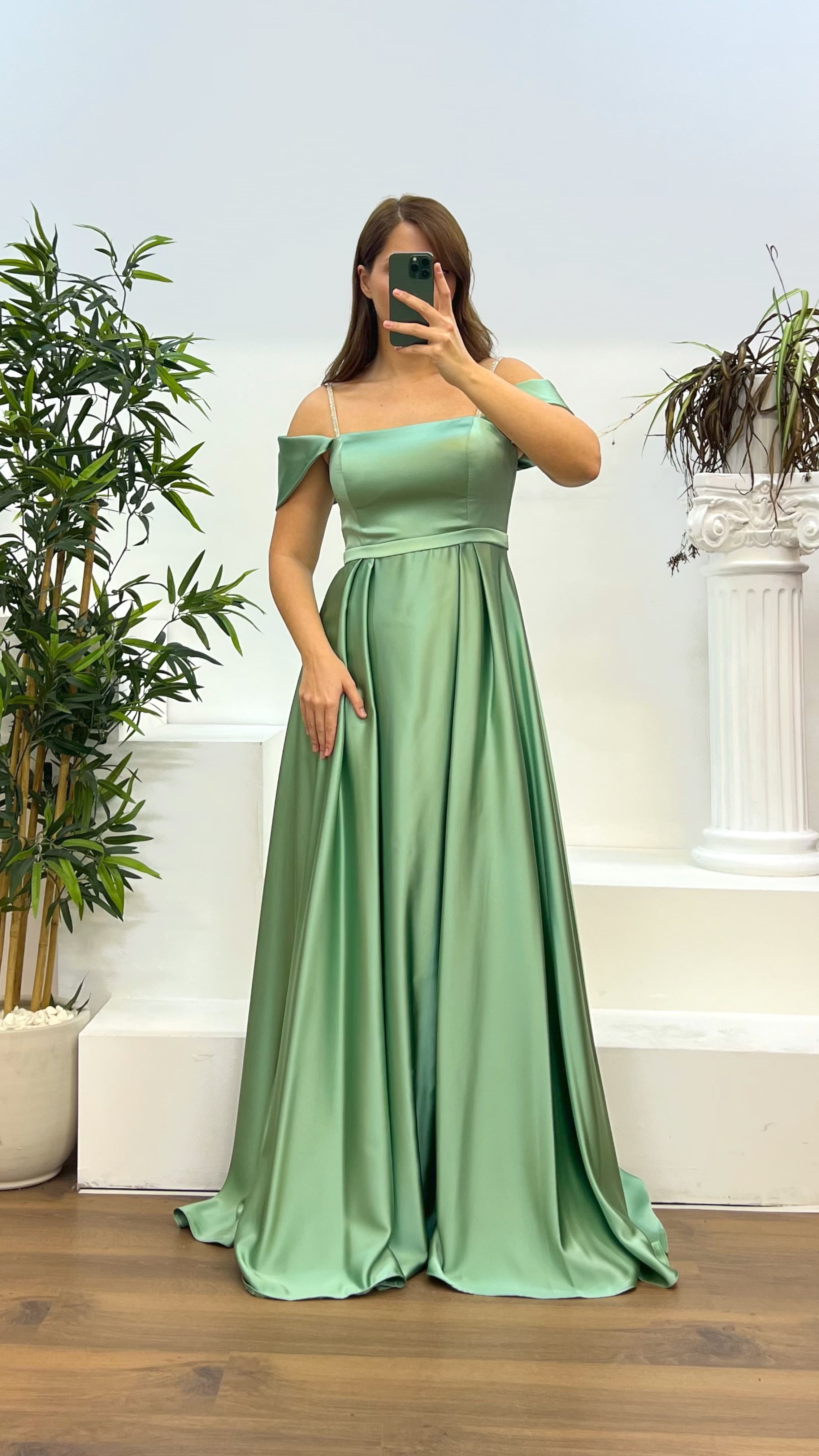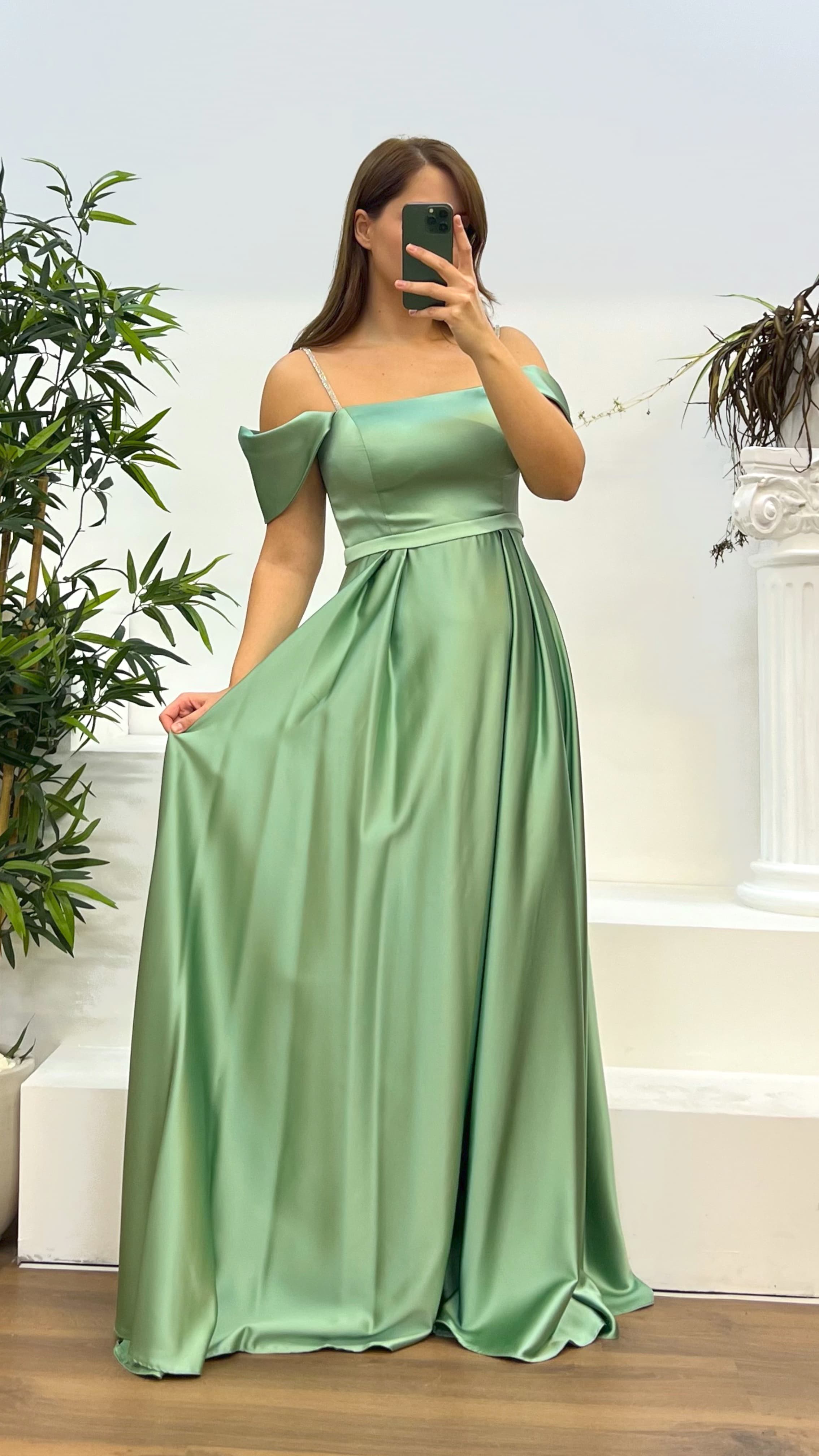 • Çağla İp Askılı Saten Büyük Beden Abiye Elbise