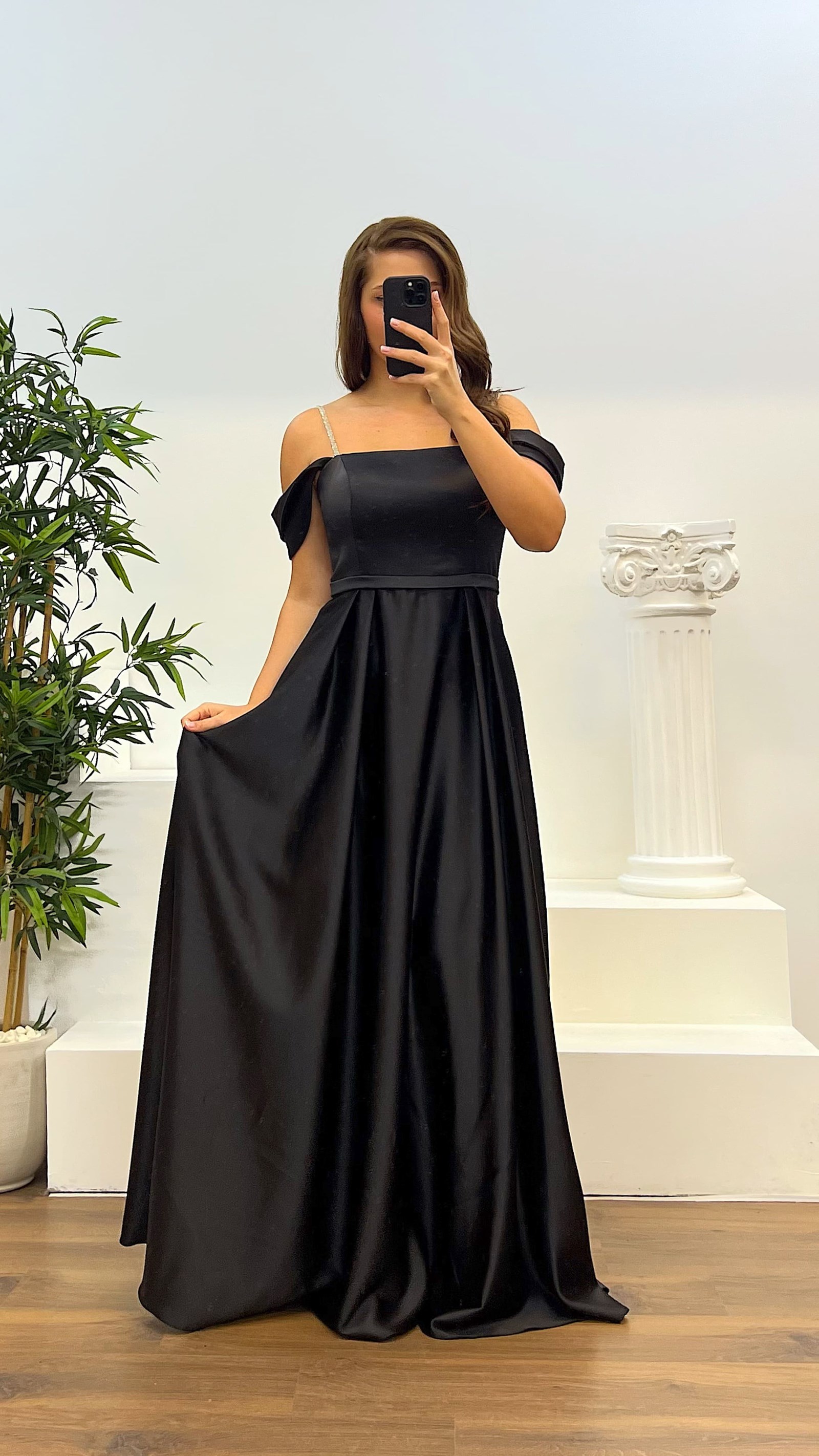 • Siyah İp Askılı Saten Büyük Beden Abiye Elbise