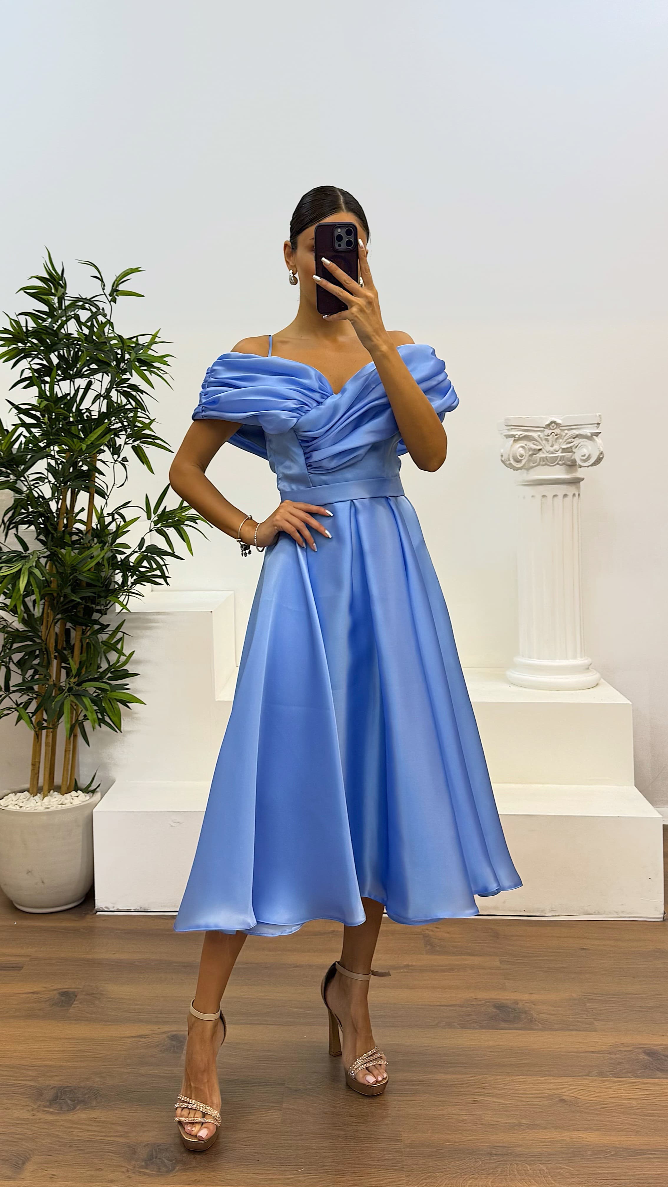 • Bebe Mavi Sırt Detay Midi Abiye Elbise