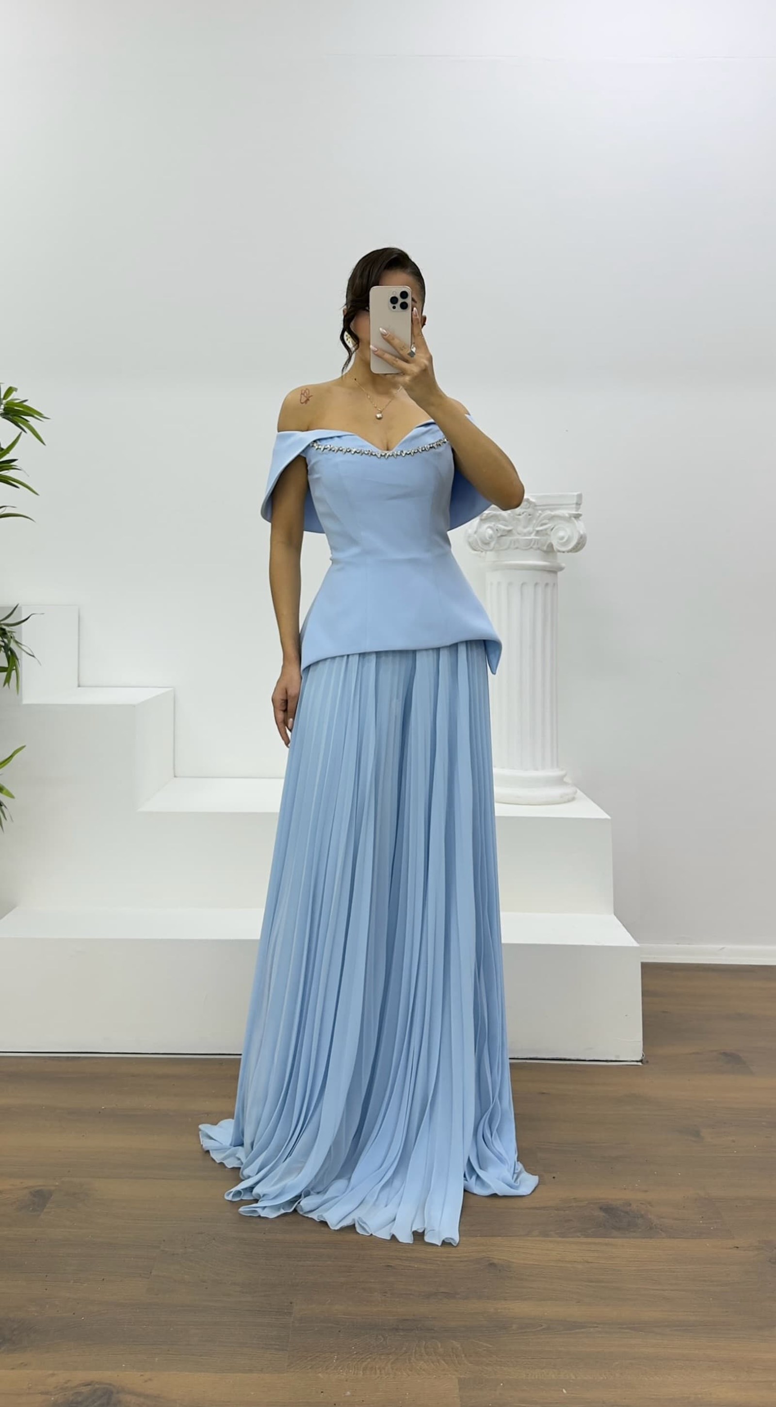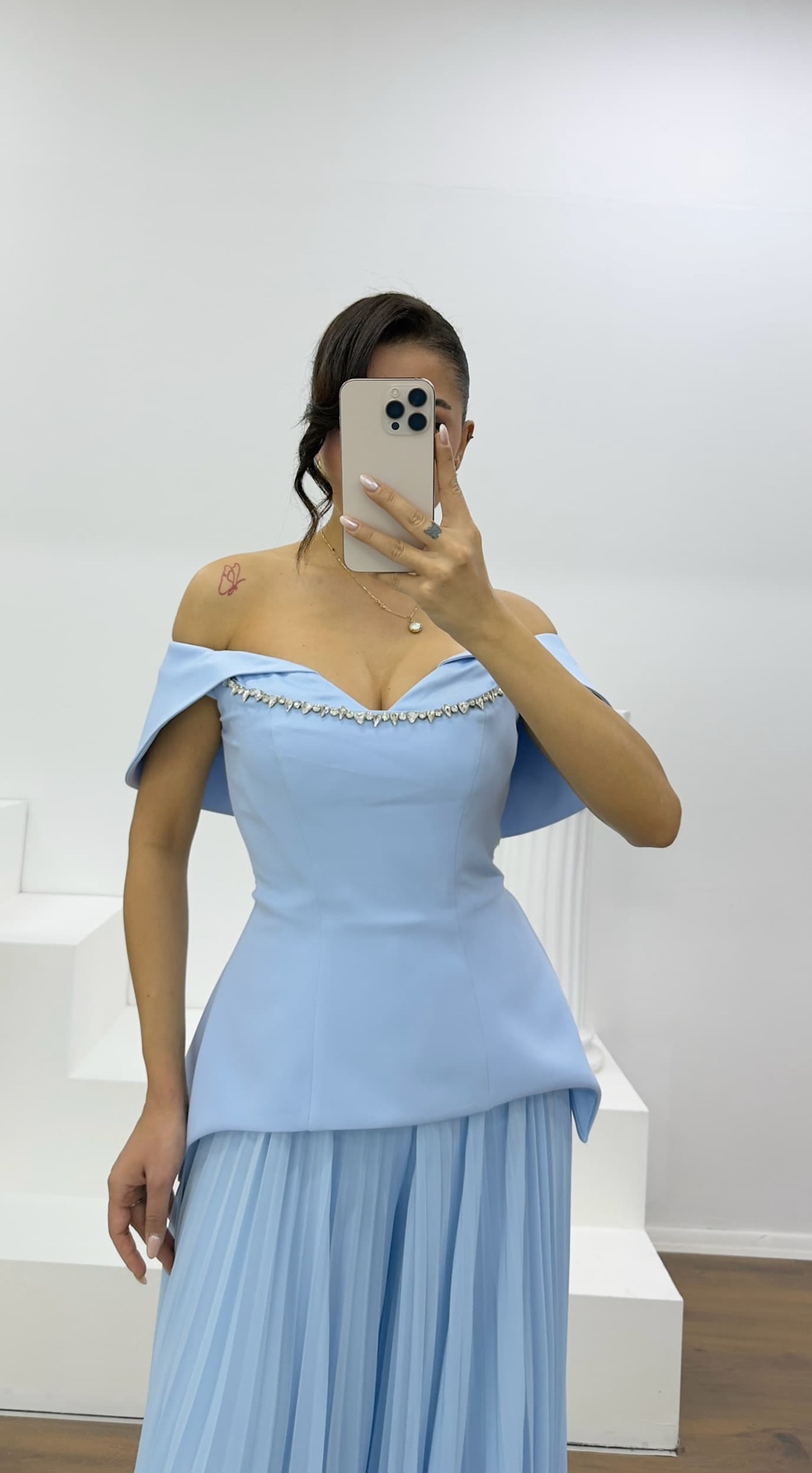 • Bebe Mavi Kayık Yaka Piliseli Abiye Tulum