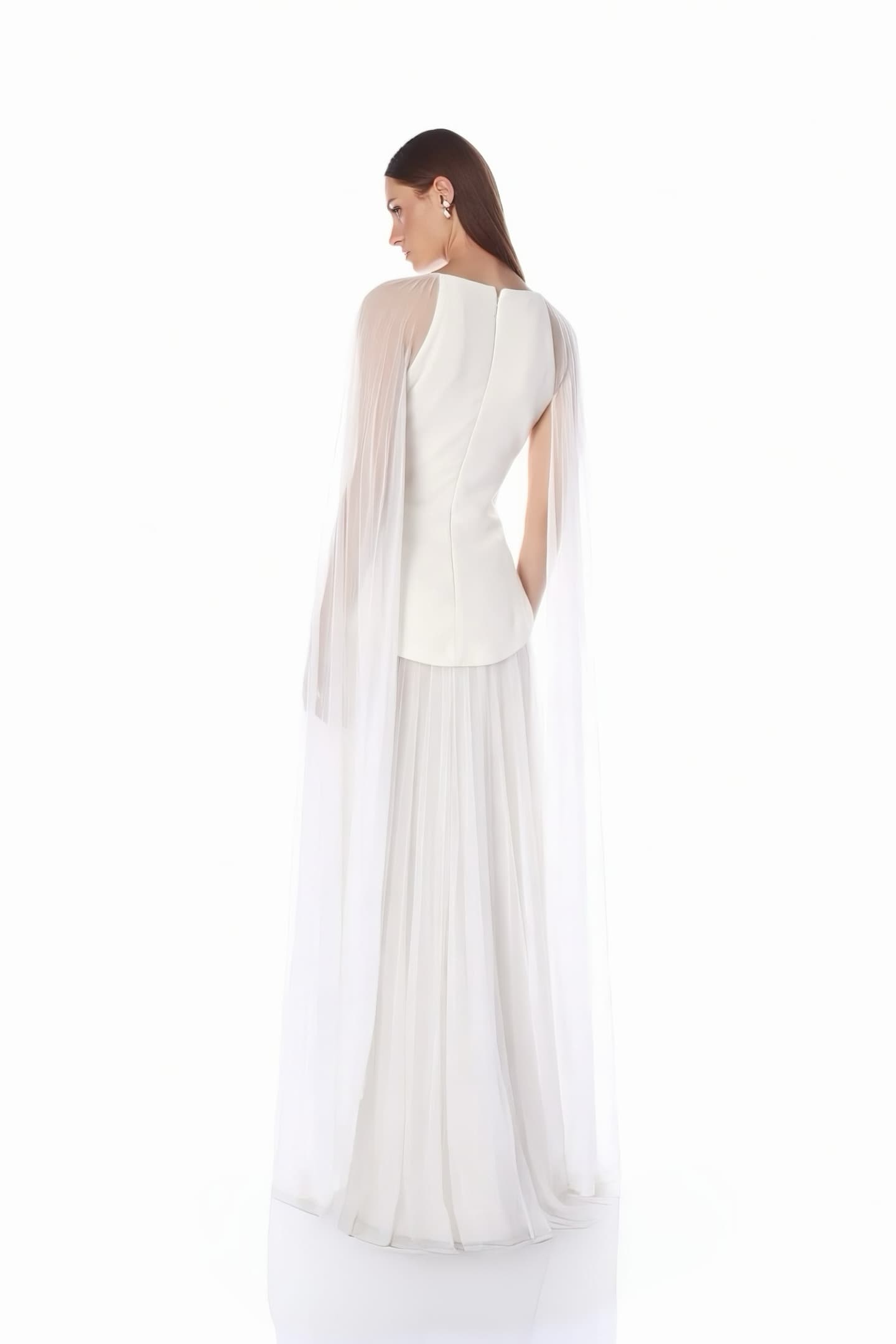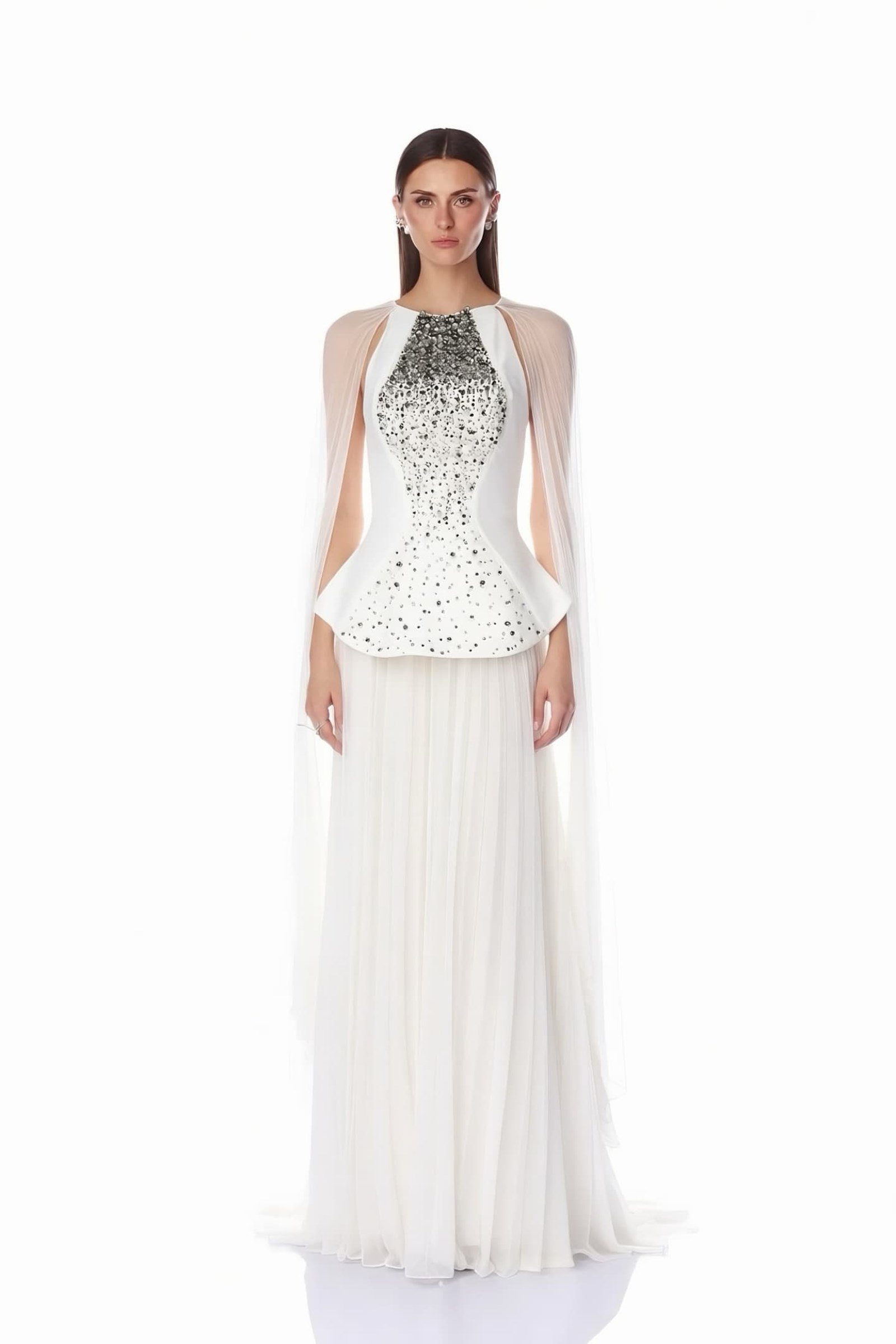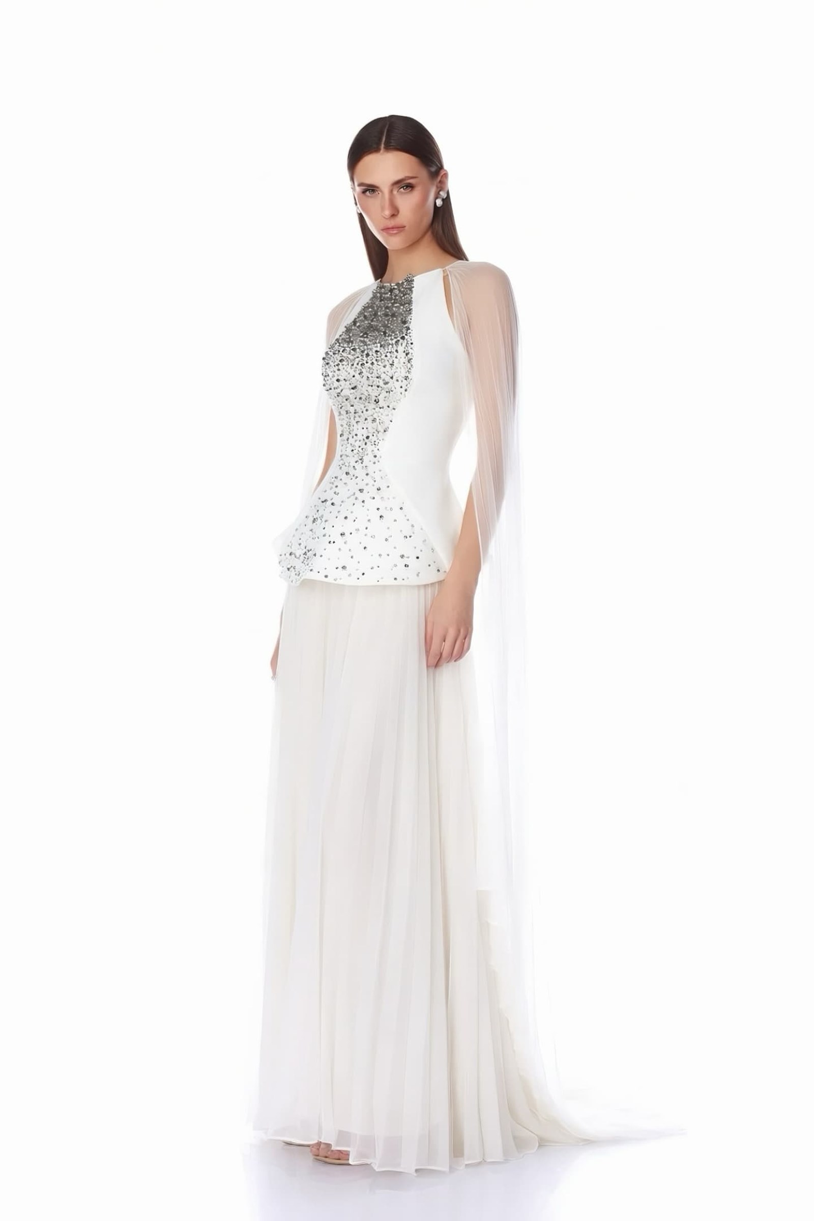 Bone Cape Detail Pleated Evening Dress